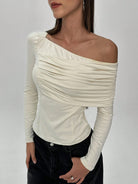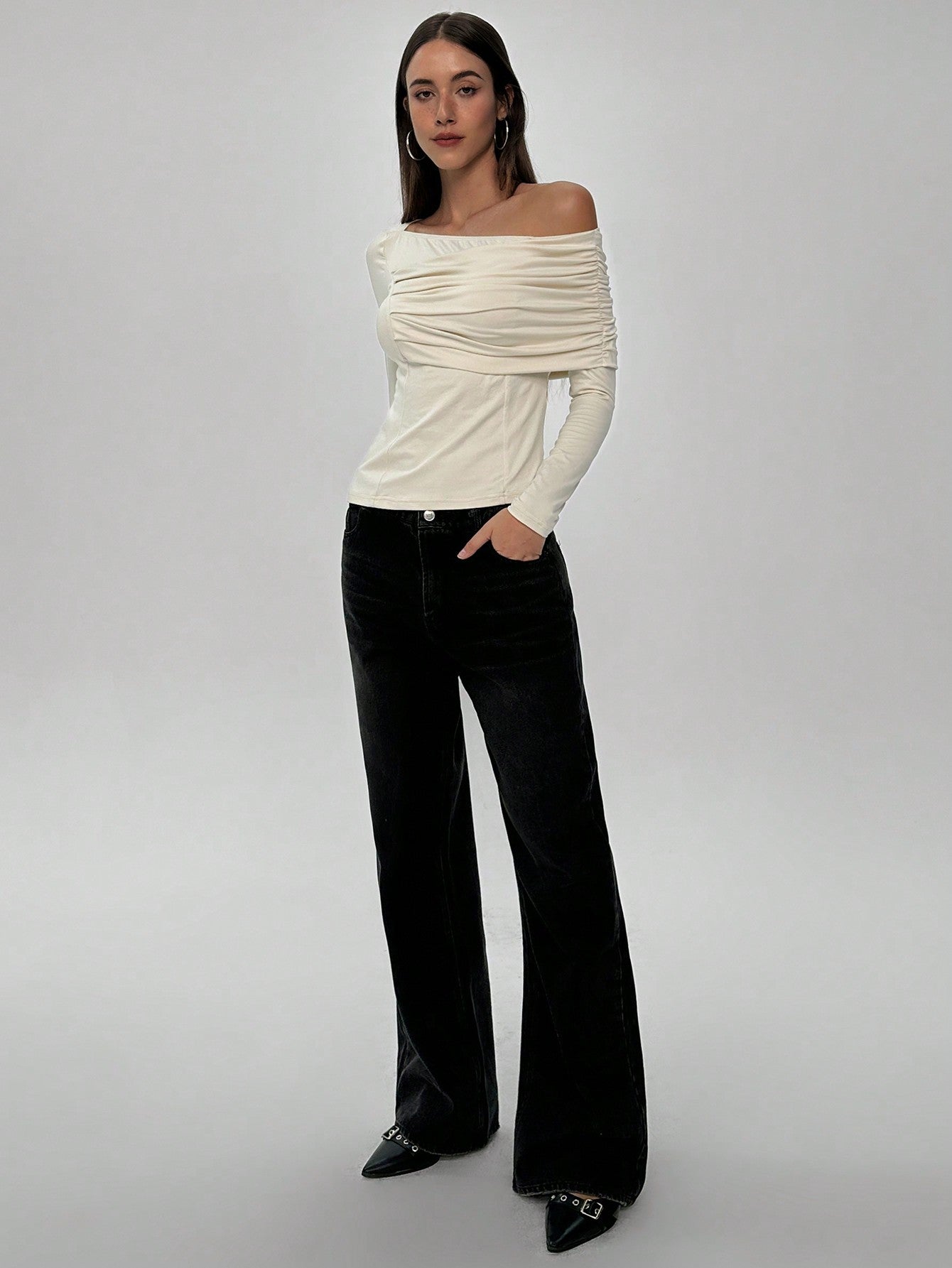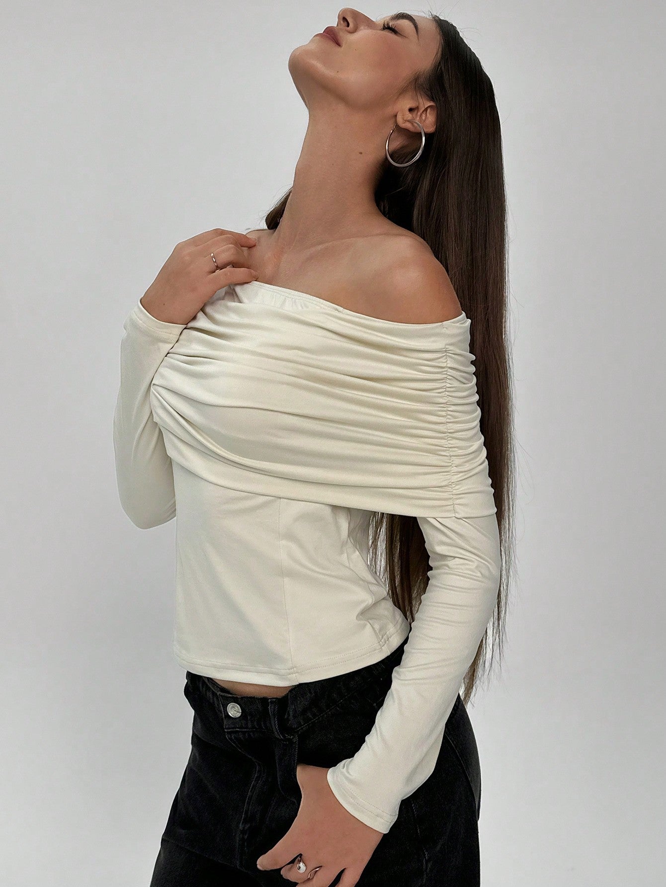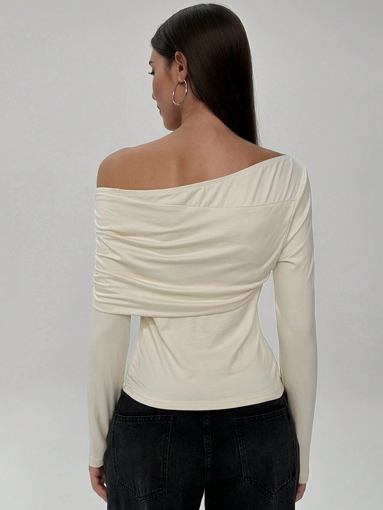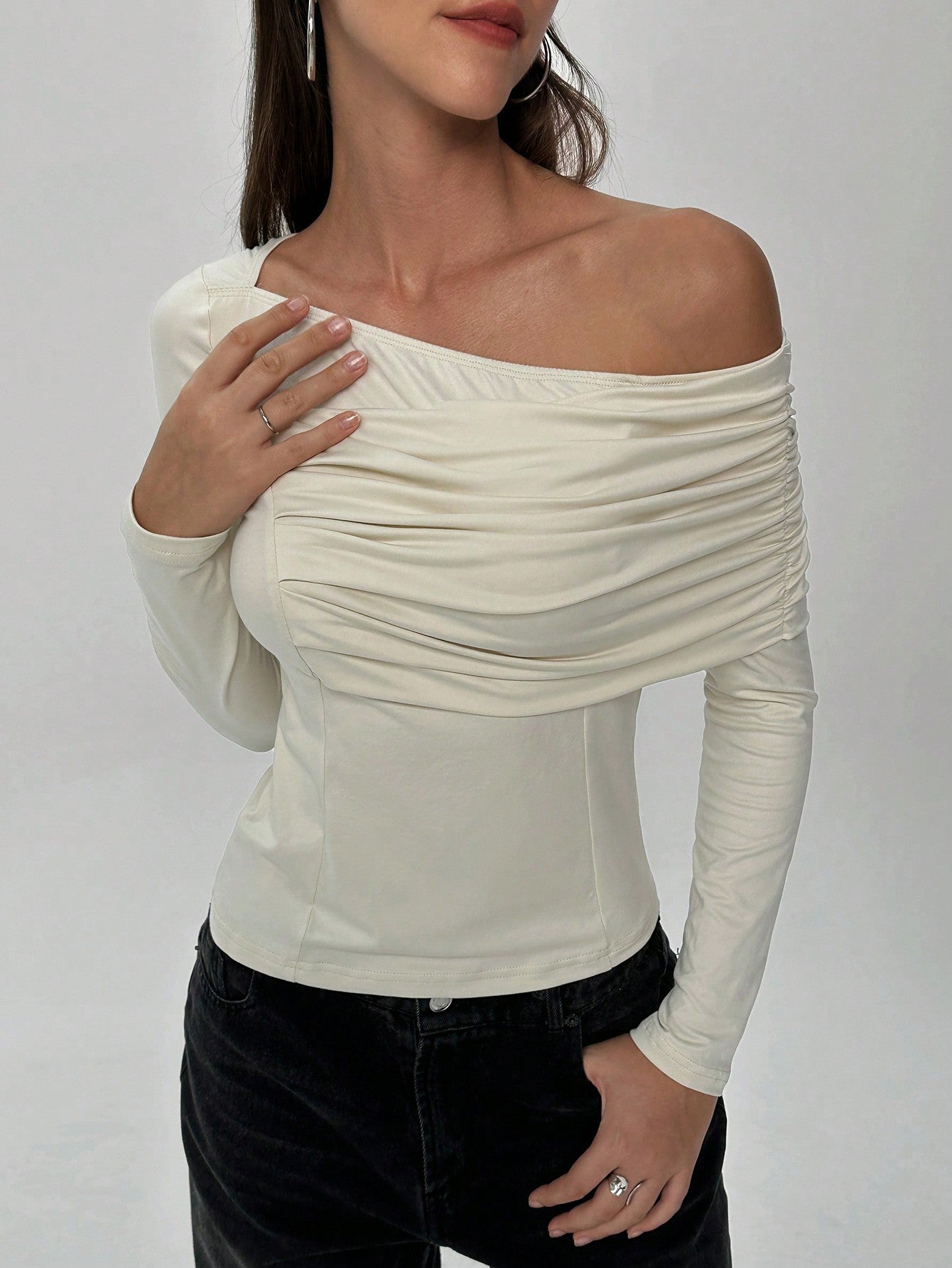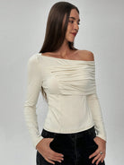 Aloruh Women's Fall T-Shirt Elegant Commuting Daily Casual Simple Off-Shoulder Top Autumn Casual Asymmetric