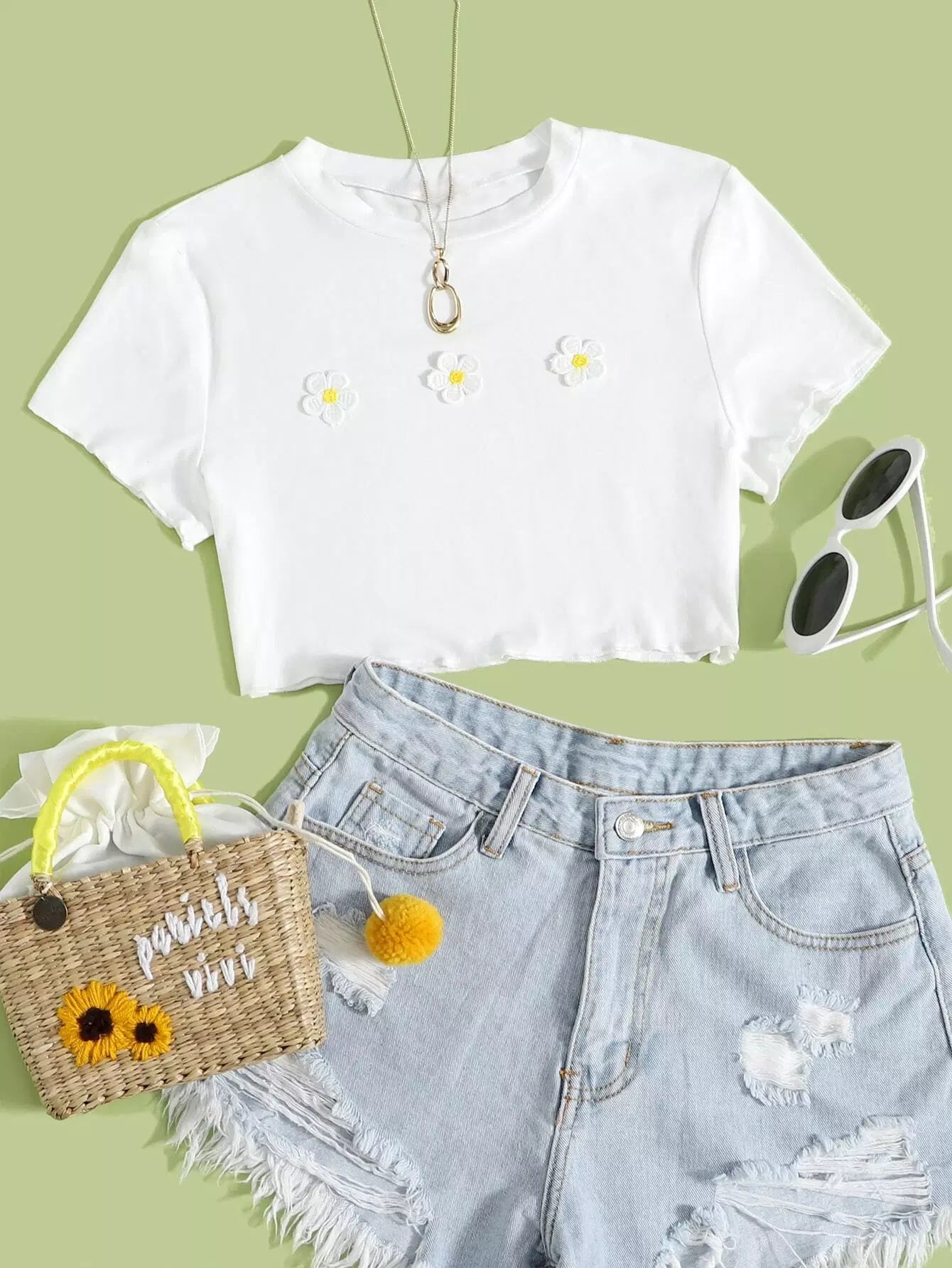 Appliques Detail Lettuce Trim Tee