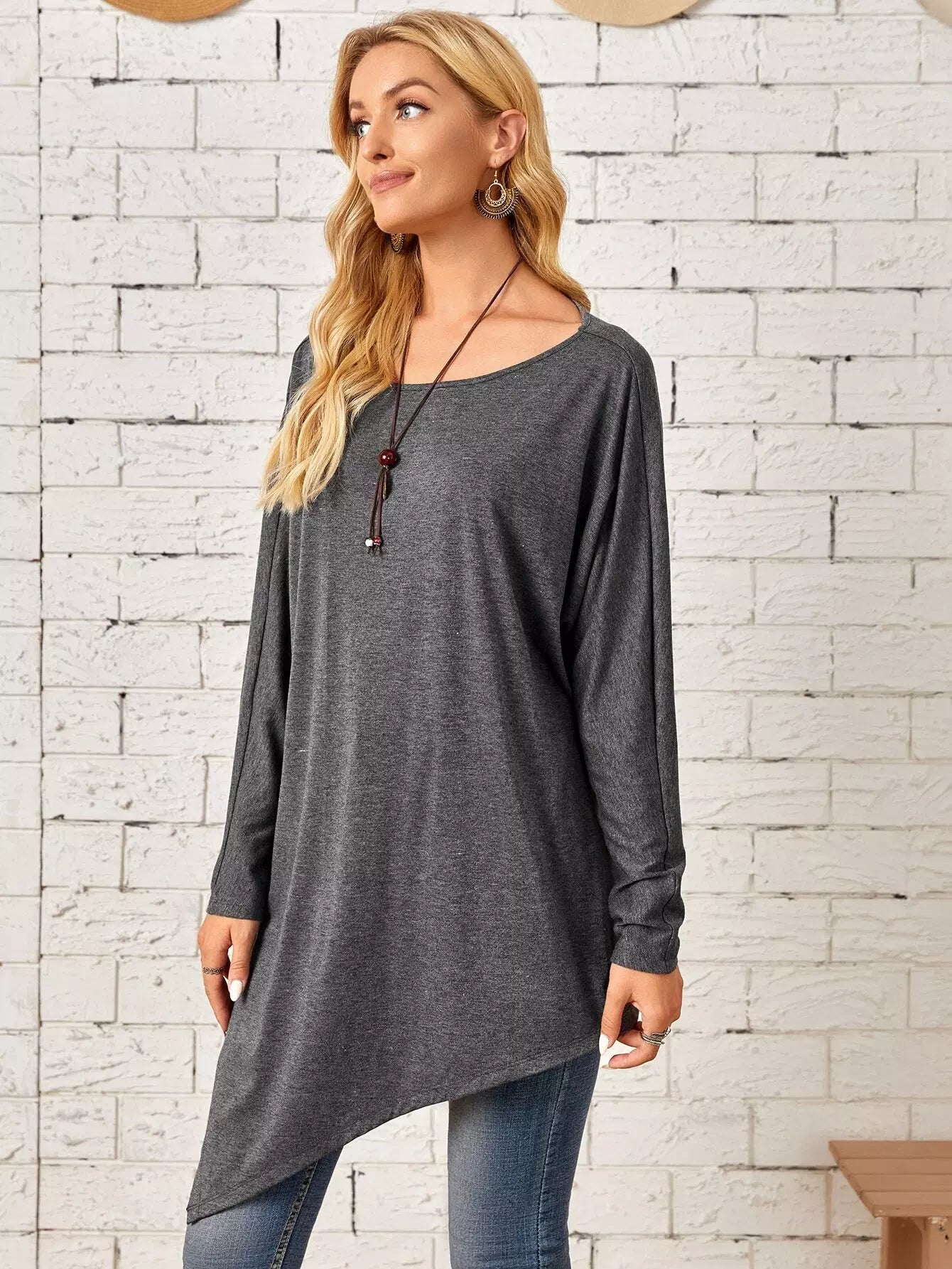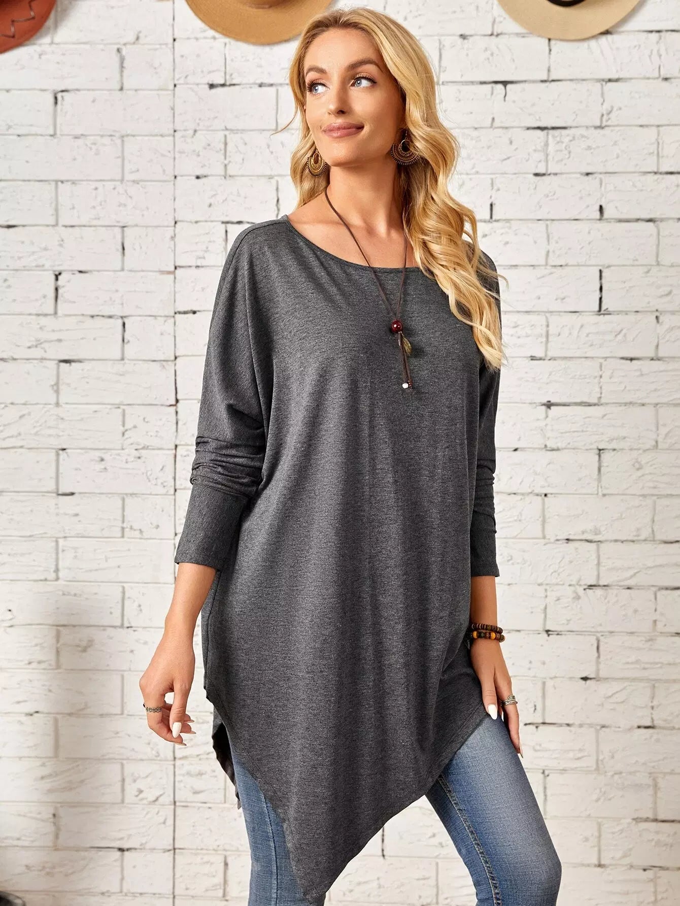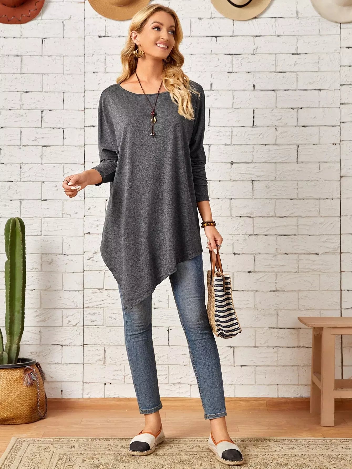 Asymmetrical Hem Dolman Sleeve Marled Tee
