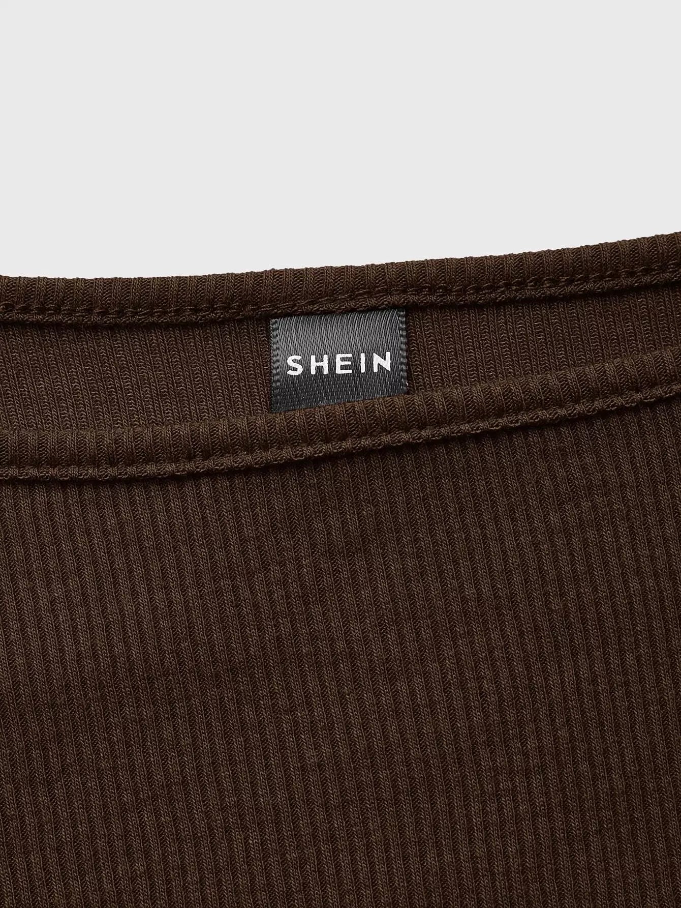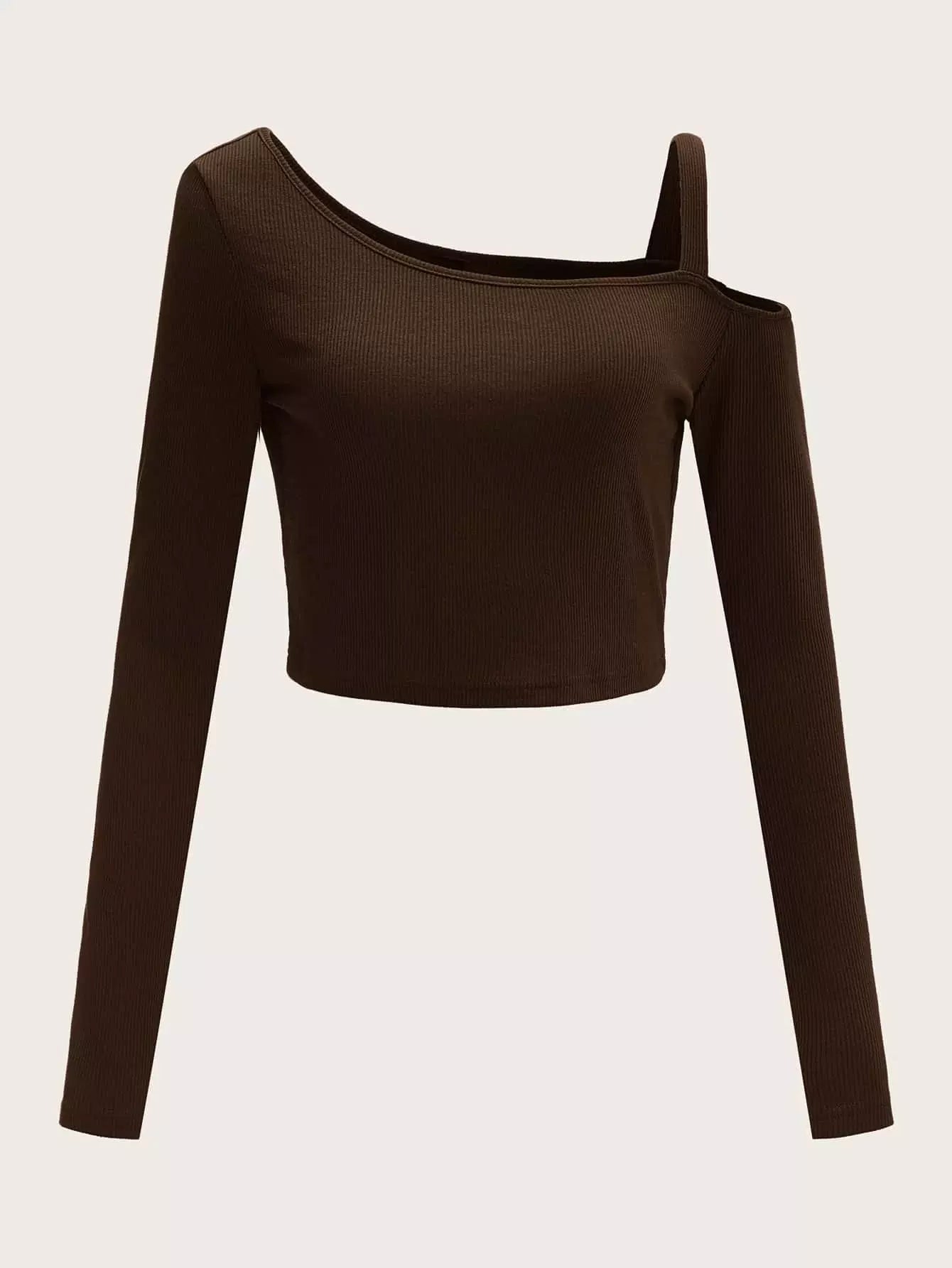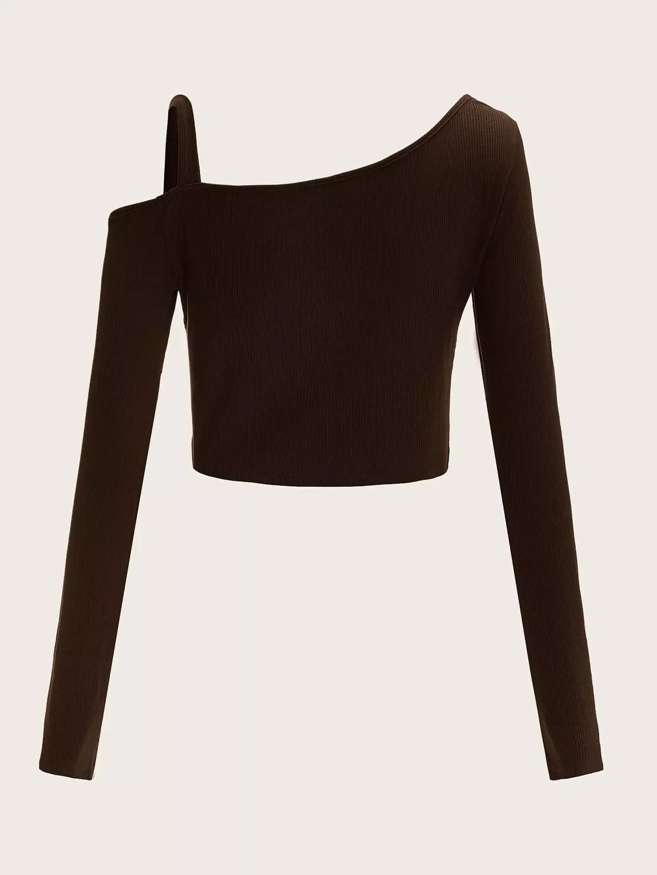 Asymmetrical Neck Cold Shoulder Rib-knit Top