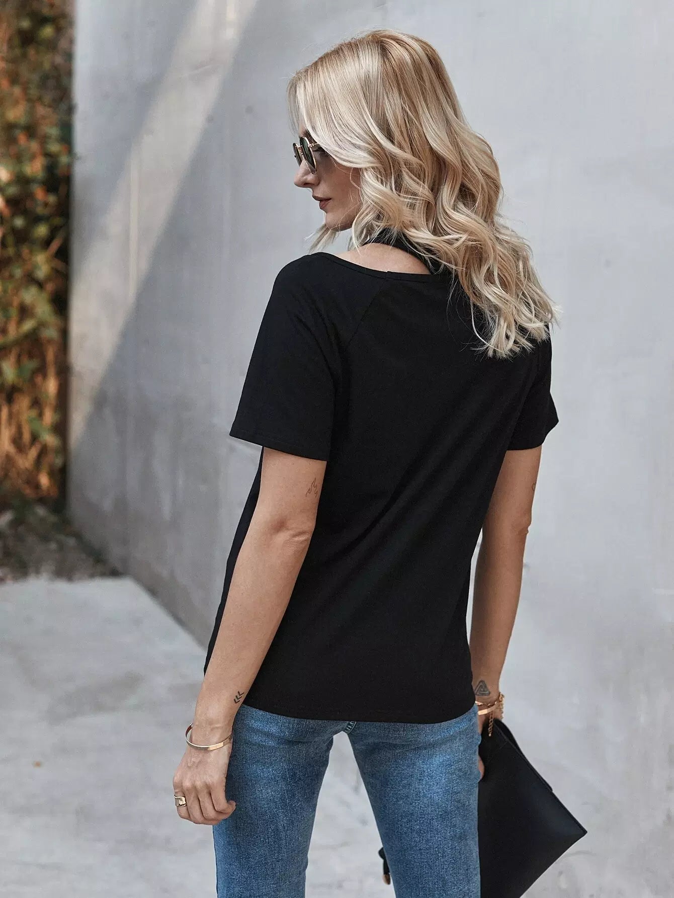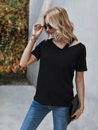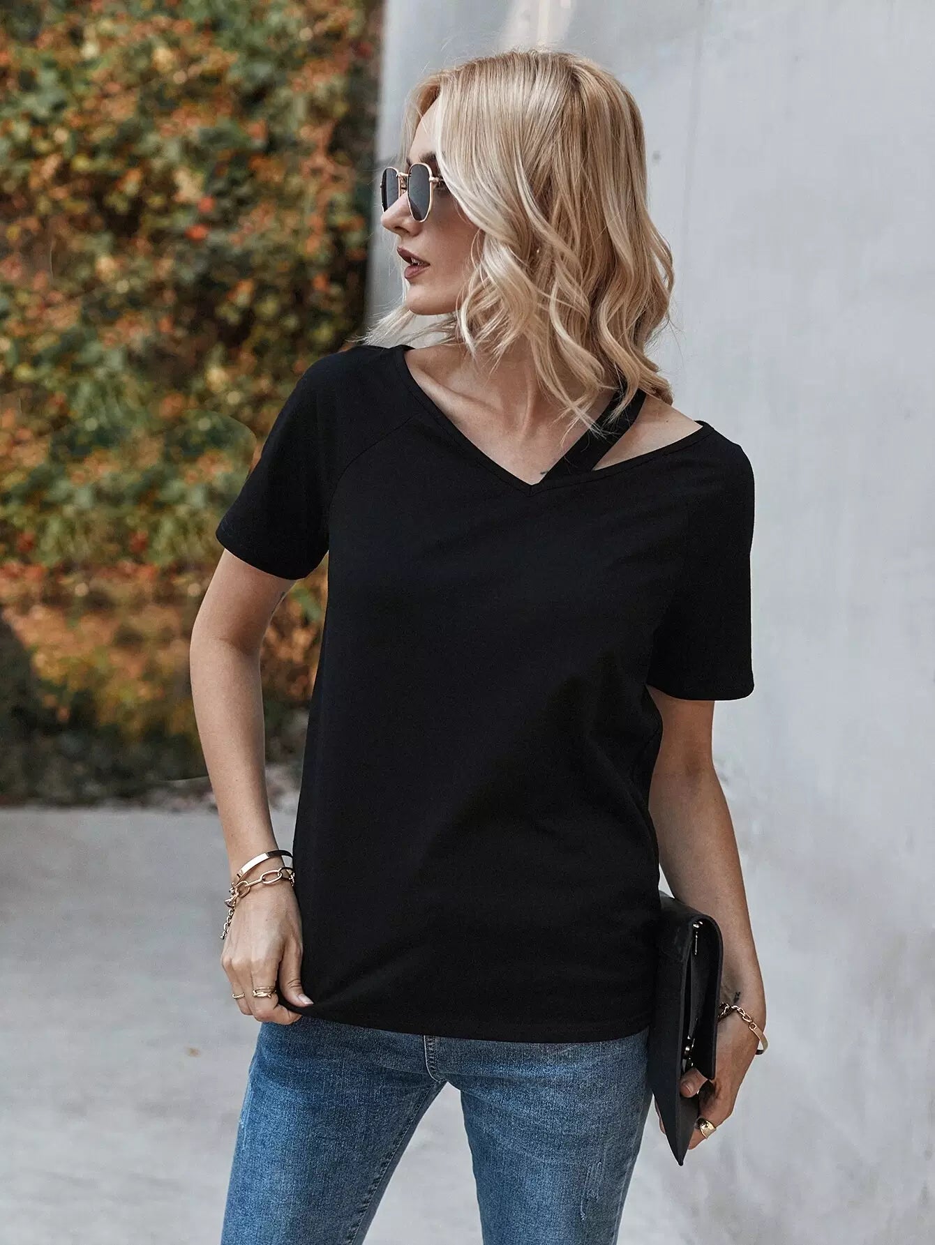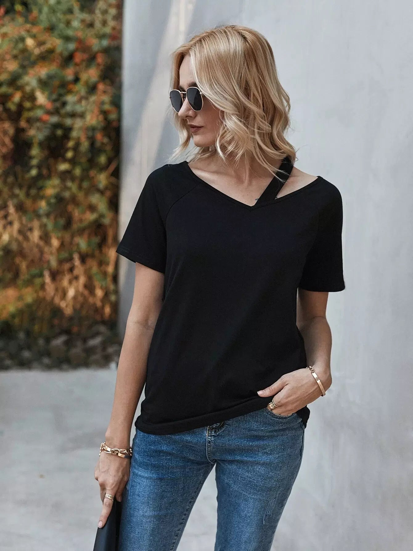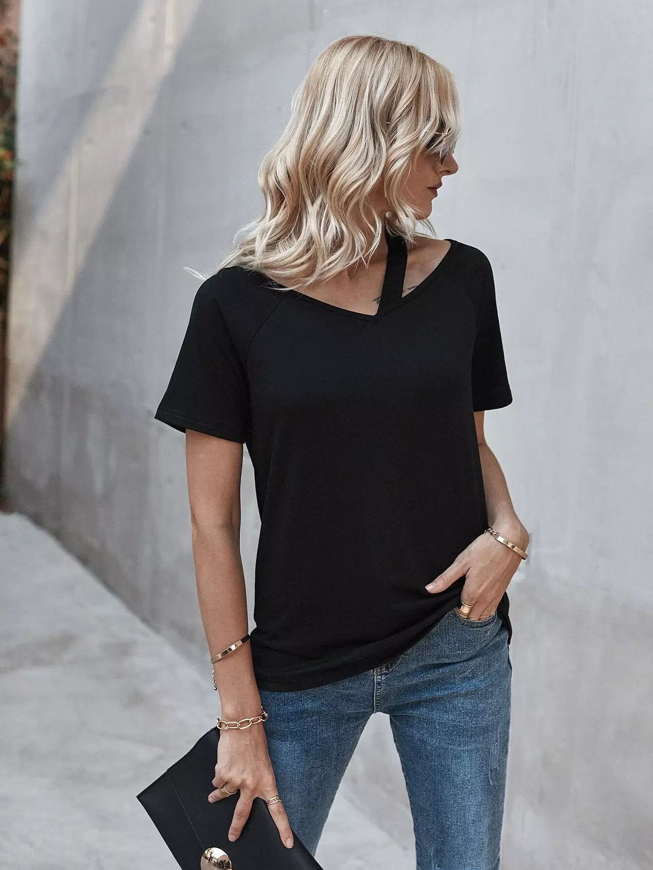 Asymmetrical Neck Raglan Sleeve Tee