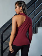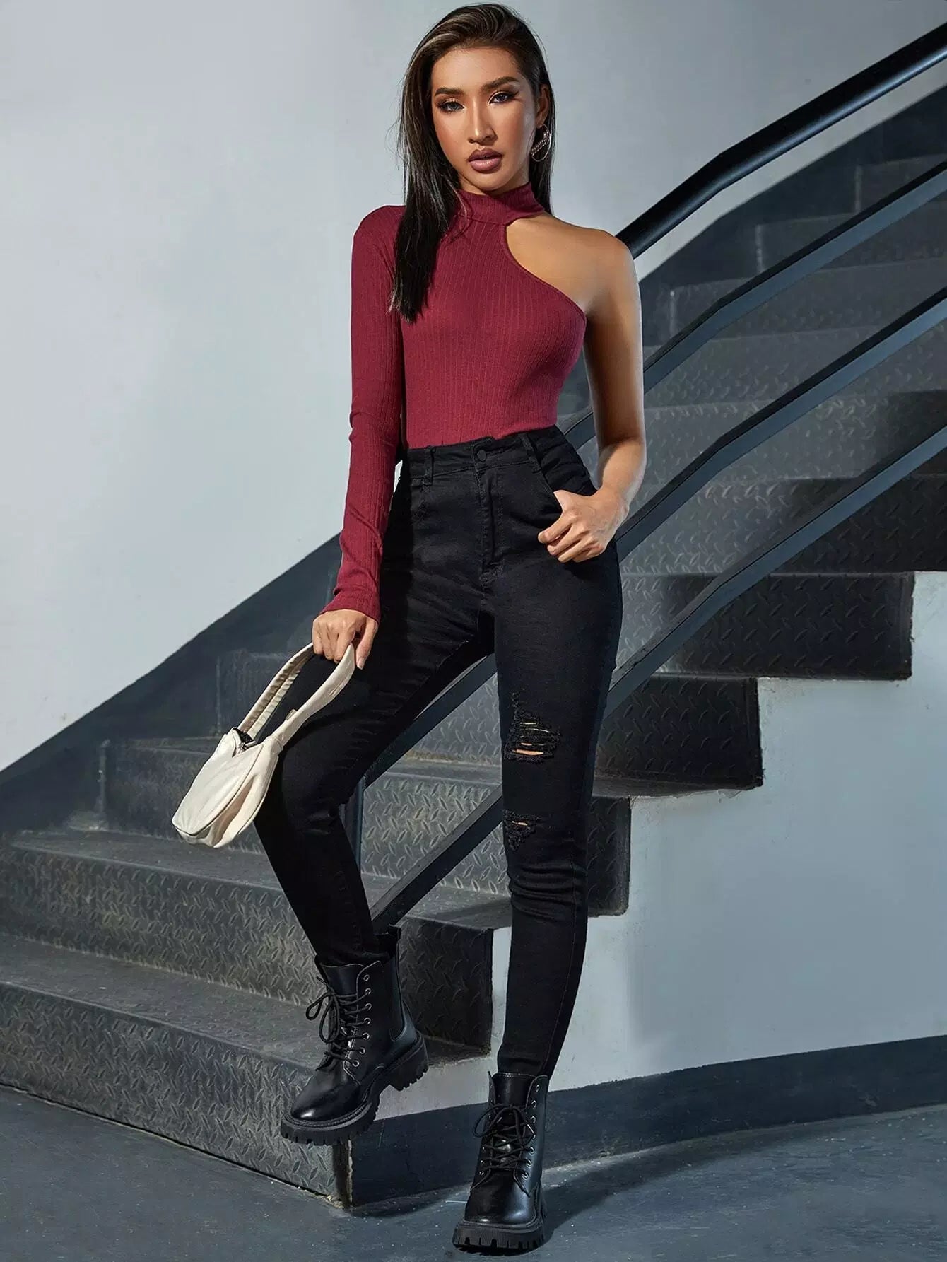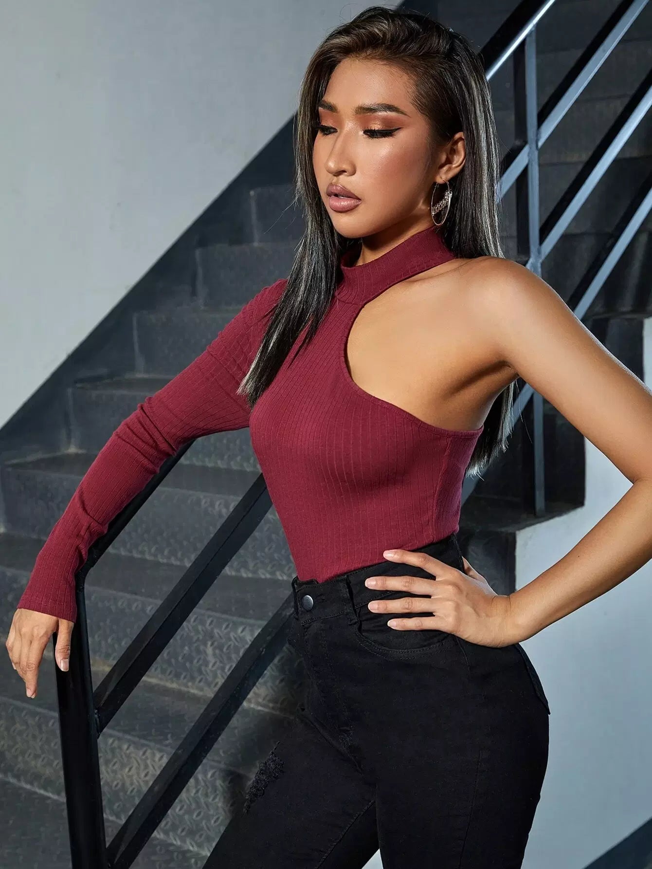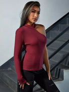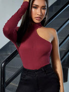 Asymmetrical Neck Rib-knit Tee