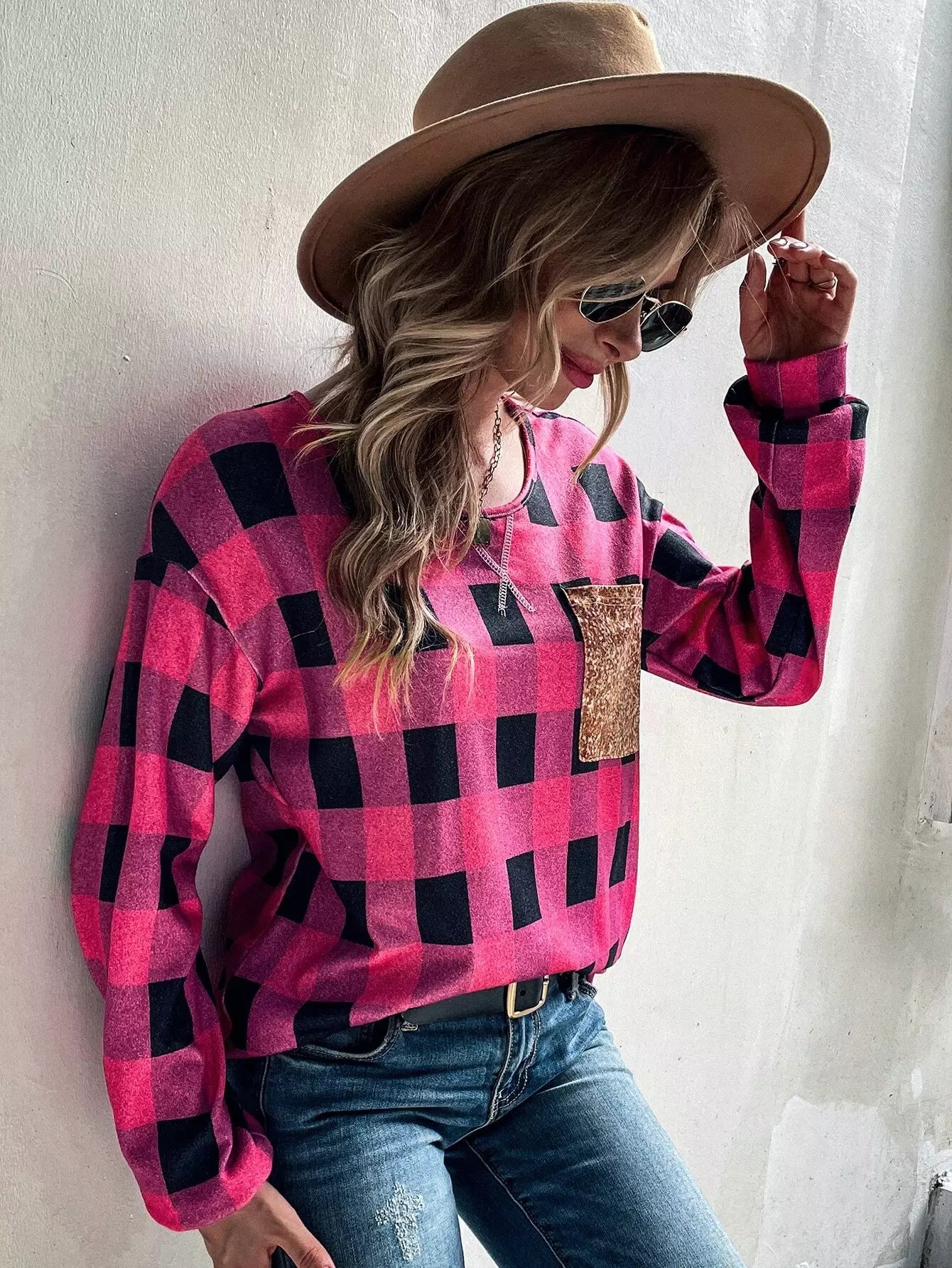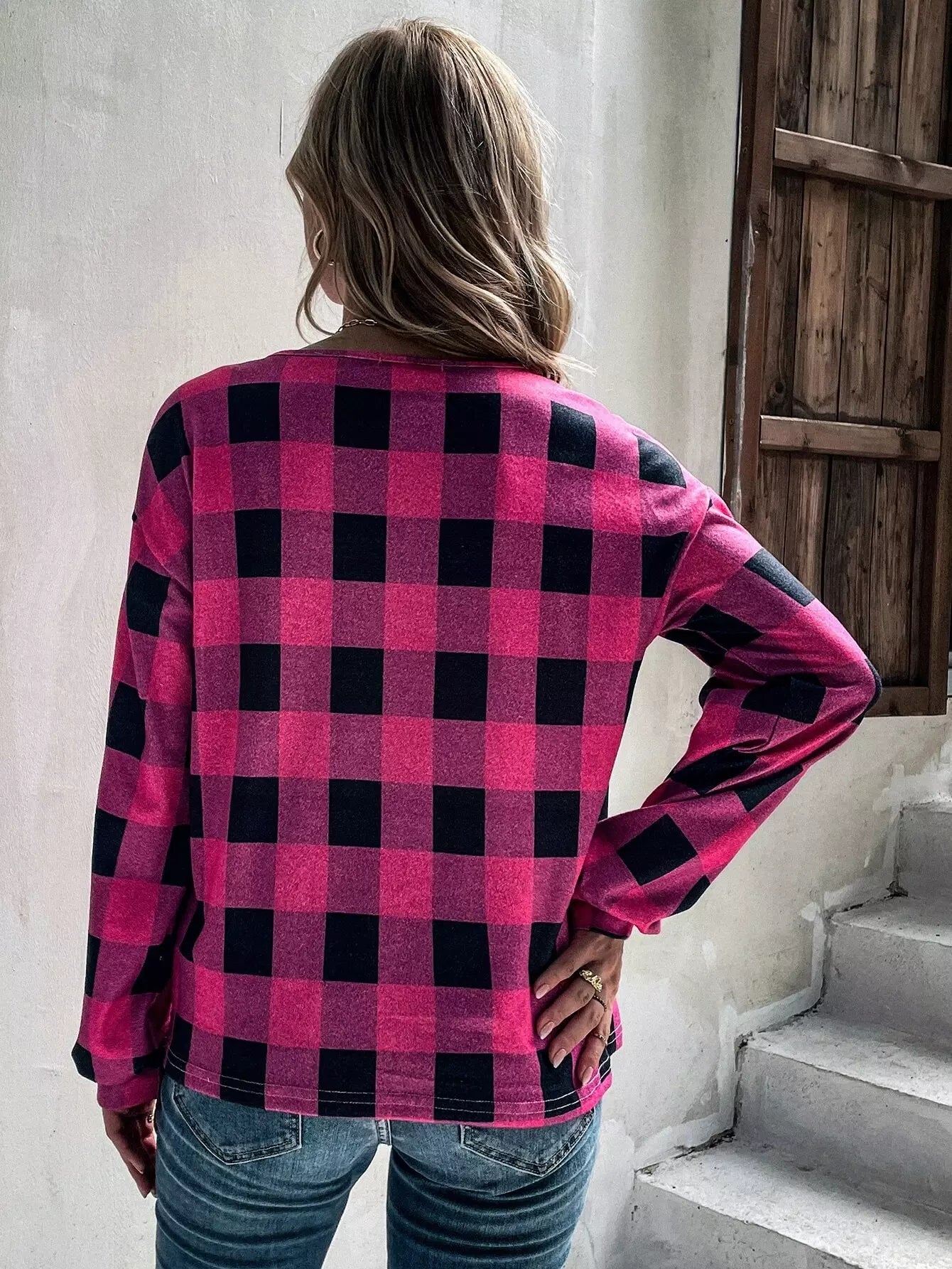 Buffalo Plaid Print Drop Shoulder Tee