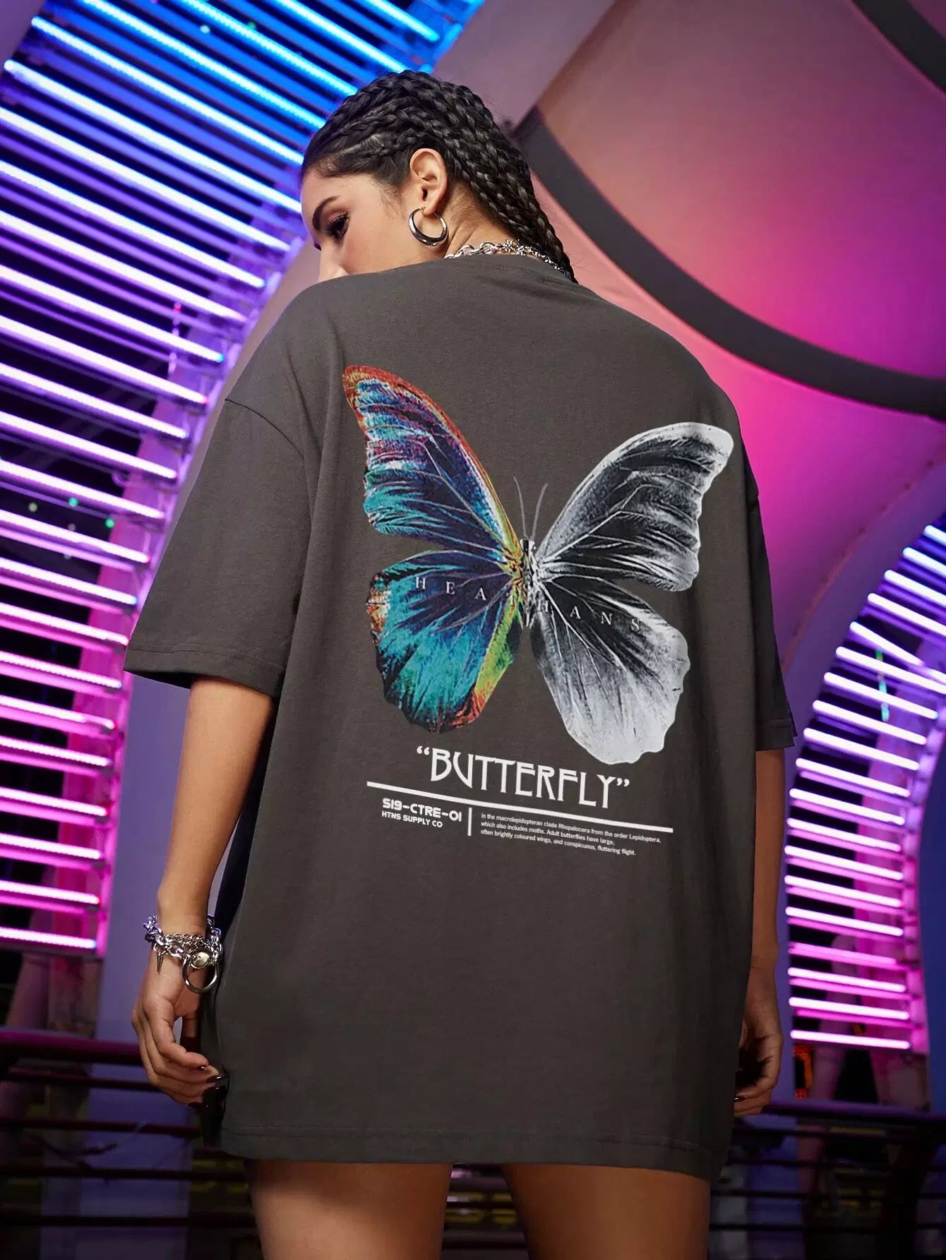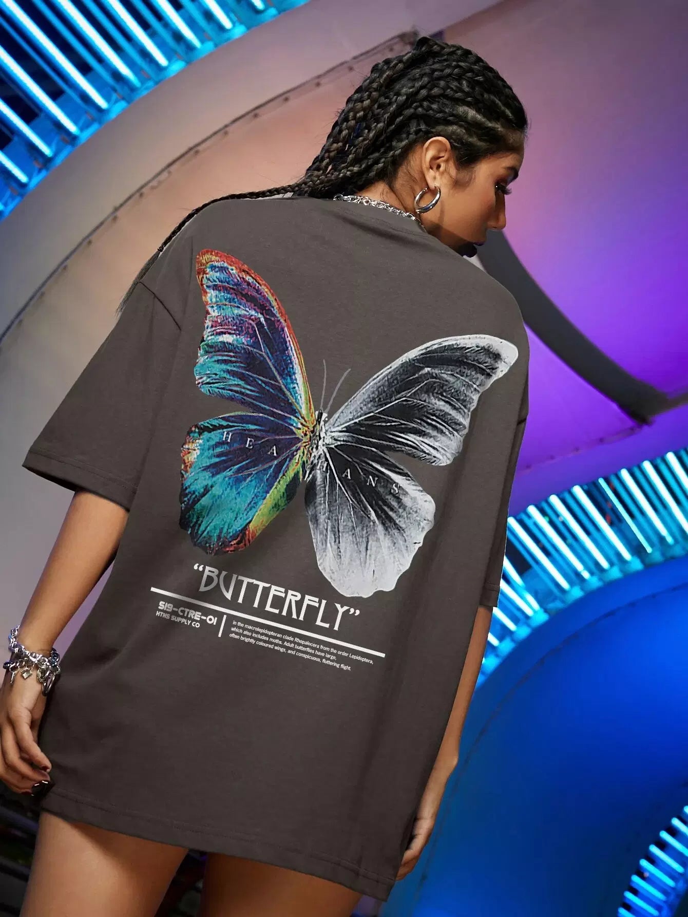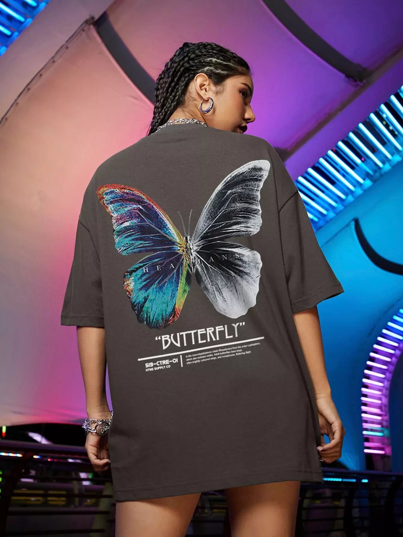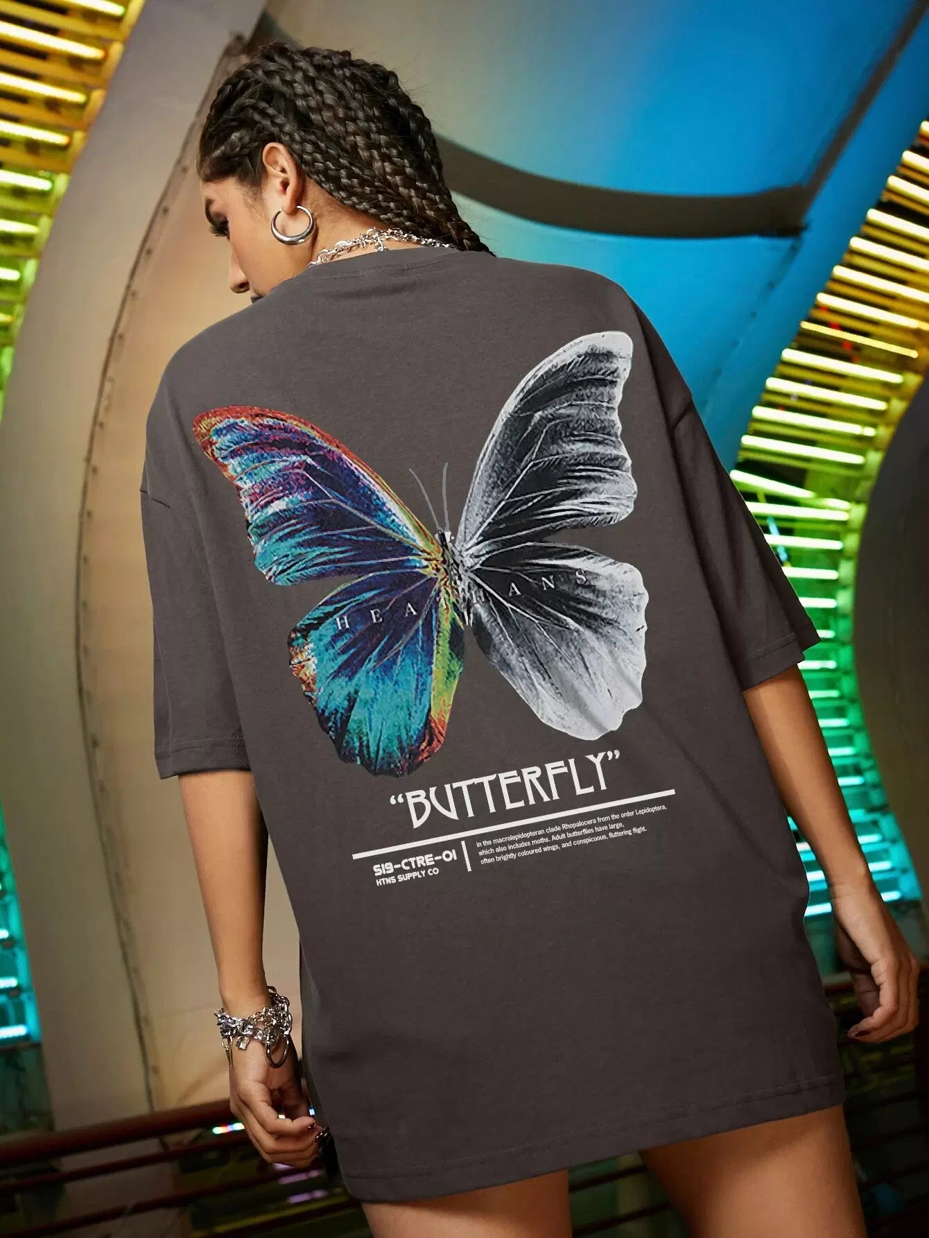 Women - Butterfly & Slogan Graphic Oversized Tee