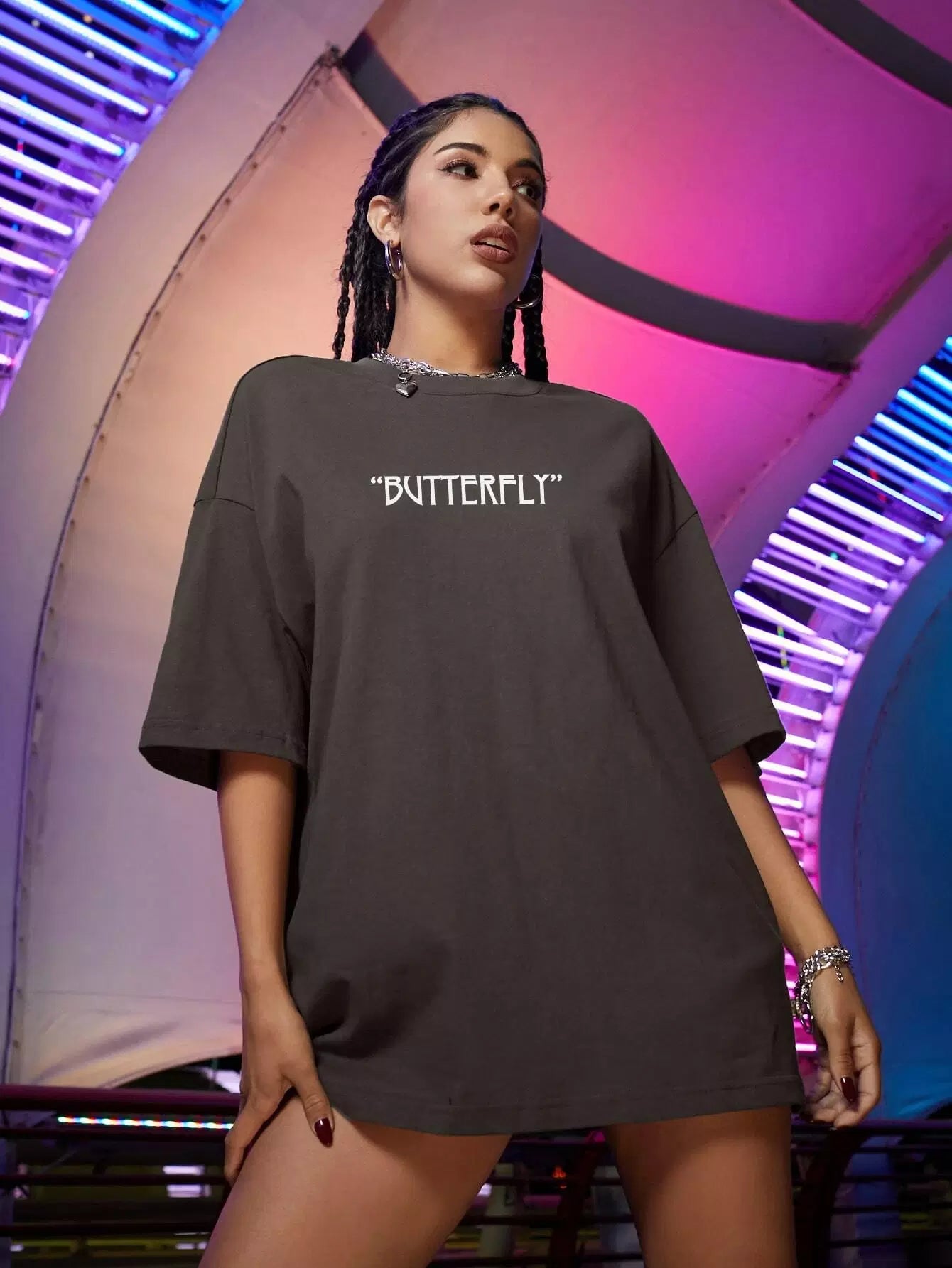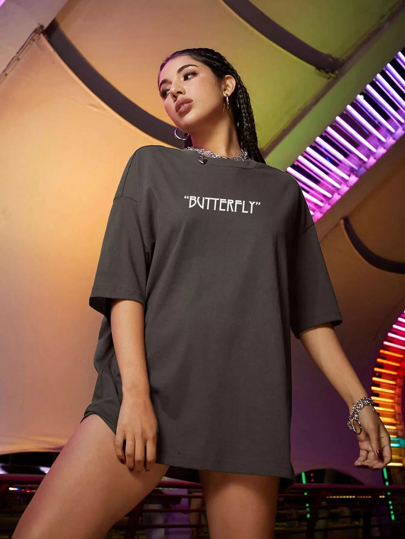 Butterfly & Slogan Graphic Oversized Tee