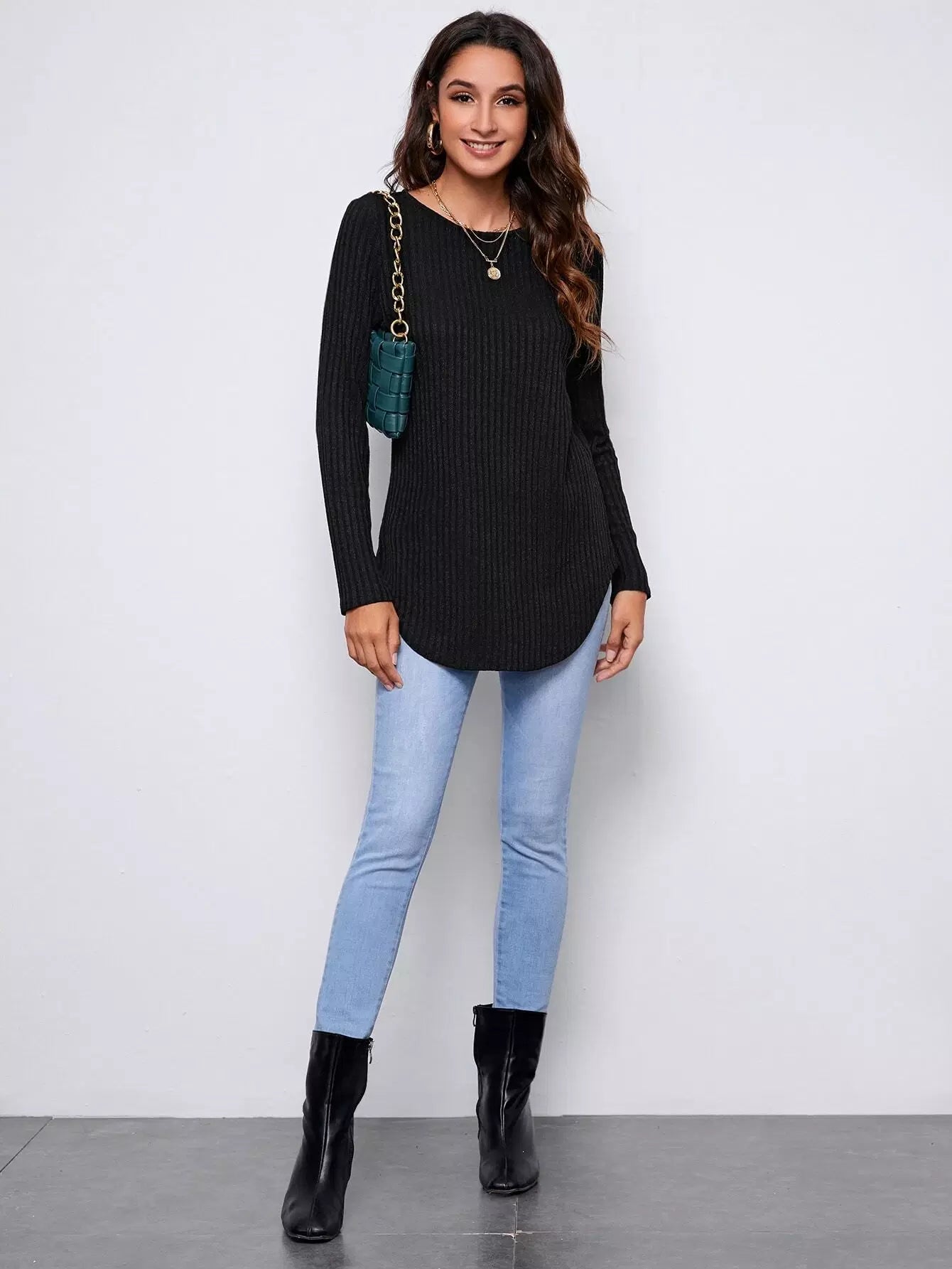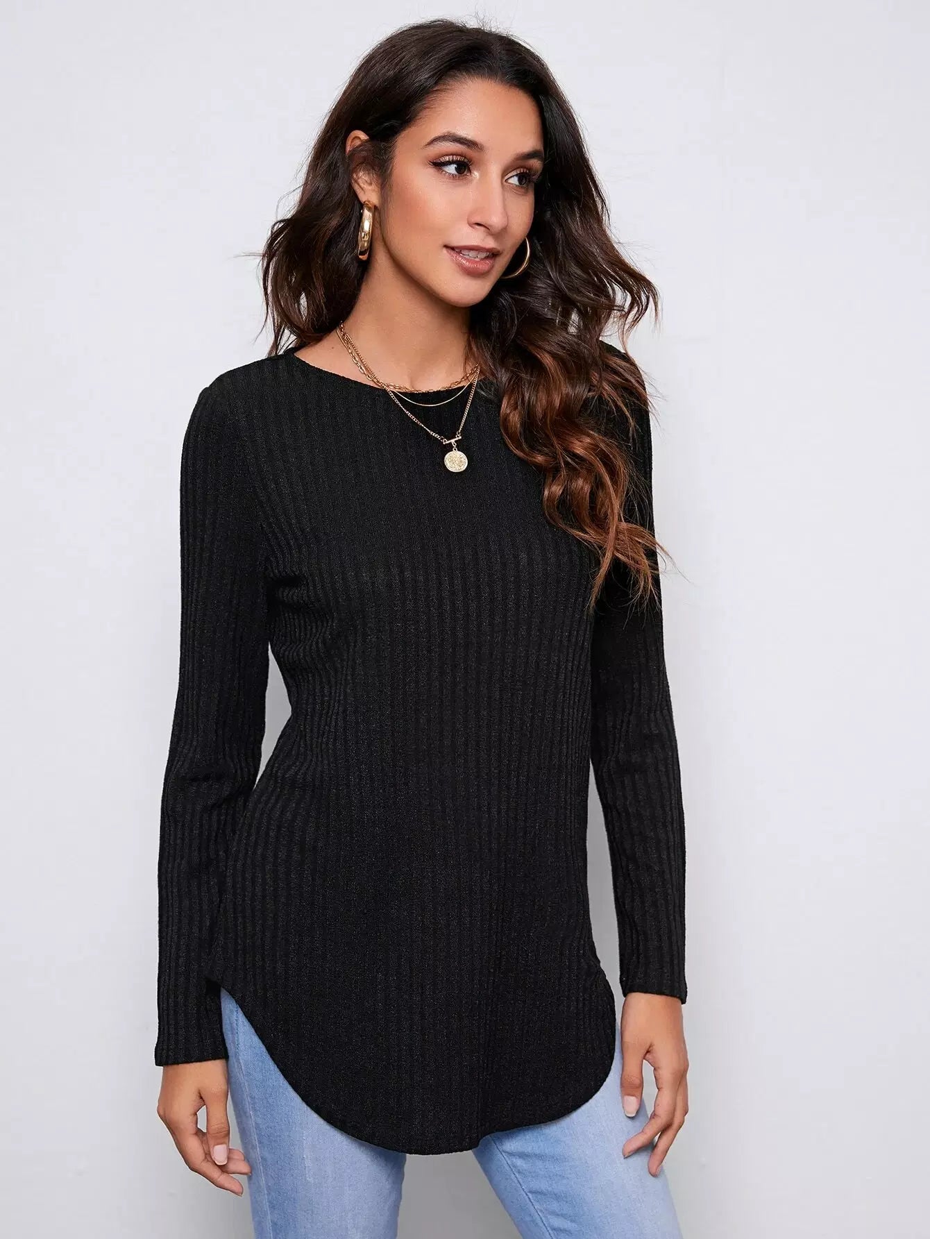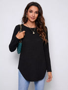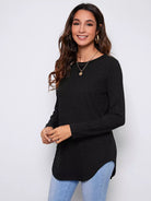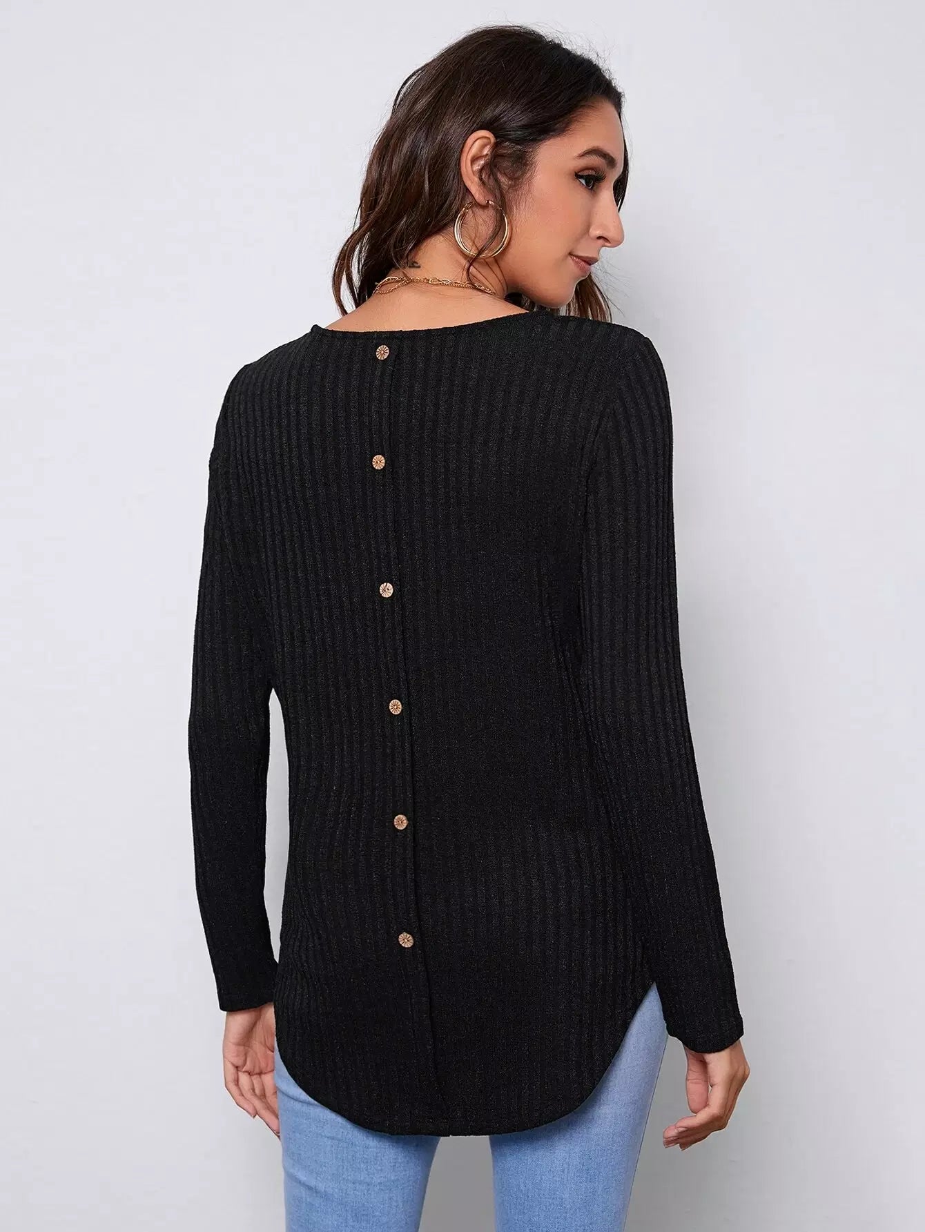 Button Detail Back Curved Hem Tee