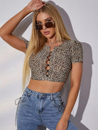 Button Front Leopard Crop Top
