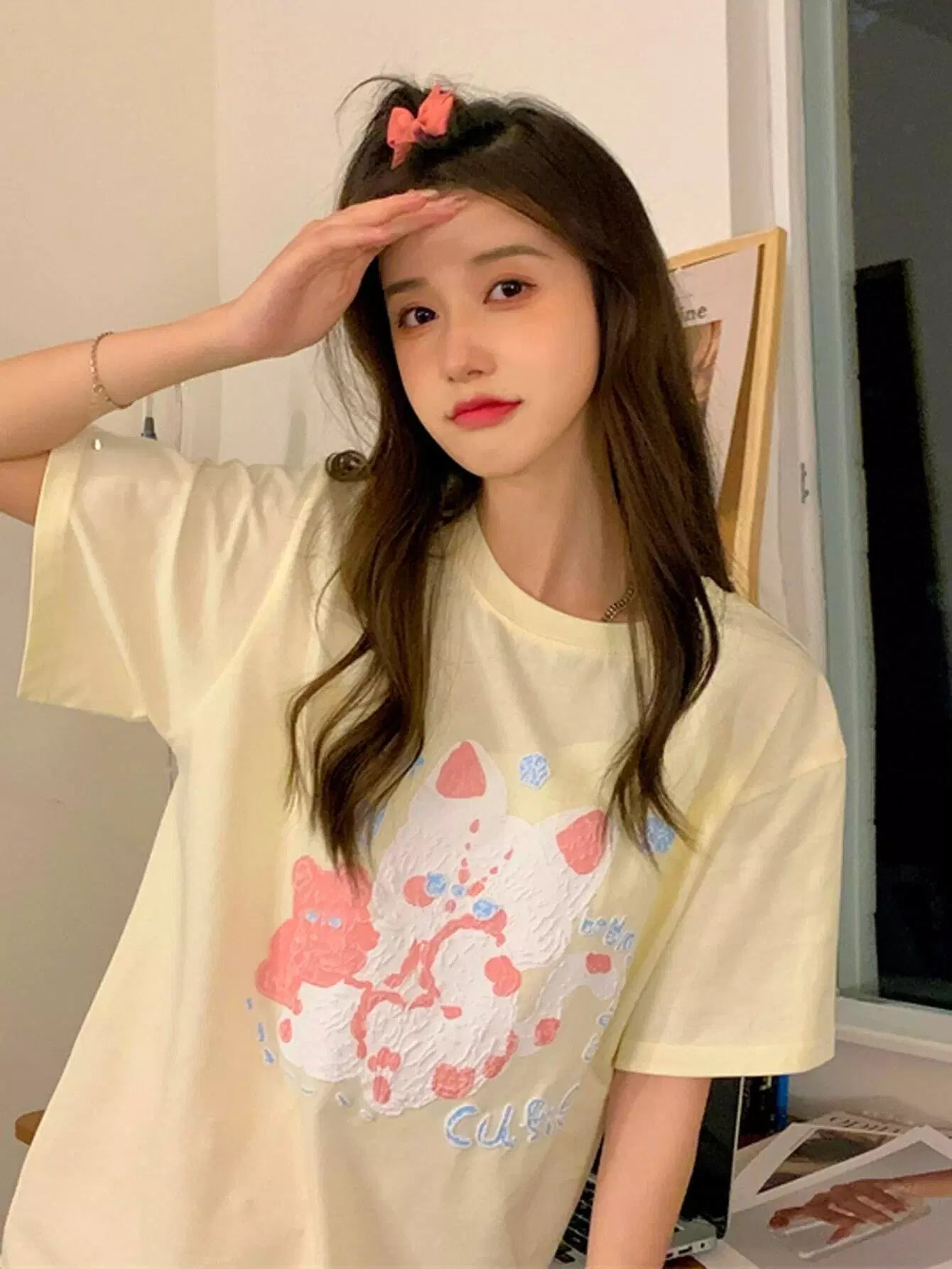Cartoon Pattern Drop Shoulder Tee