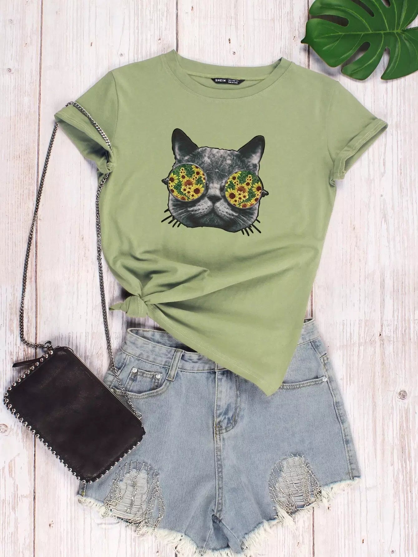 Cat And Sunflower Print Tee