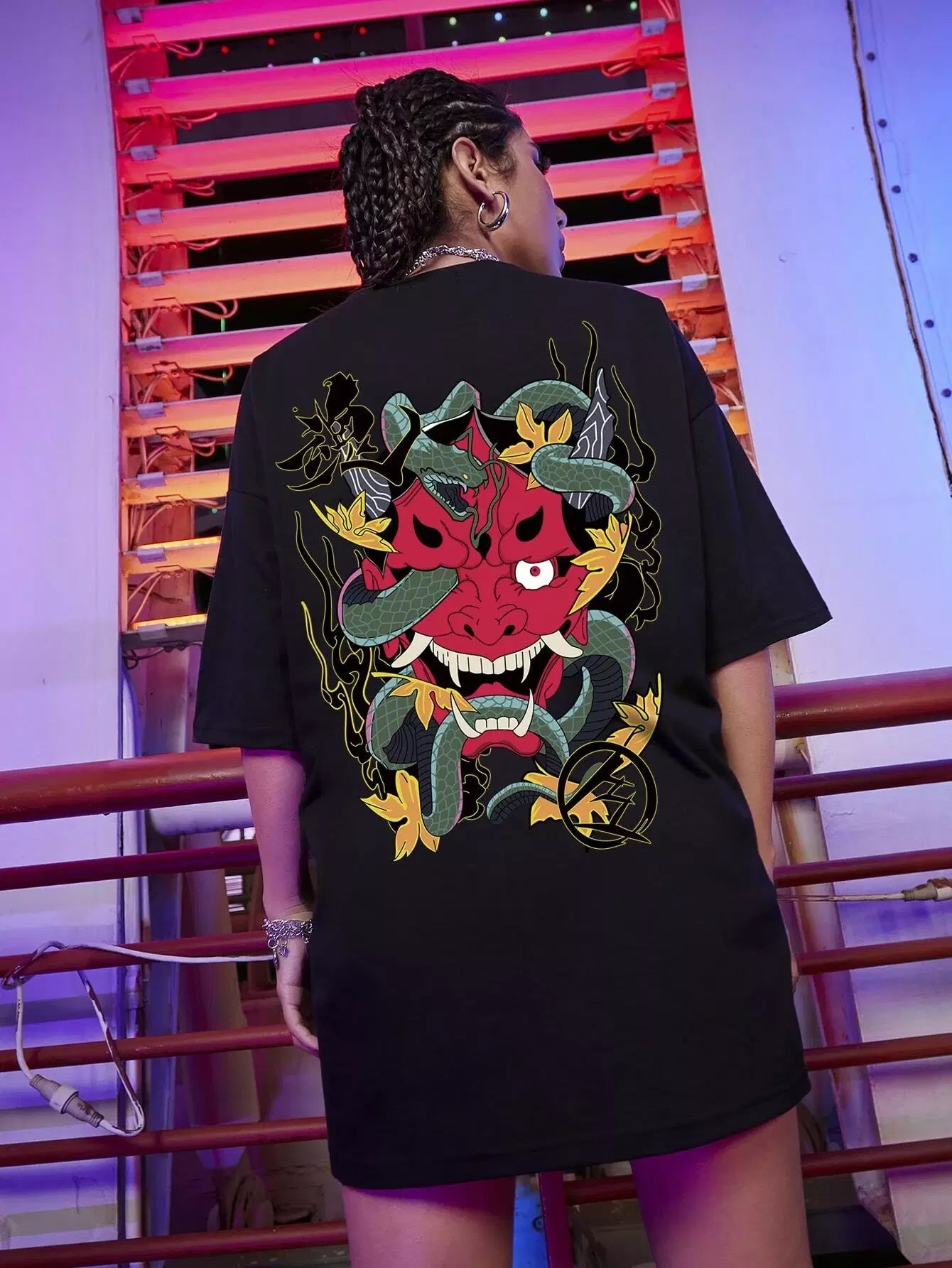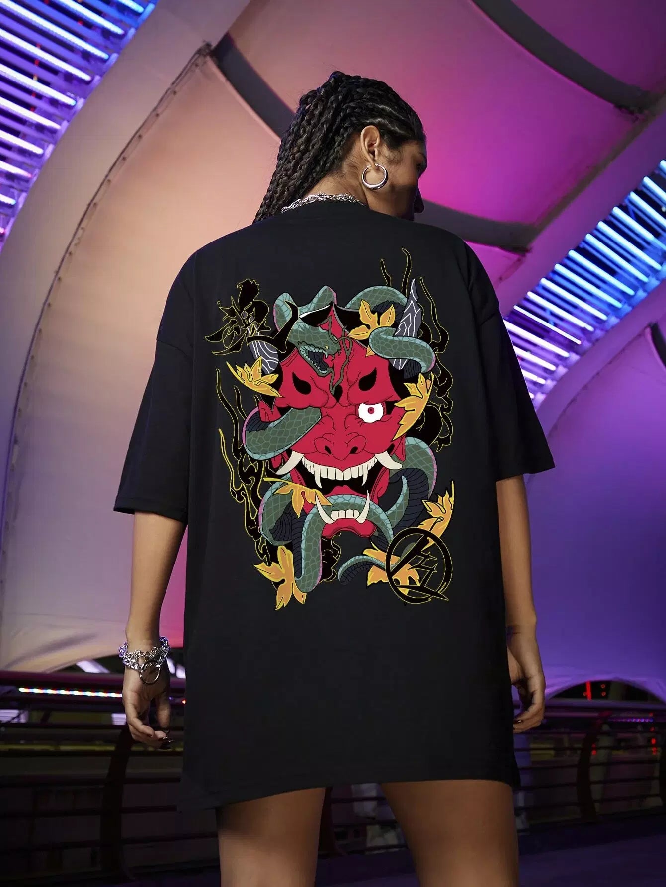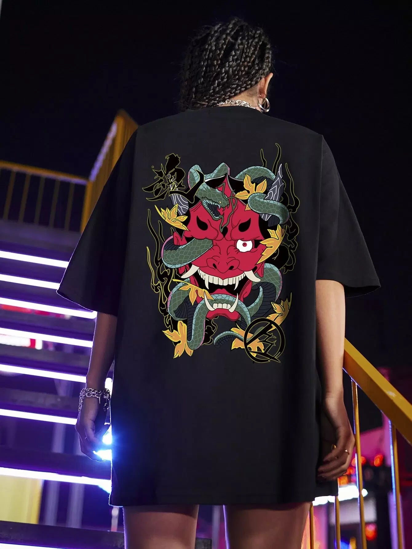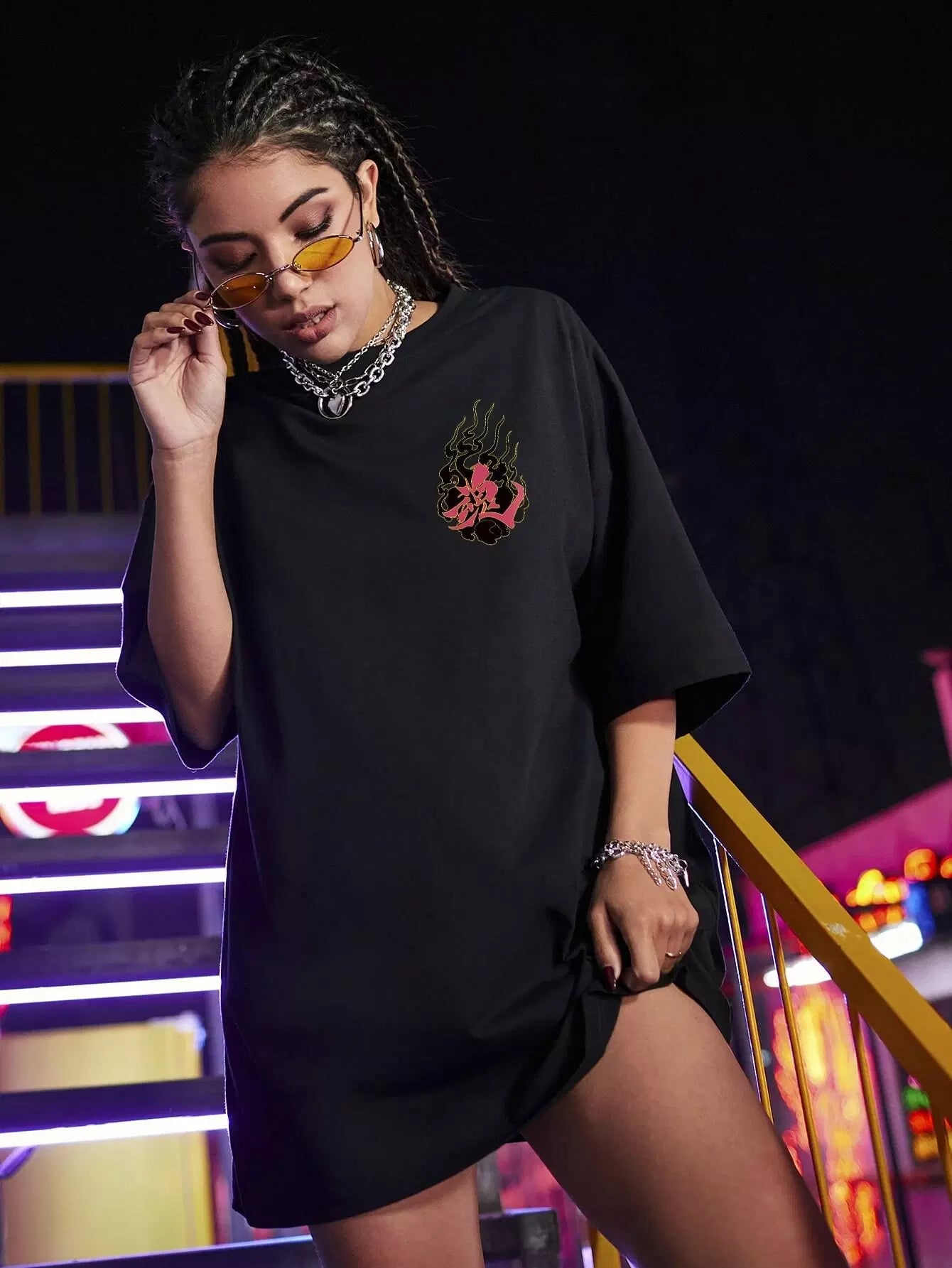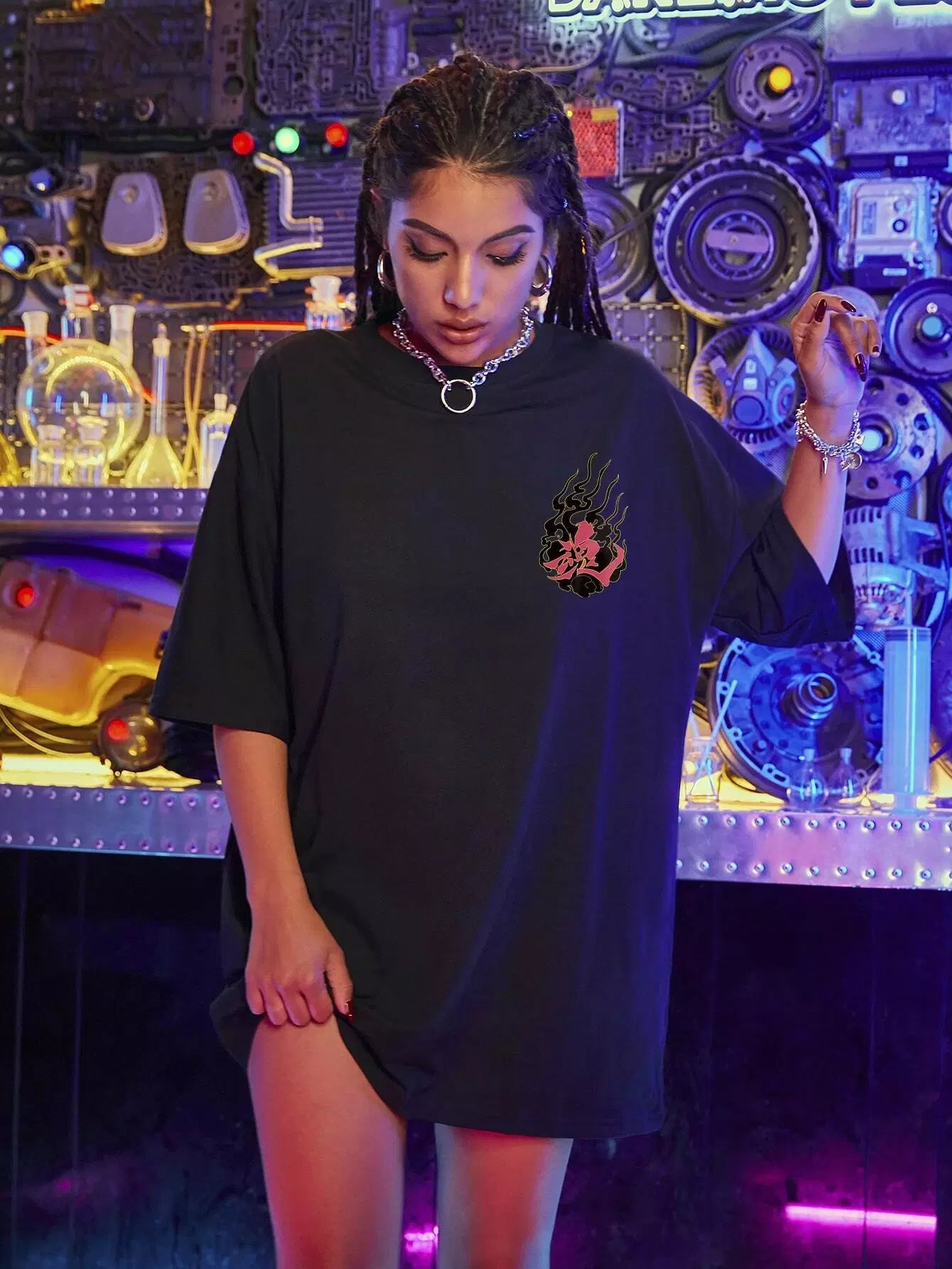 Chinese Letter And Cartoon Graphic Oversized Tee