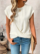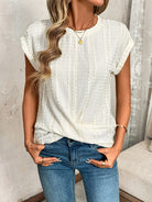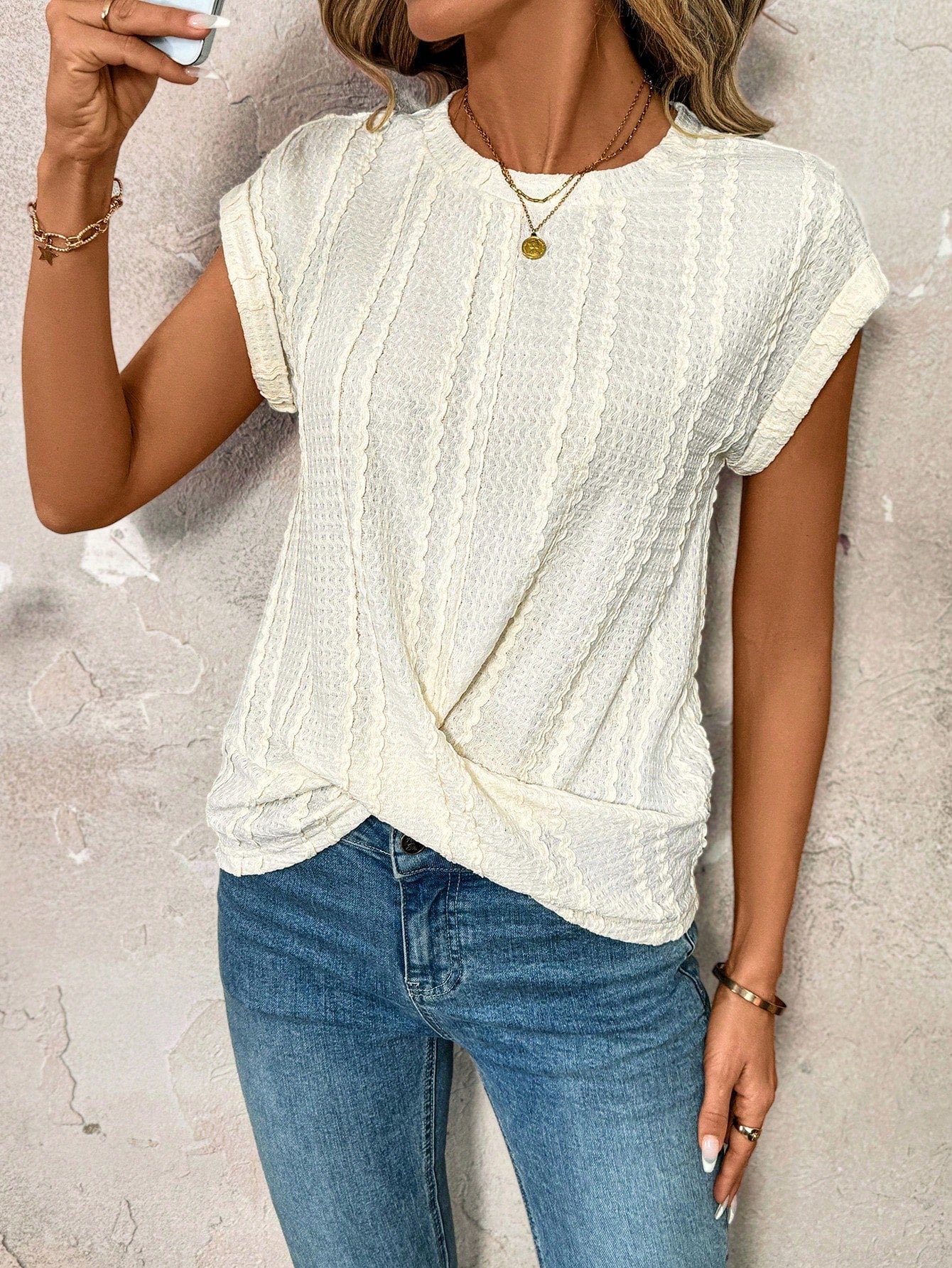 Clasi Ivory Vertical Striped Textured Knit Bodycon Round Neck Short Sleeve Women T-Shirt Summer Outfits