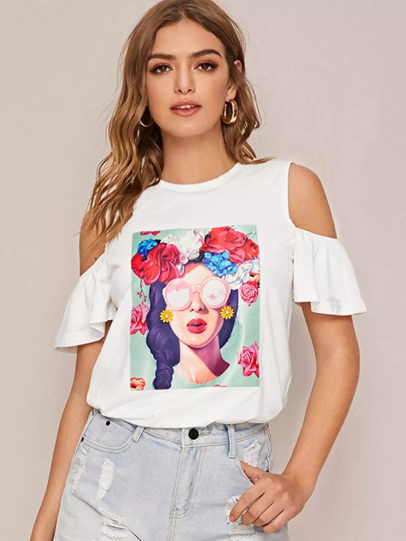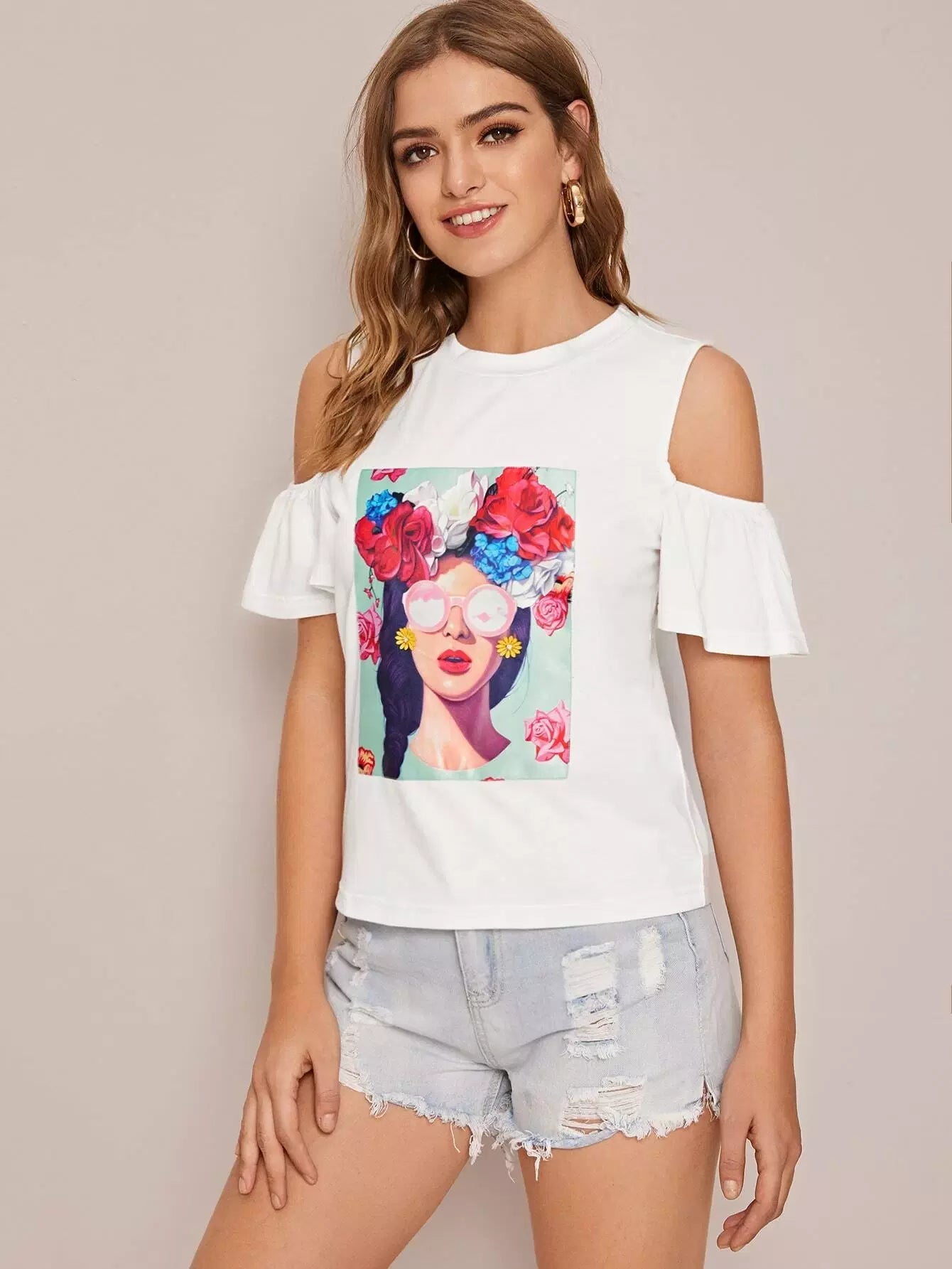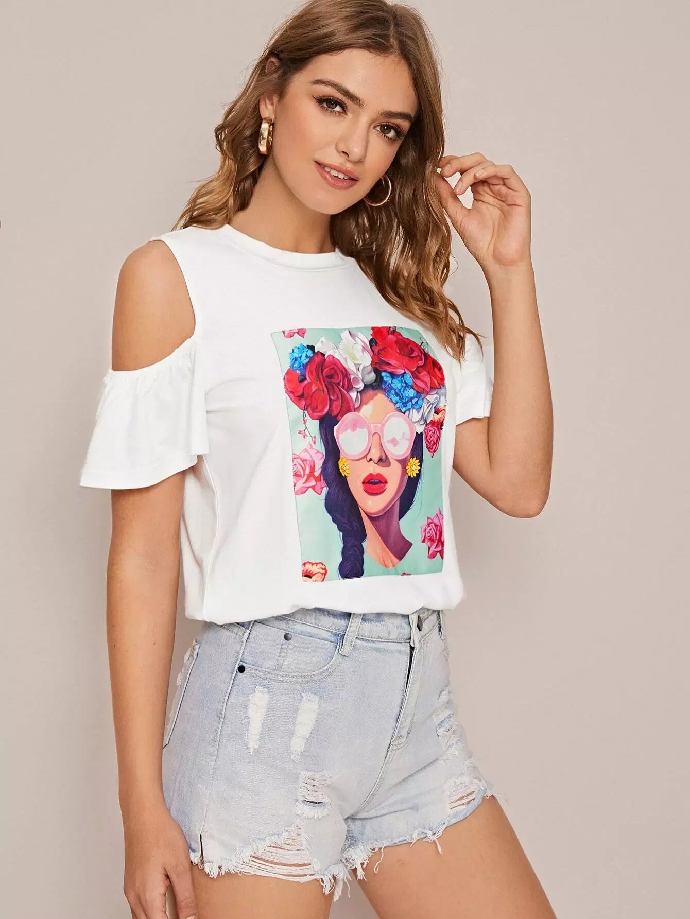 Cold Shoulder Figure Graphic Top