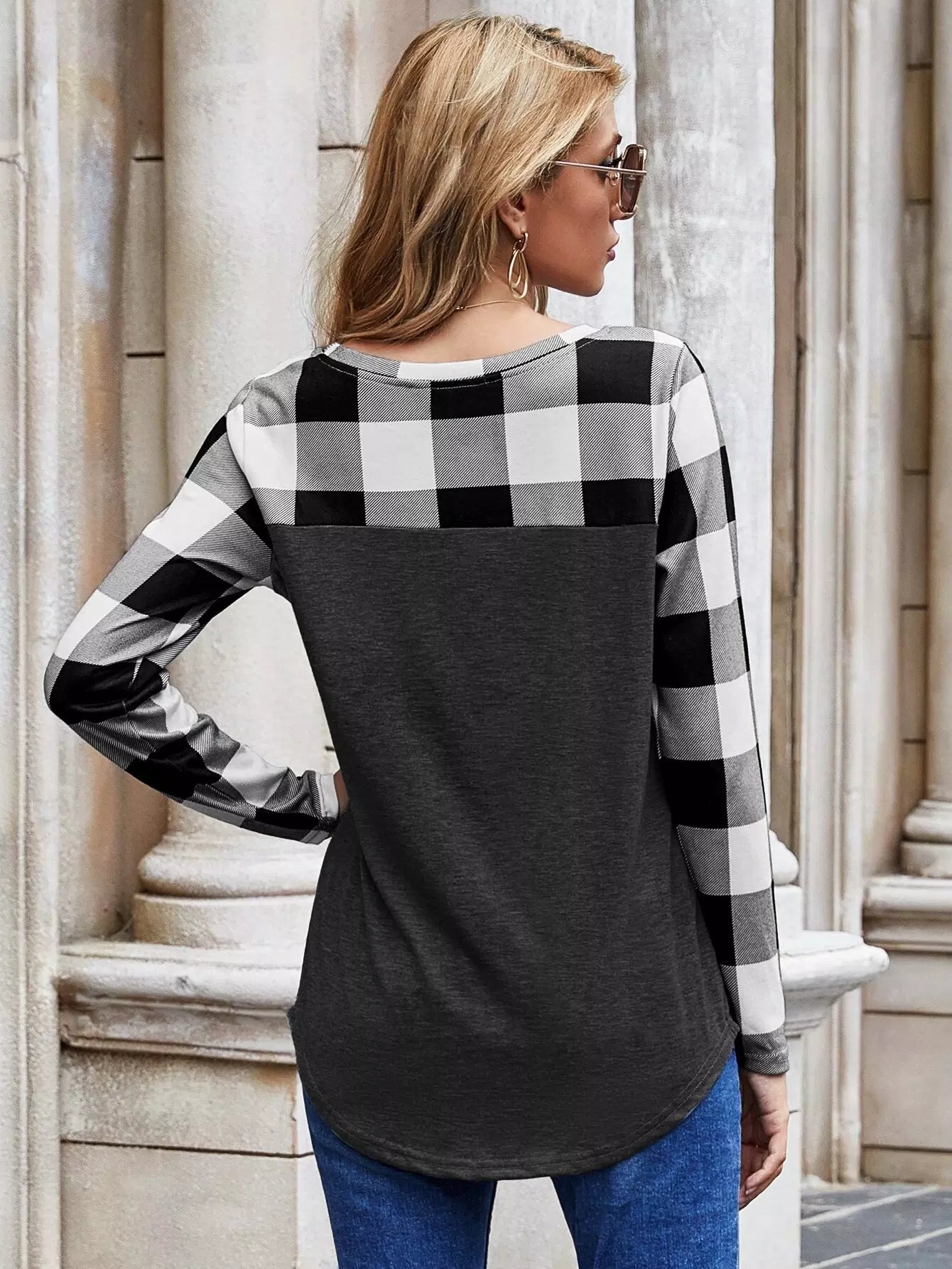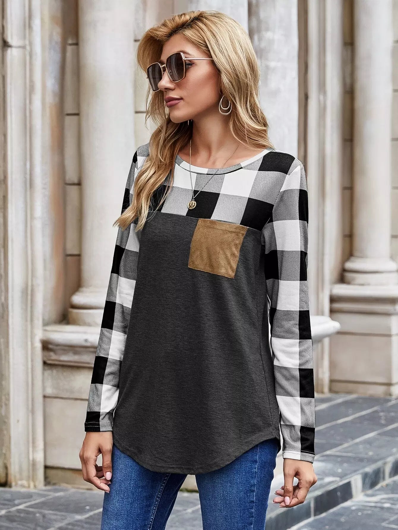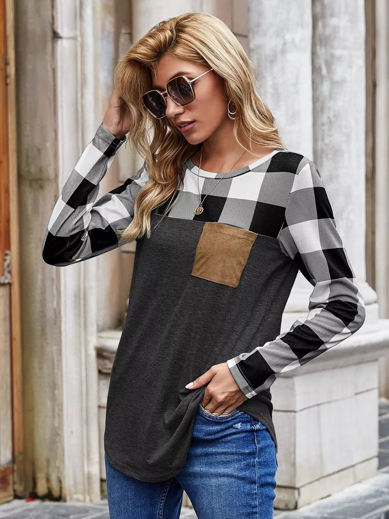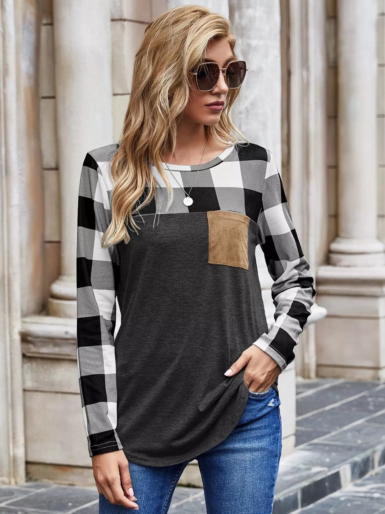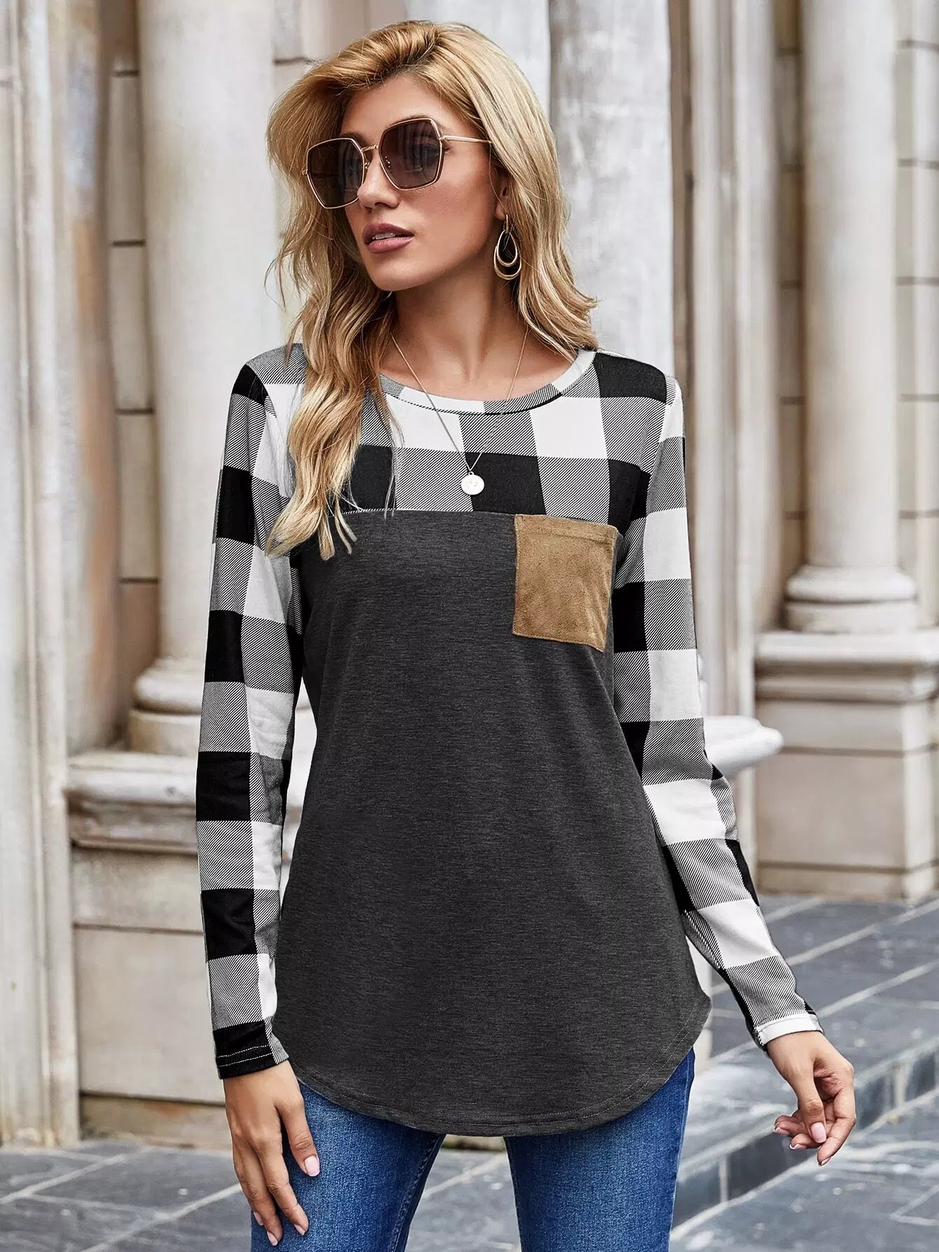 Women - Contrast Buffalo Plaid Pocket Front Tee