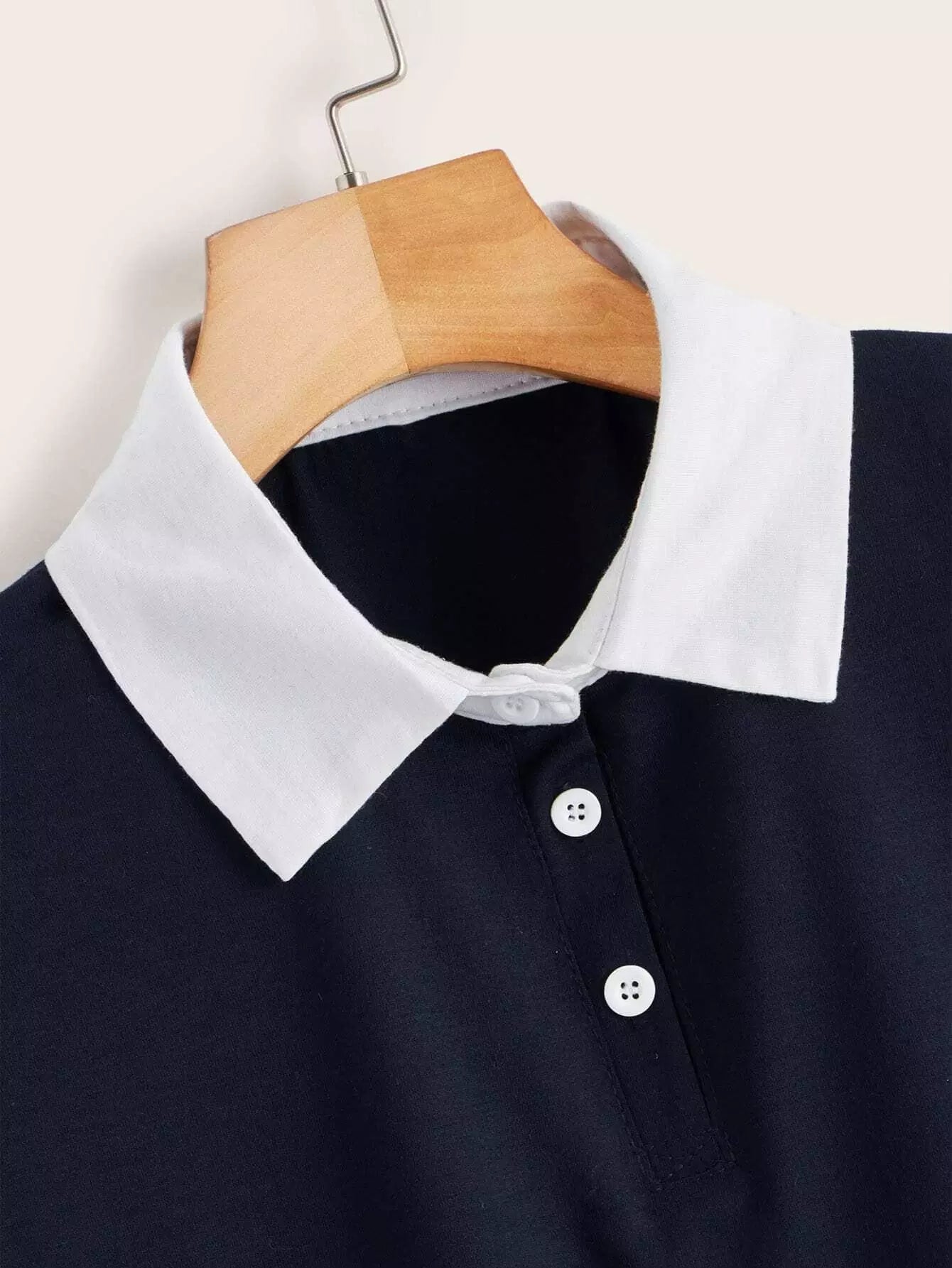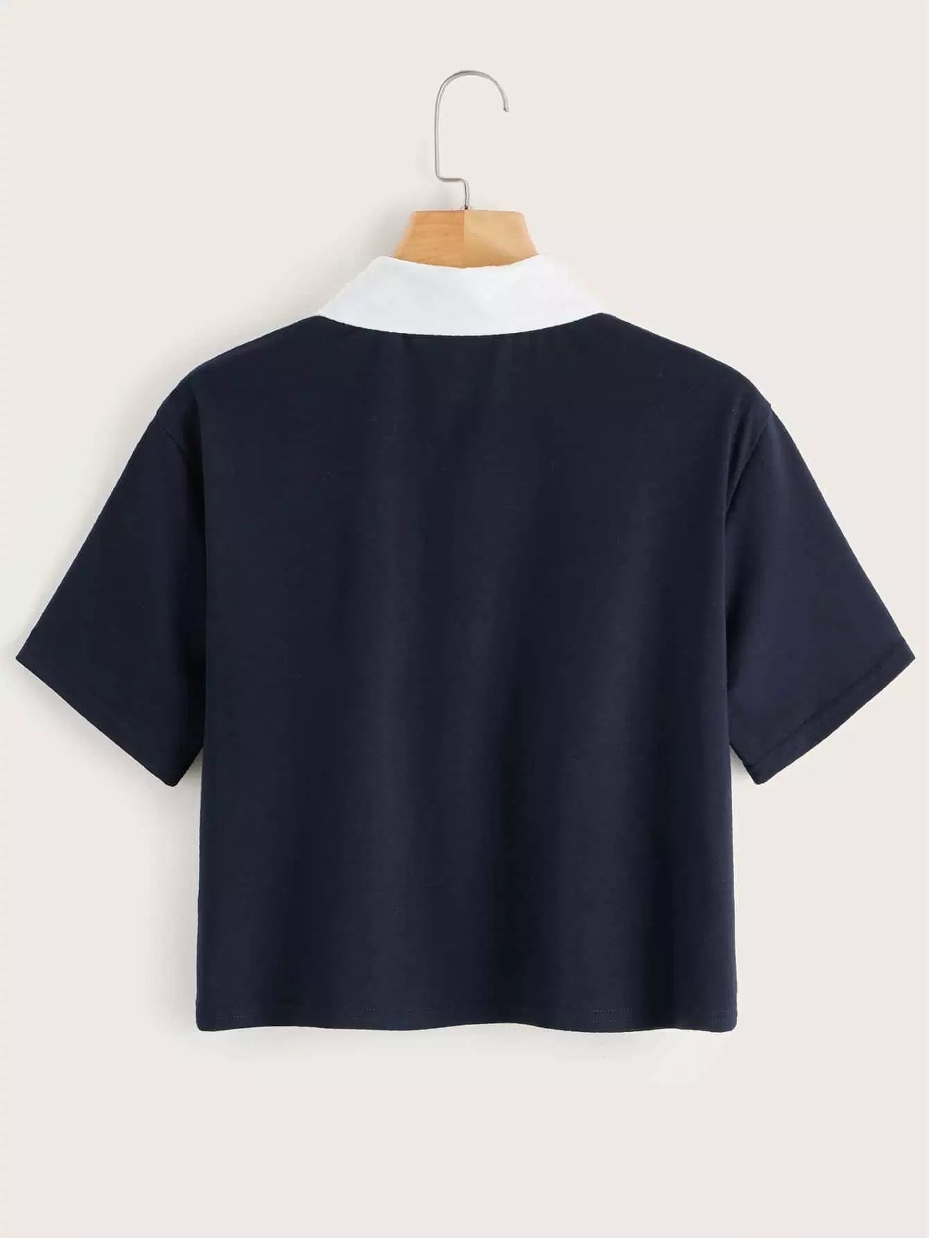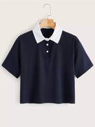 Contrast Collar Button Front Polo Tee