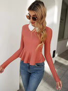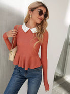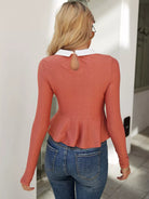 Contrast Collar Ruffle Hem Tee