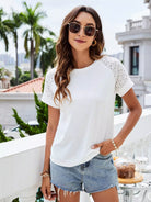 Contrast Eyelet Embroidery Raglan Sleeve Tee