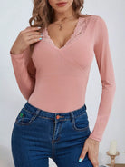 Contrast Guipure Lace Slim Tee