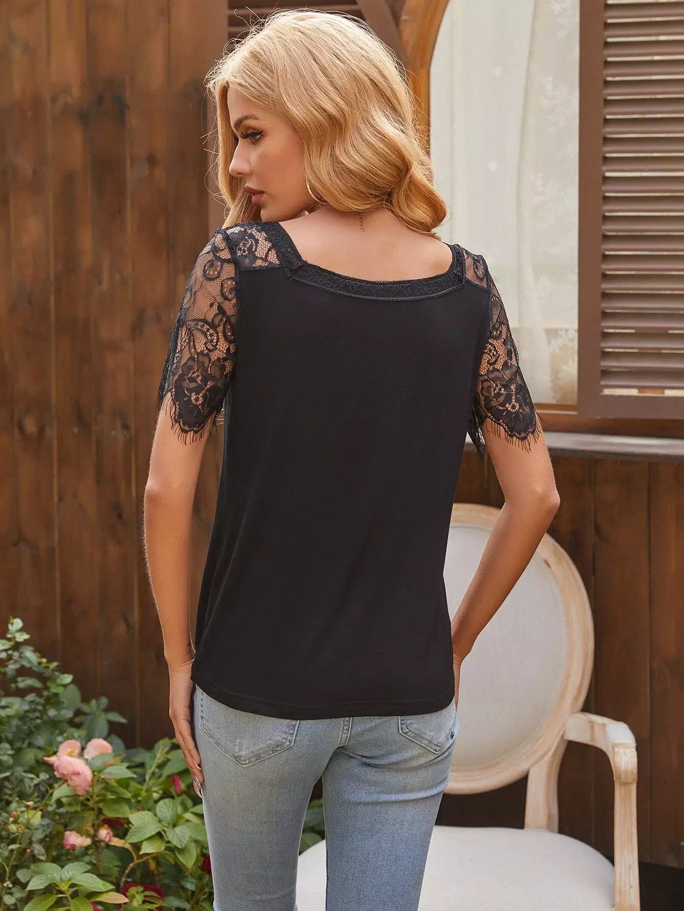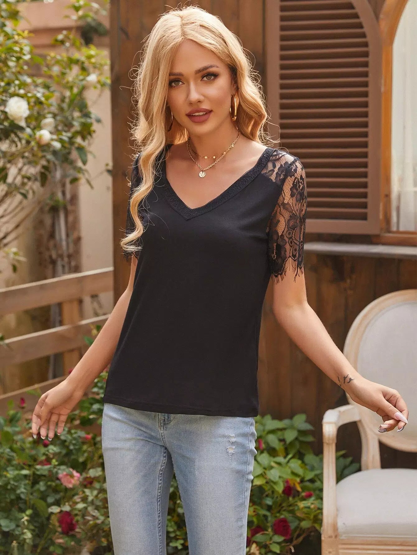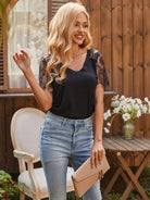 Contrast Lace V Neck Tee