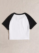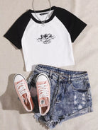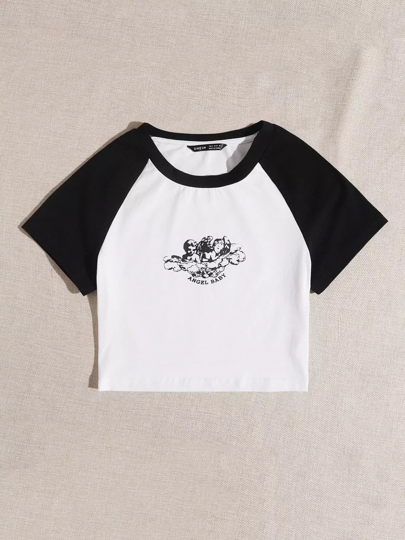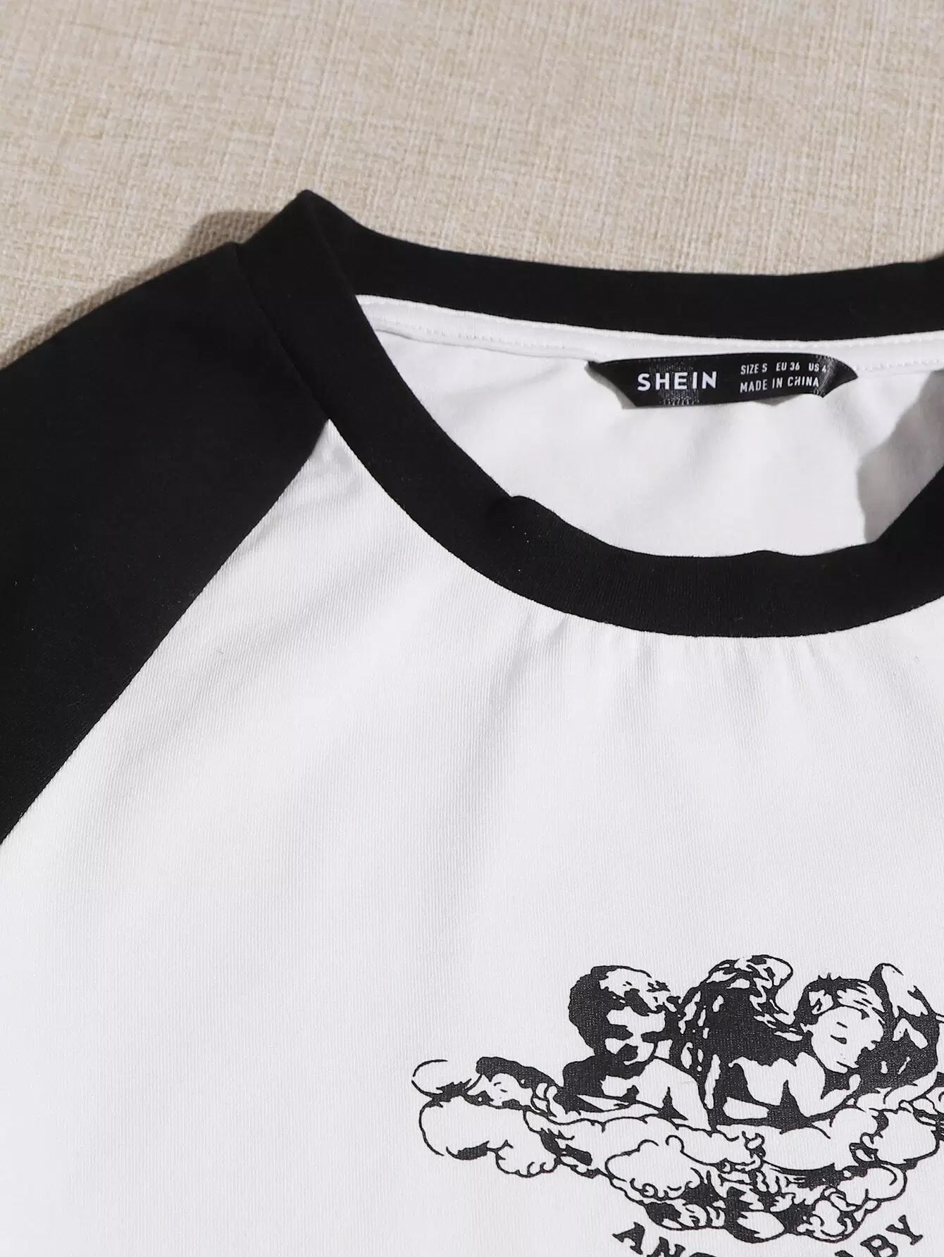 Contrast Raglan Sleeve Letter & Angel Print Tee