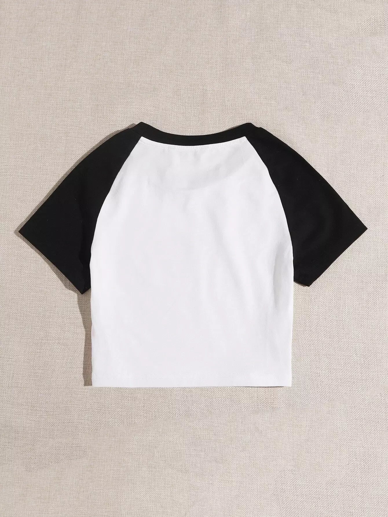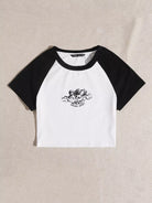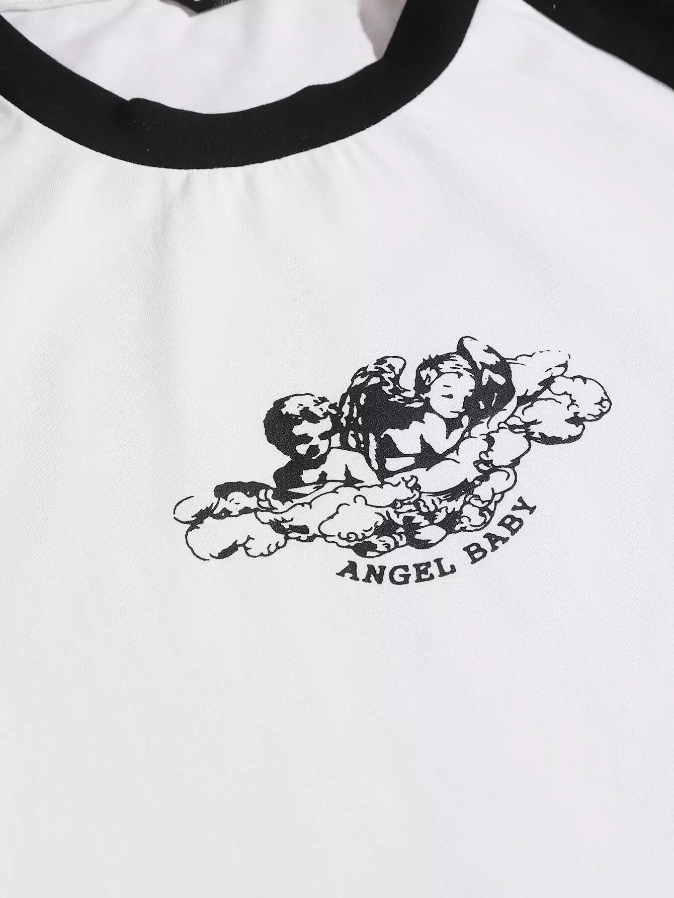 Women - Contrast Raglan Sleeve Letter & Angel Print Tee