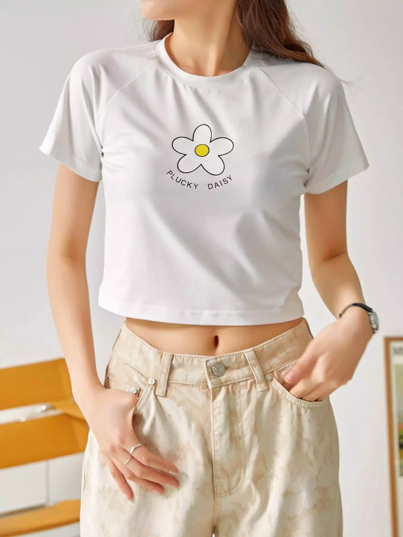 DAZY Flower And Slogan Graphic Tee