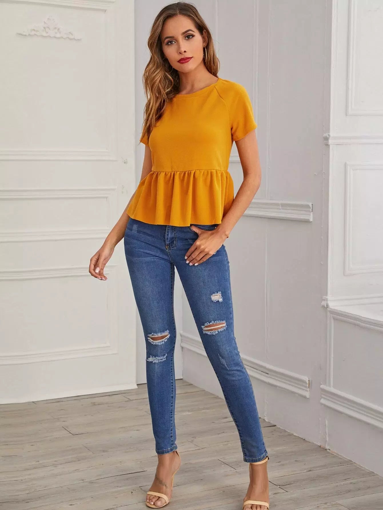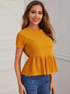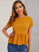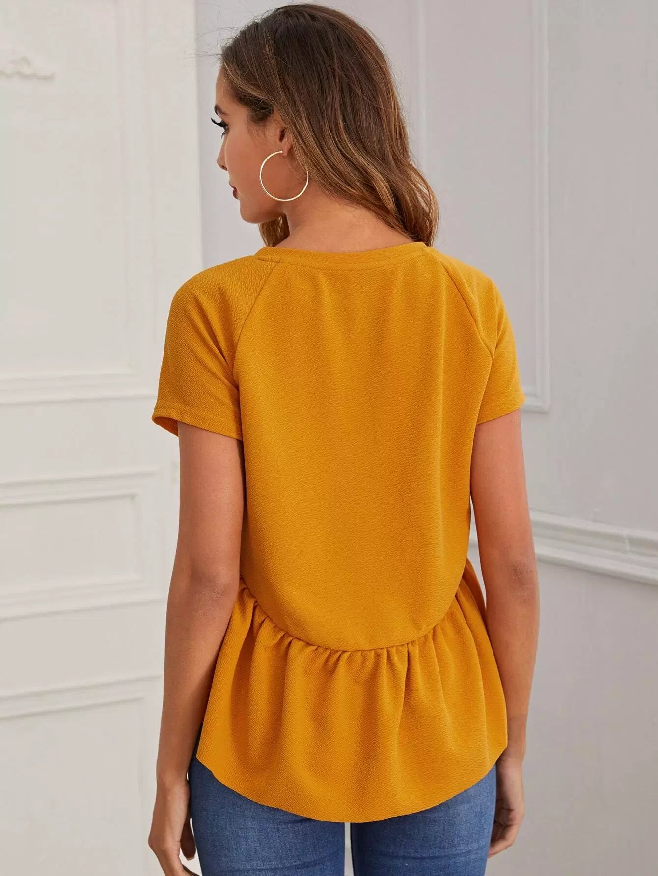 Dip Hem Raglan Sleeve Peplum Top