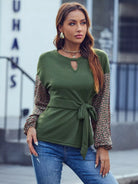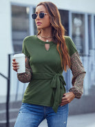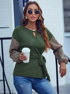 Ditsy Floral Keyhole Neck Drop Shoulder Knot Front Tee