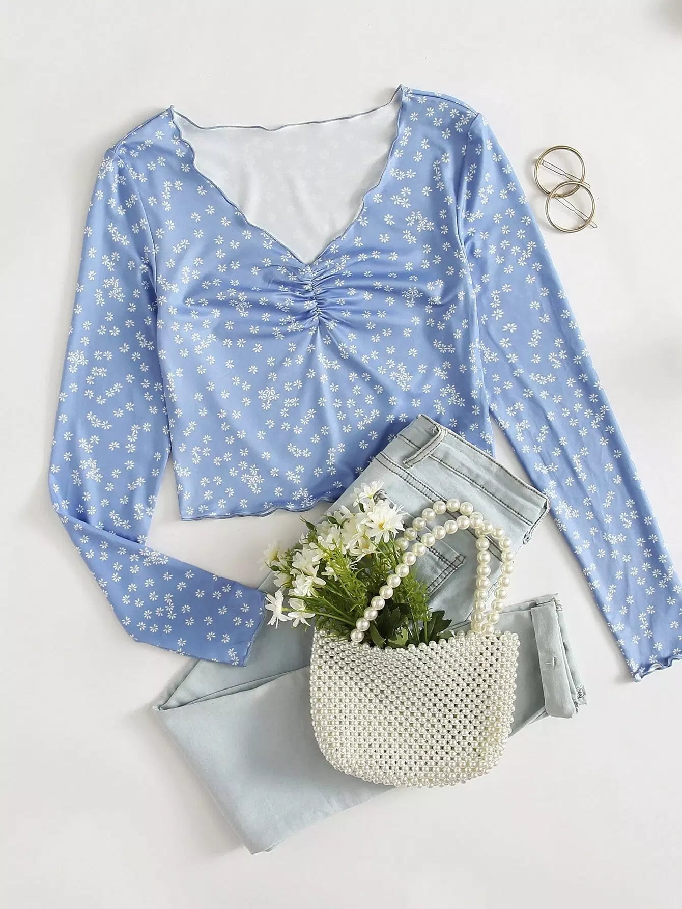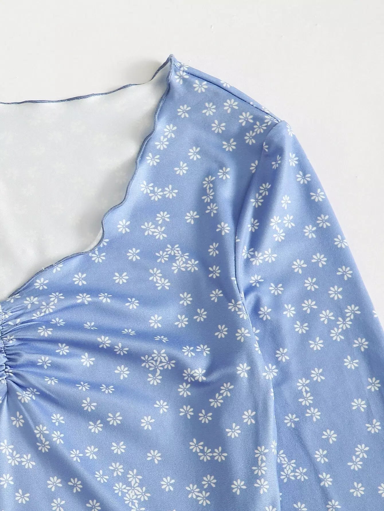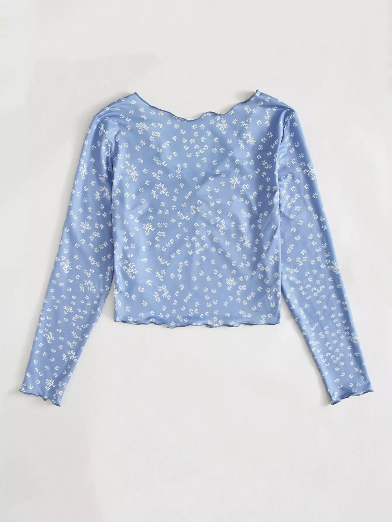 Ditsy Floral Print Ruched Front Lettuce Edge Tee