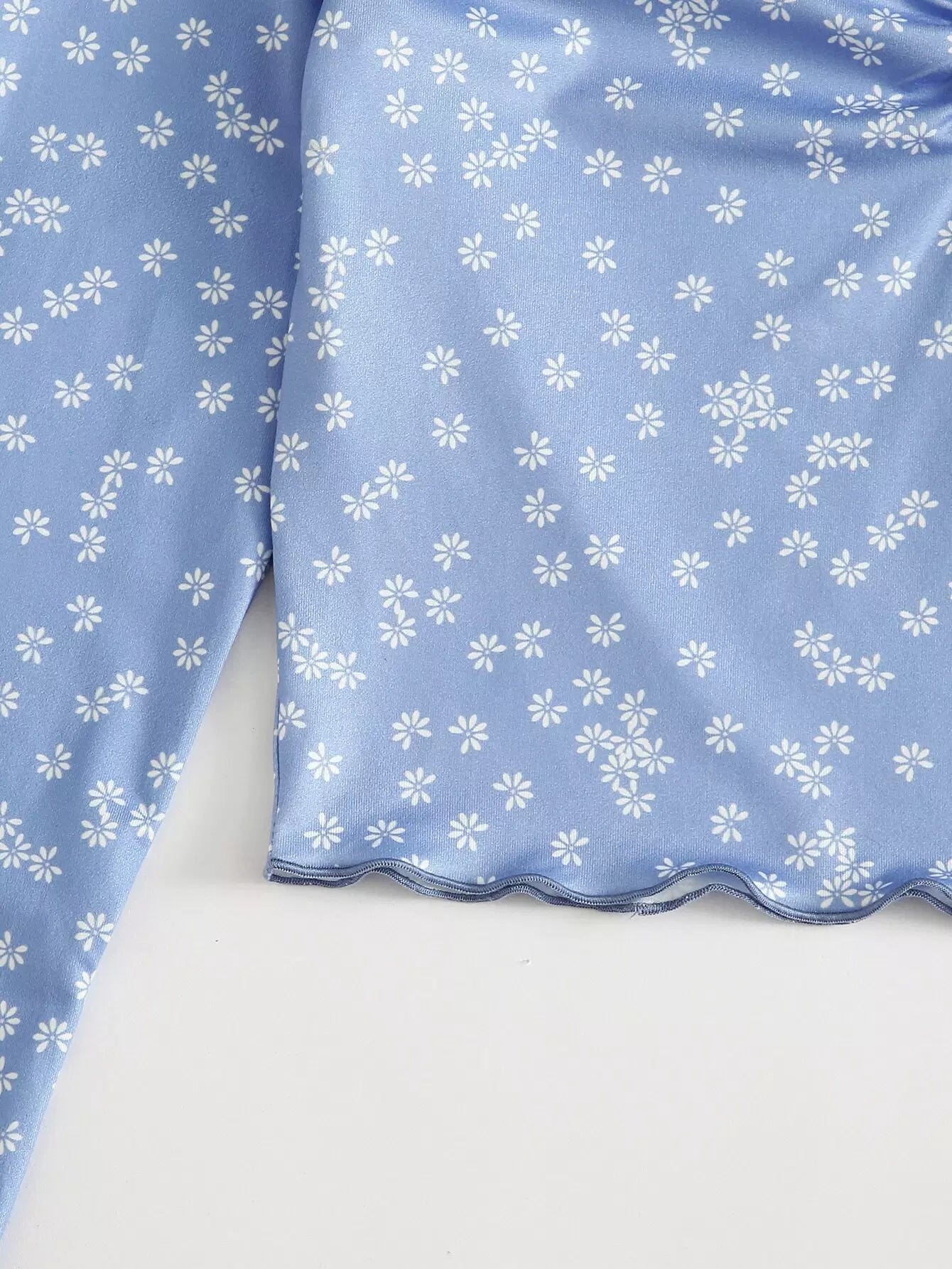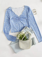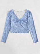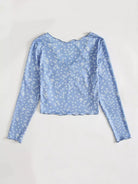 Women - Ditsy Floral Print Ruched Front Lettuce Edge Tee