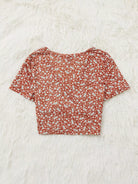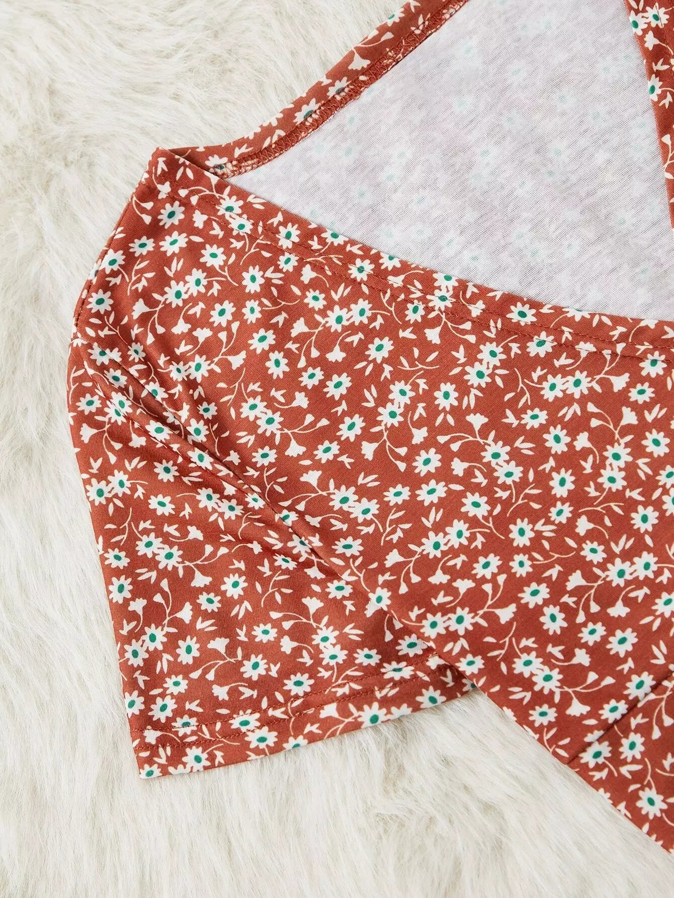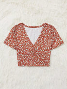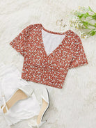 Ditsy Floral Surplice Plunging Neck Crop Tee