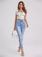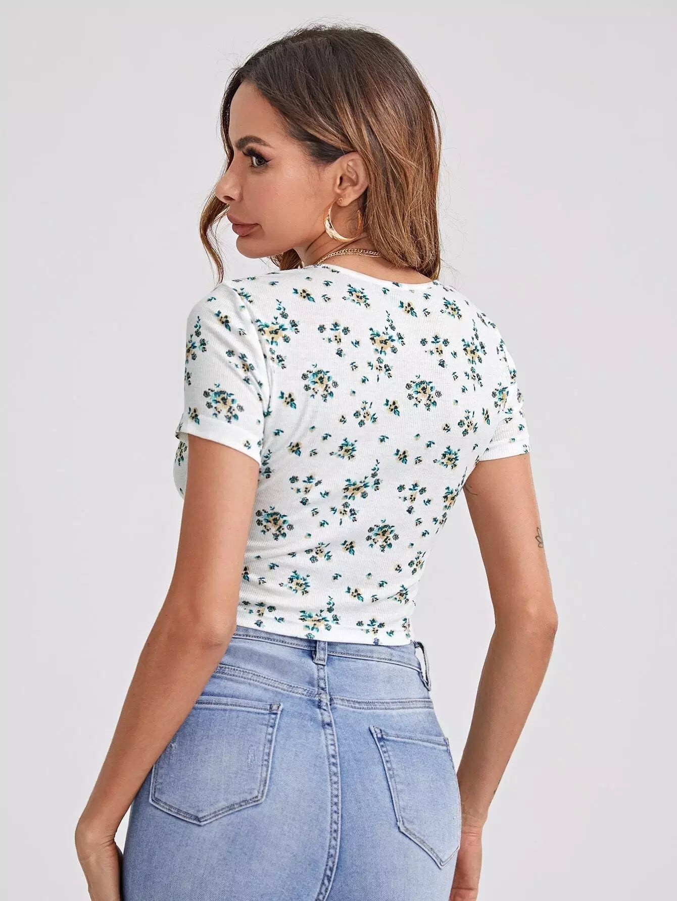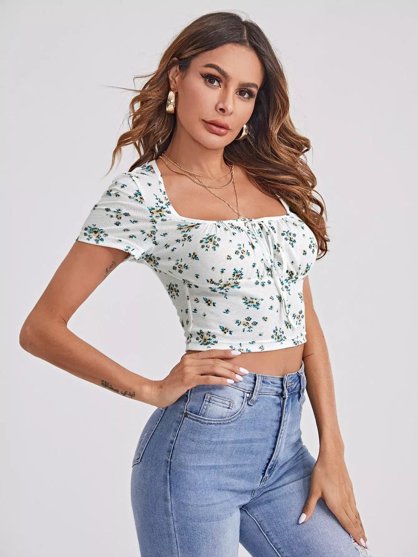 Women - Ditsy Floral Tie Front Ruched Bust Tee