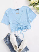 Drawstring Knot Rib-knit Tee