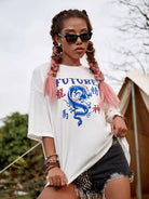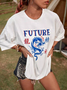Drop Shoulder Chinese Letter & Dragon Graphic Tee