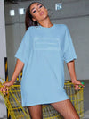 Drop Shoulder Slogan Graphic Longline Tee