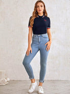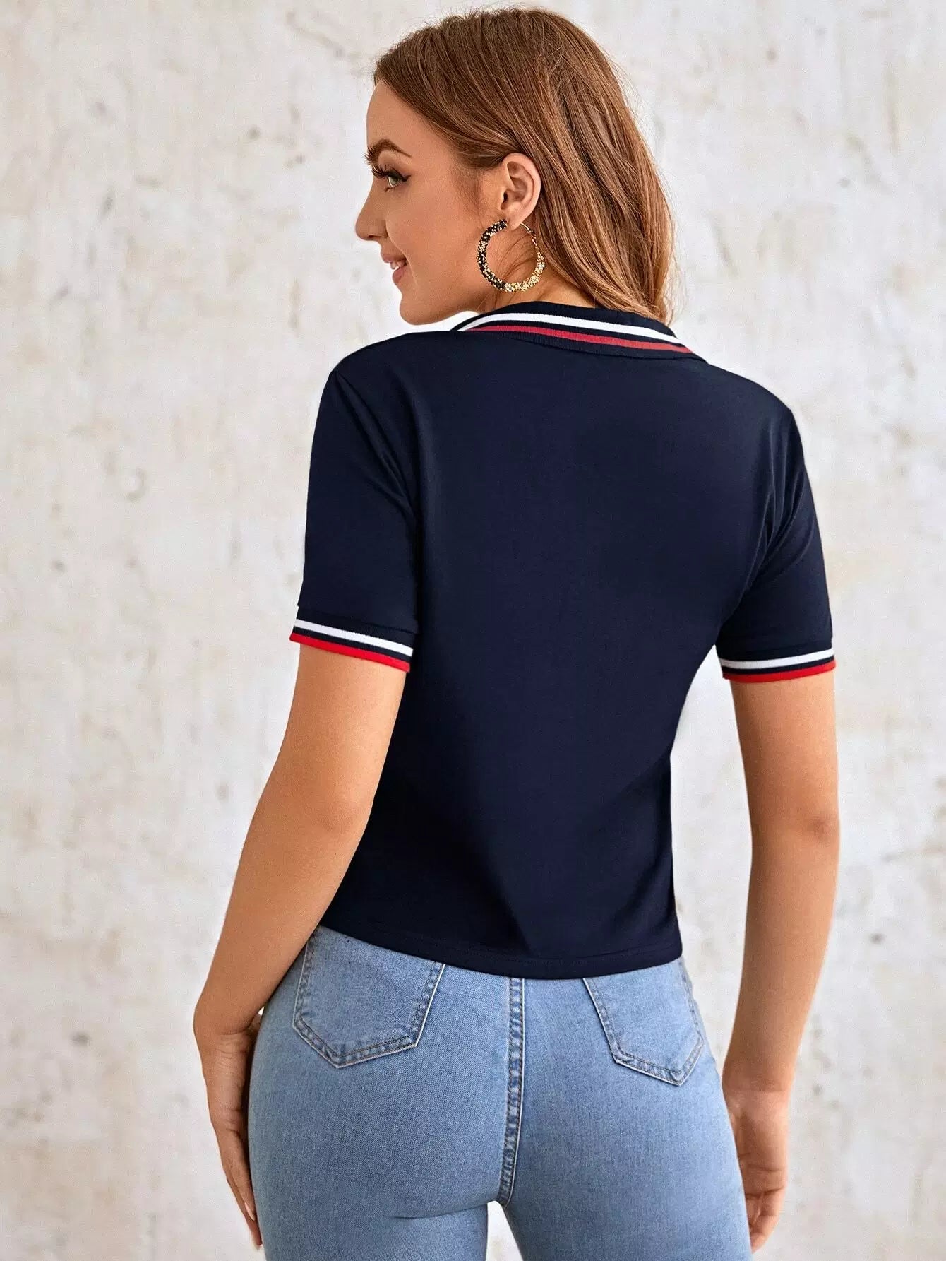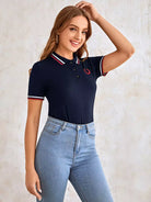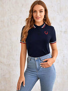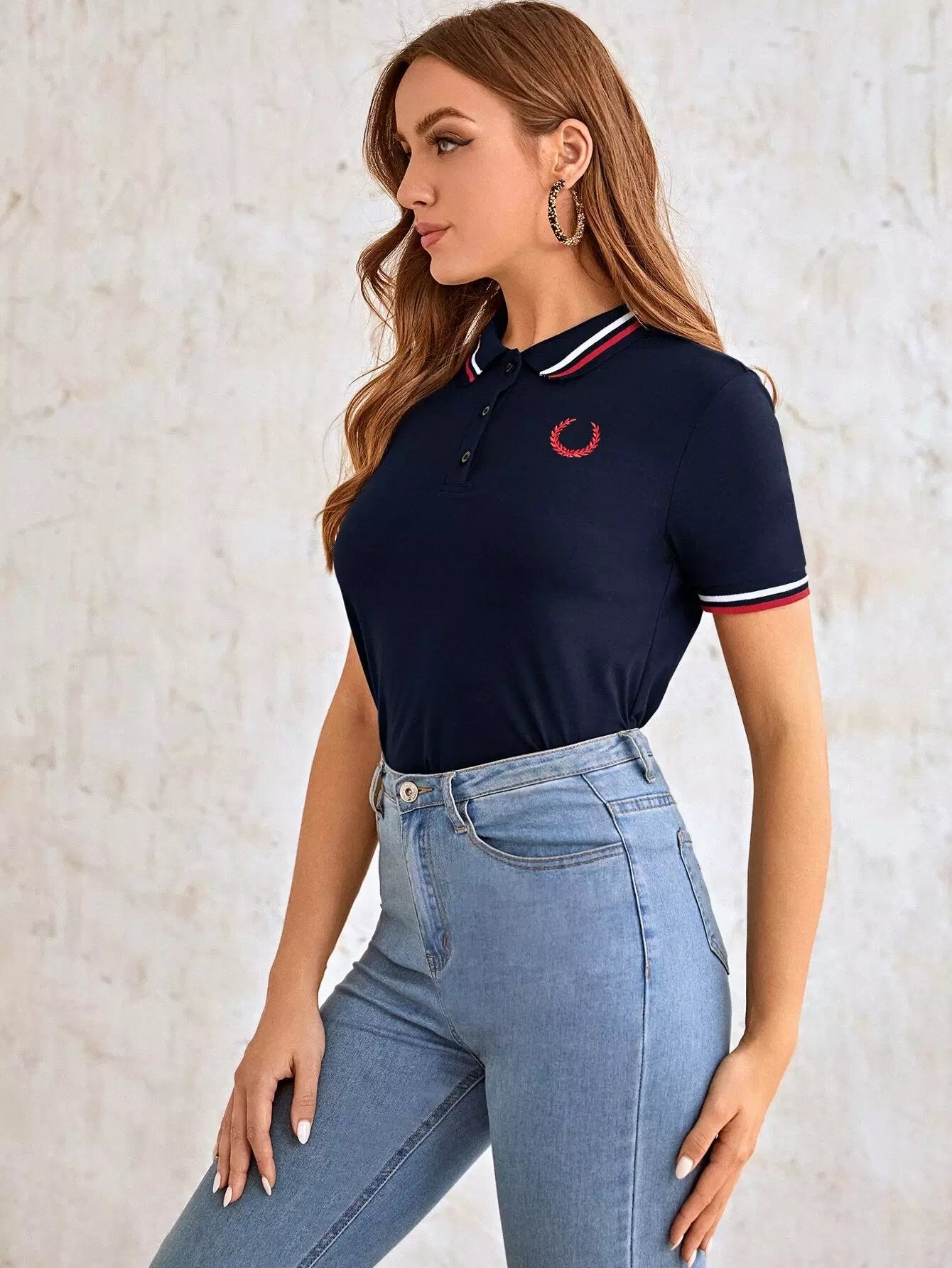 Women - Embroidered Detail Striped Trim Polo Shirt