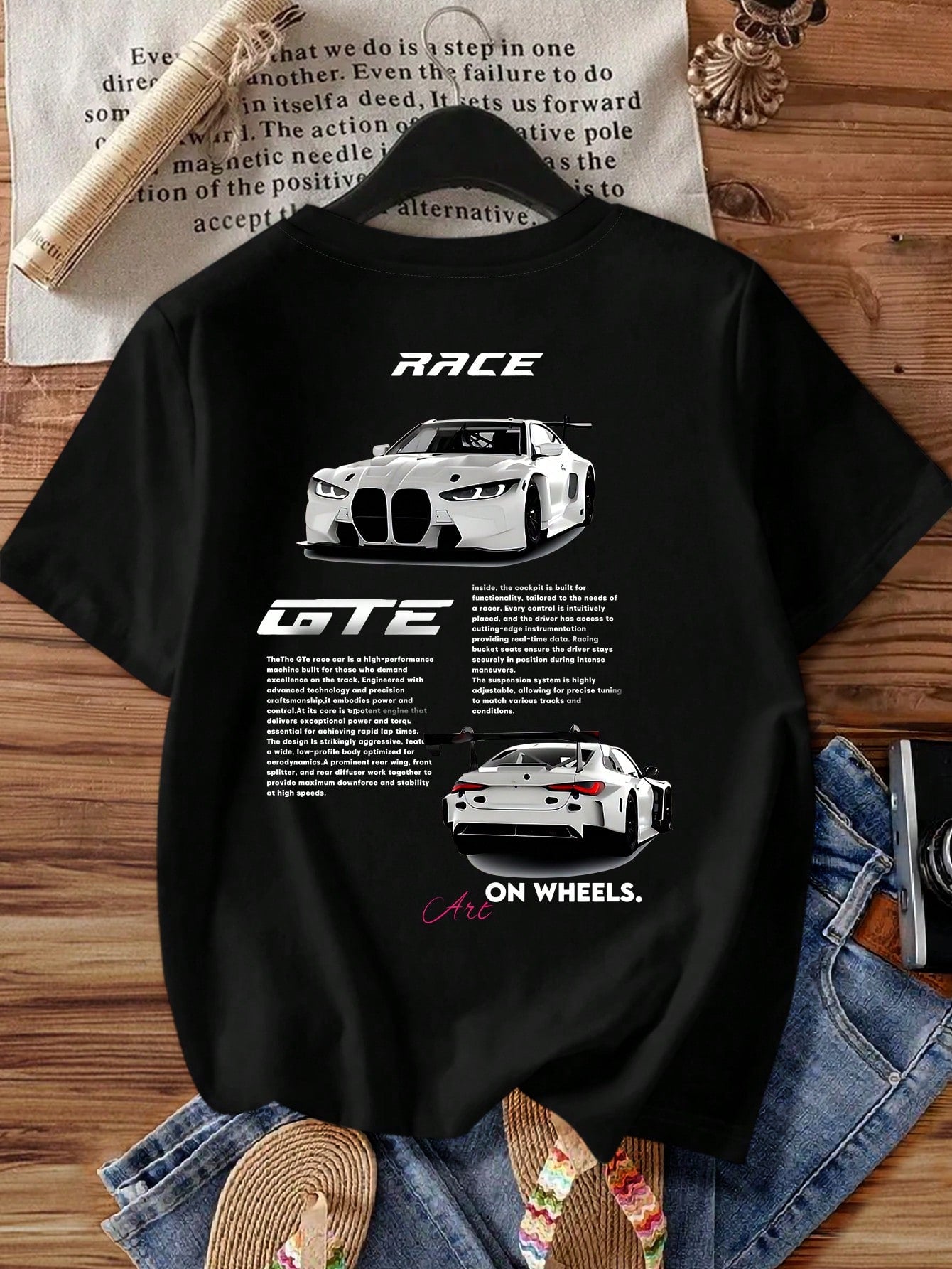 women Fashionable Street Racing Art Print Casual Round Neck Short Sleeve T-Shirt For Women