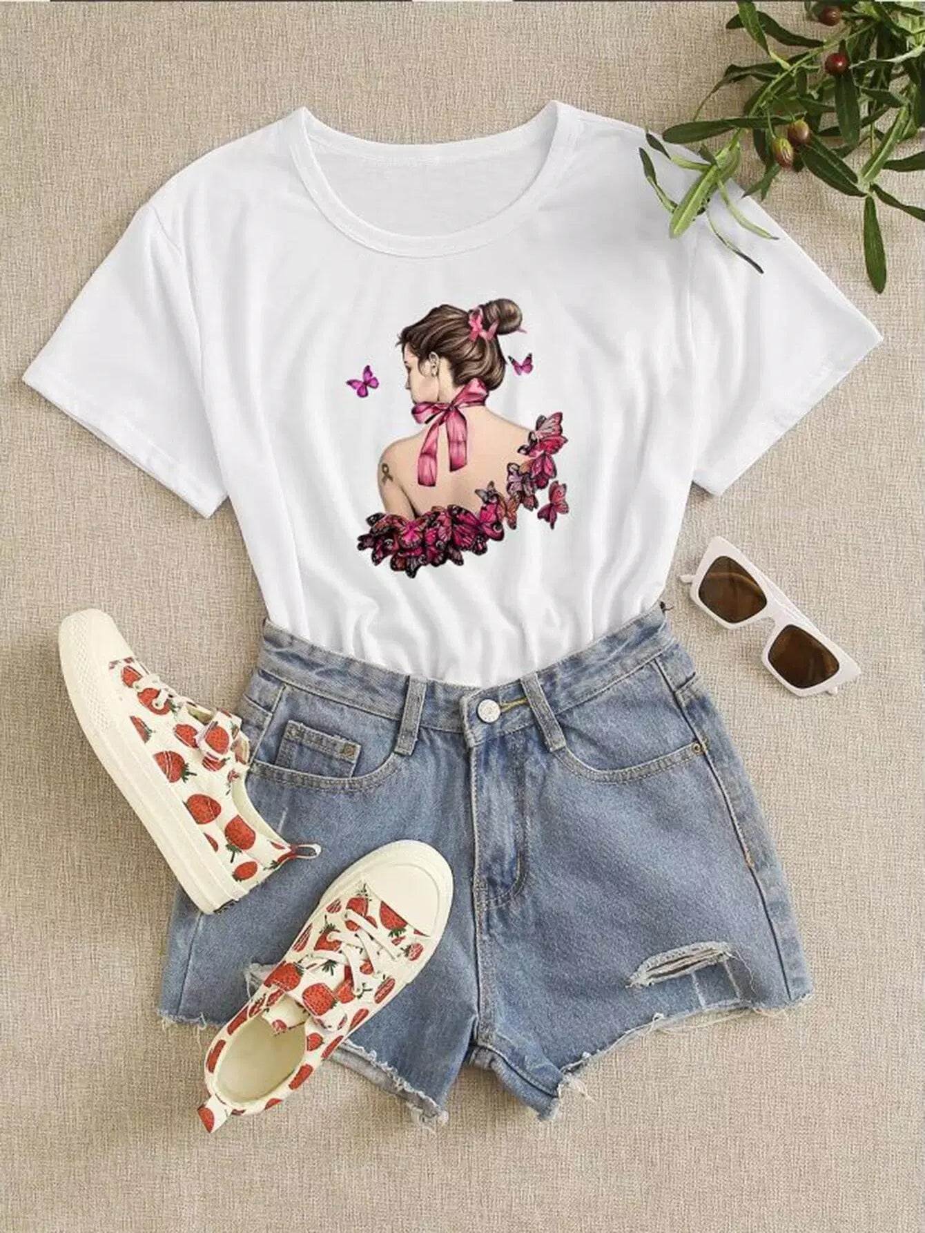 Figure And Butterfly Print Tee