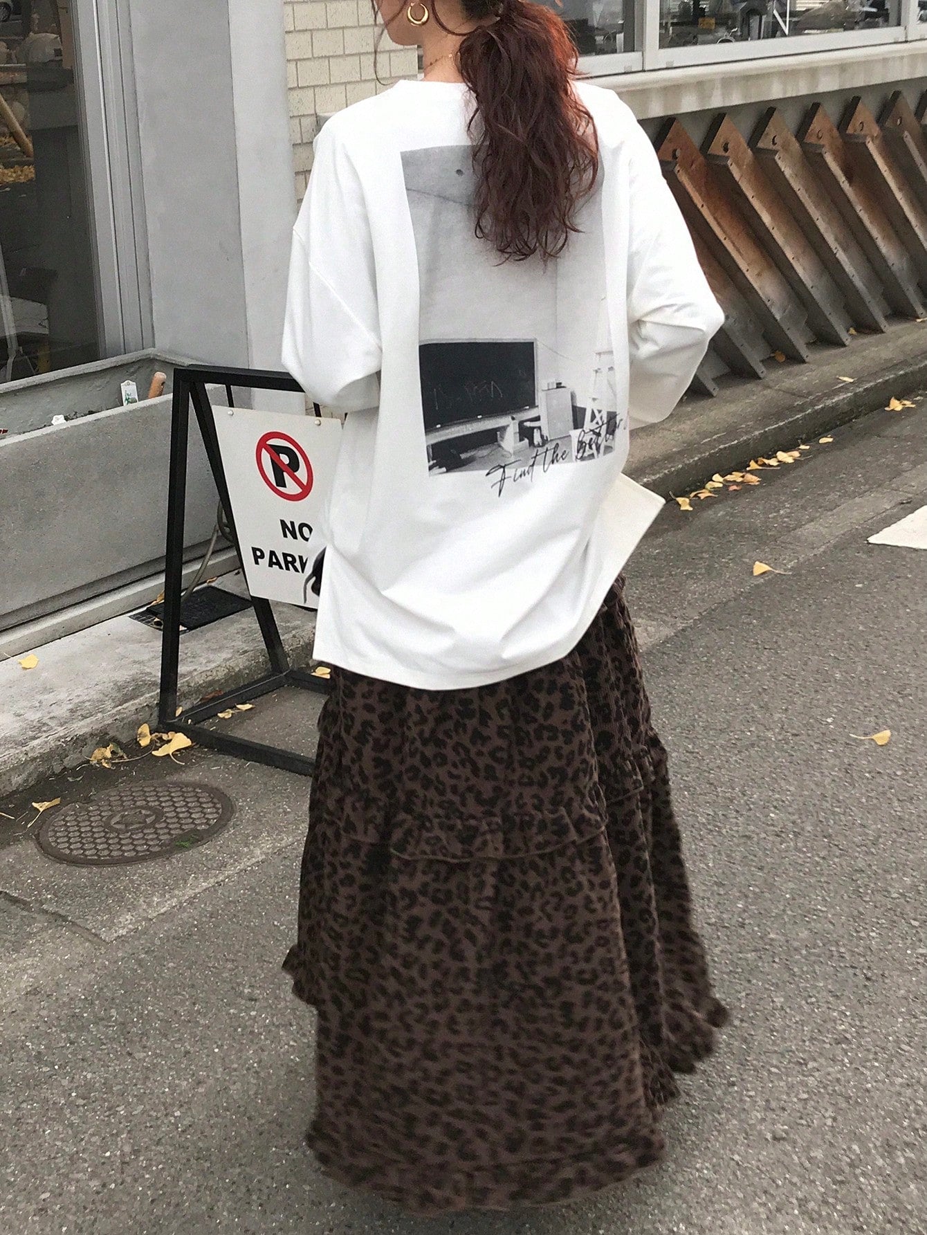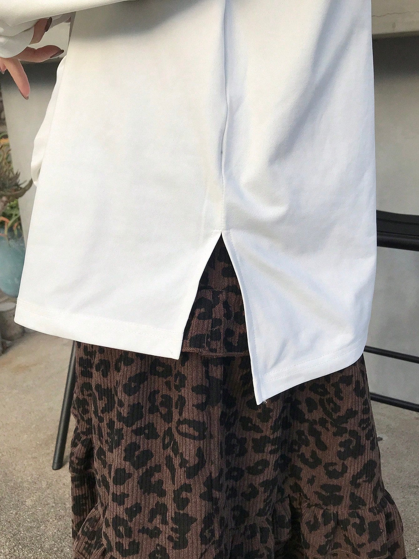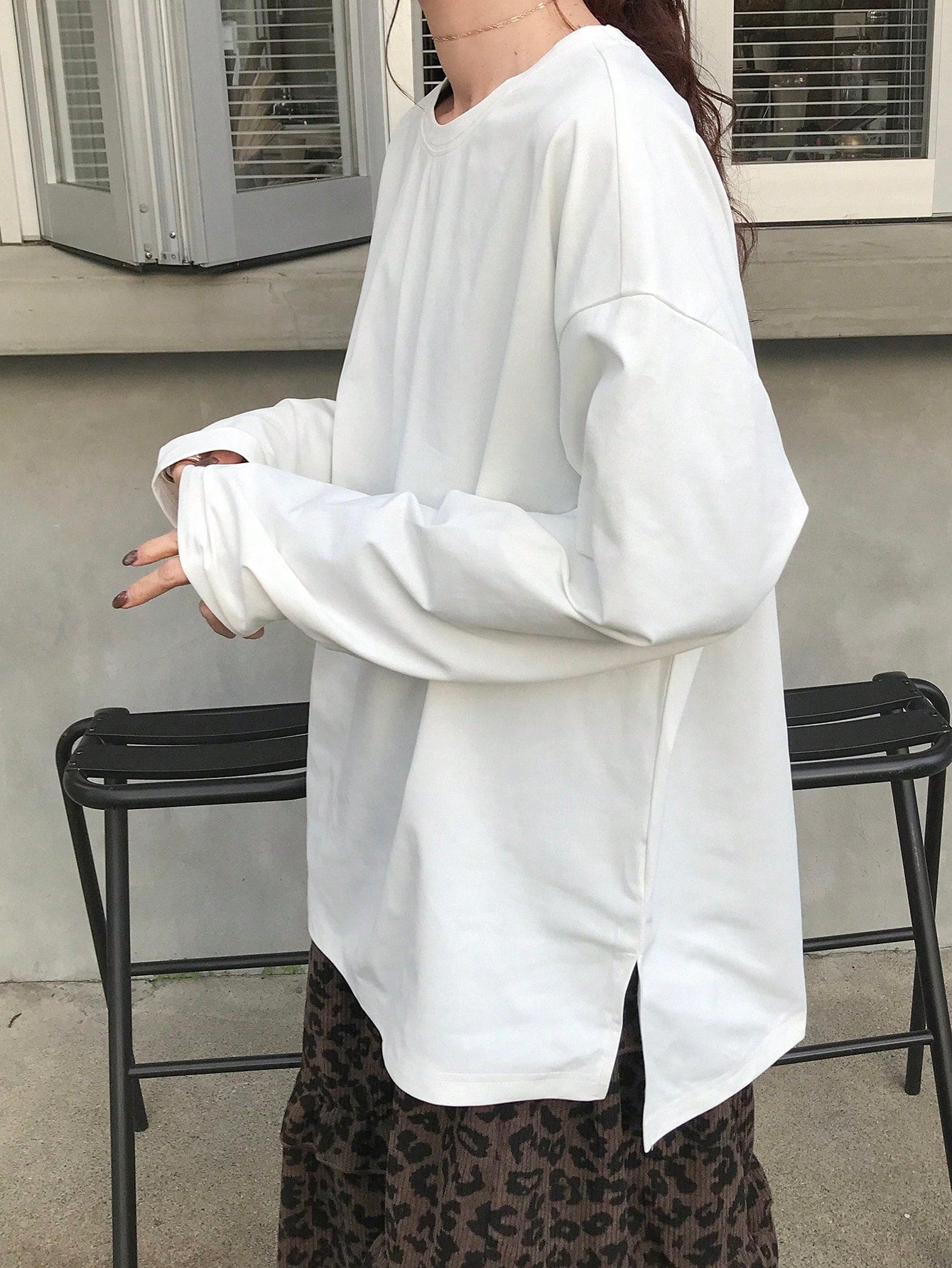 FRIFUL Women Loose Fit White Graphic Long Sleeve T-Shirt, Spring,Fall Clothes