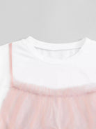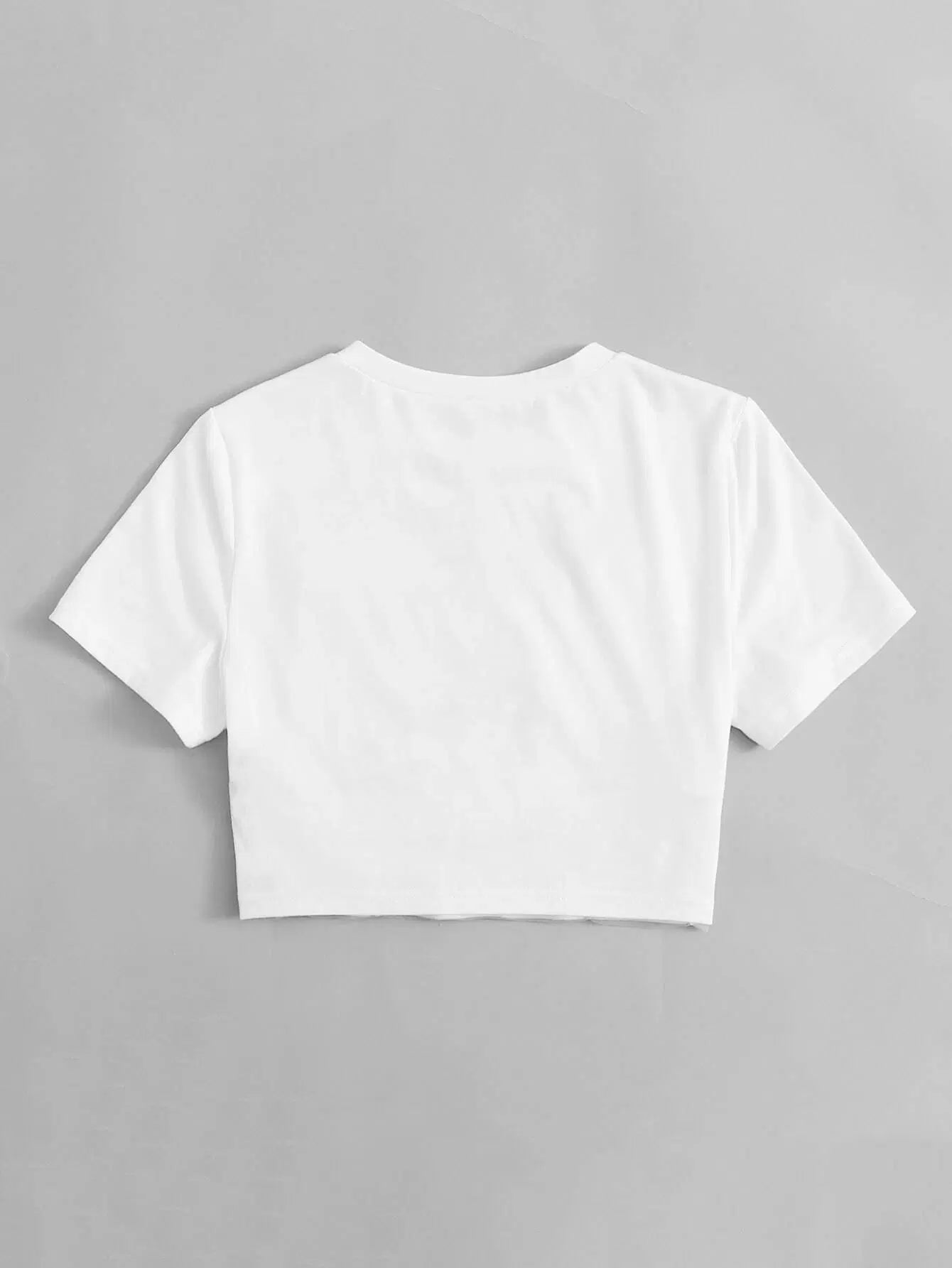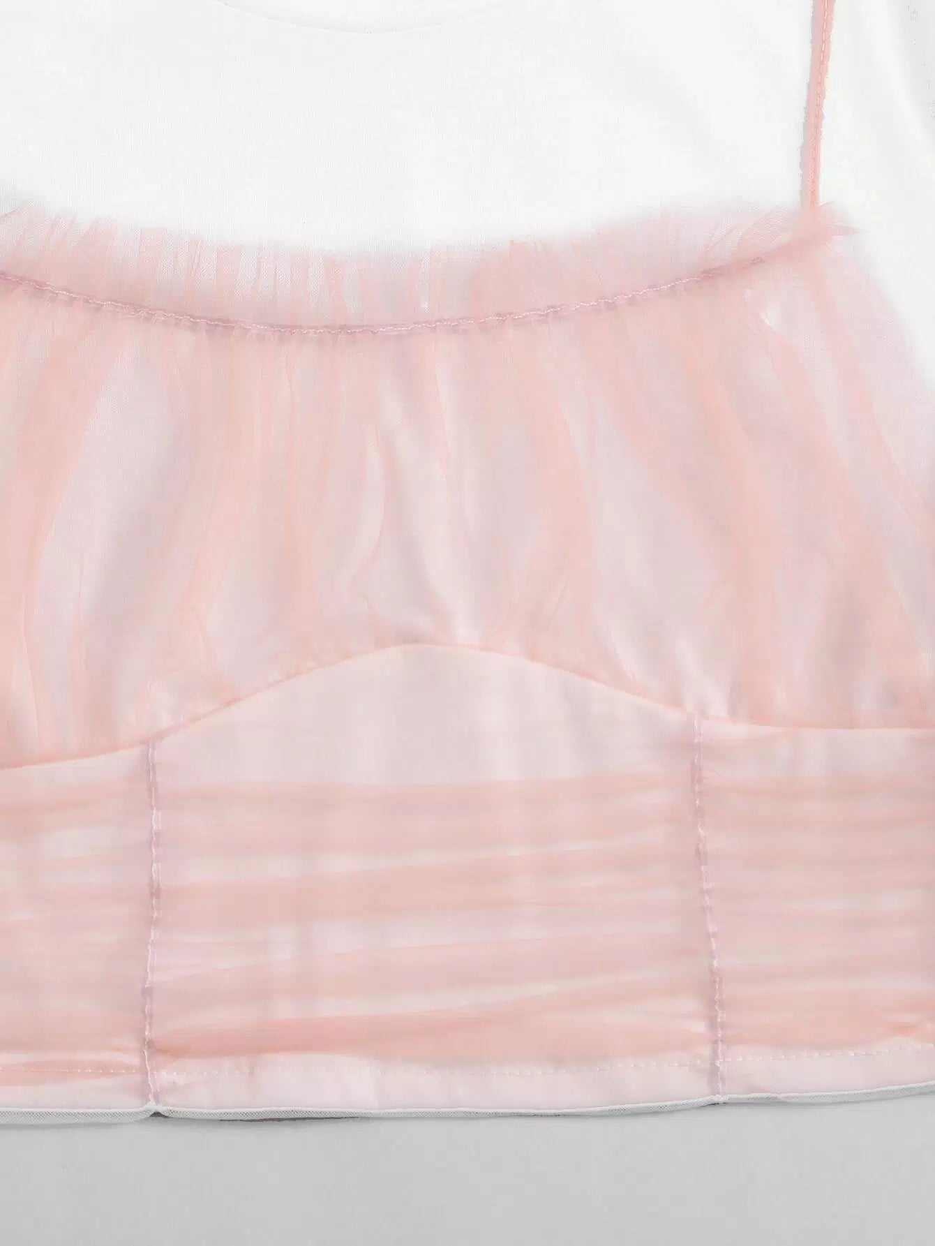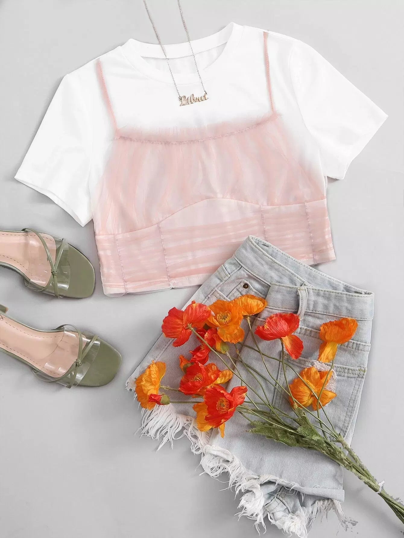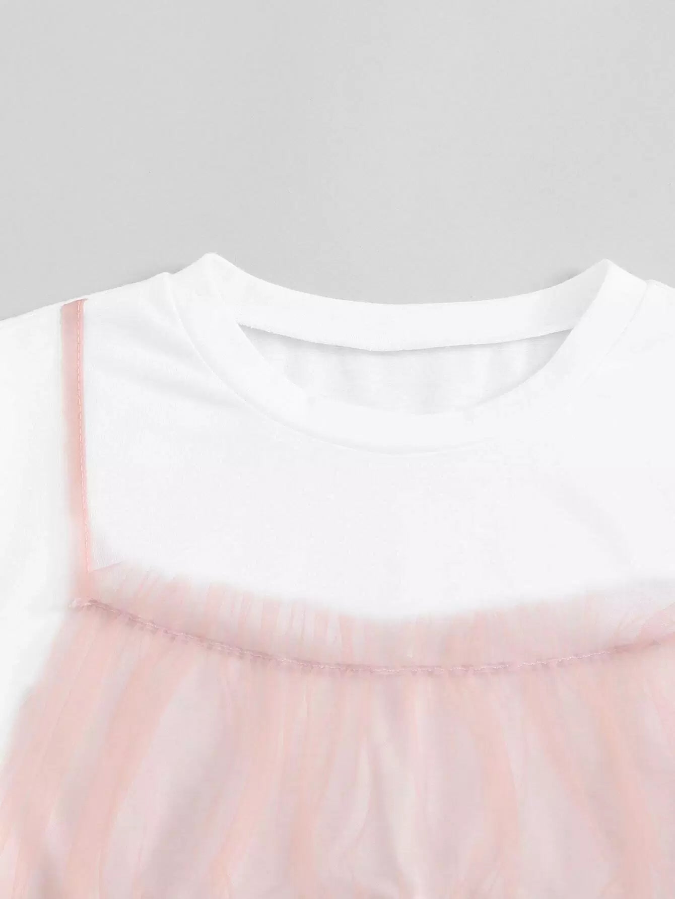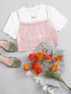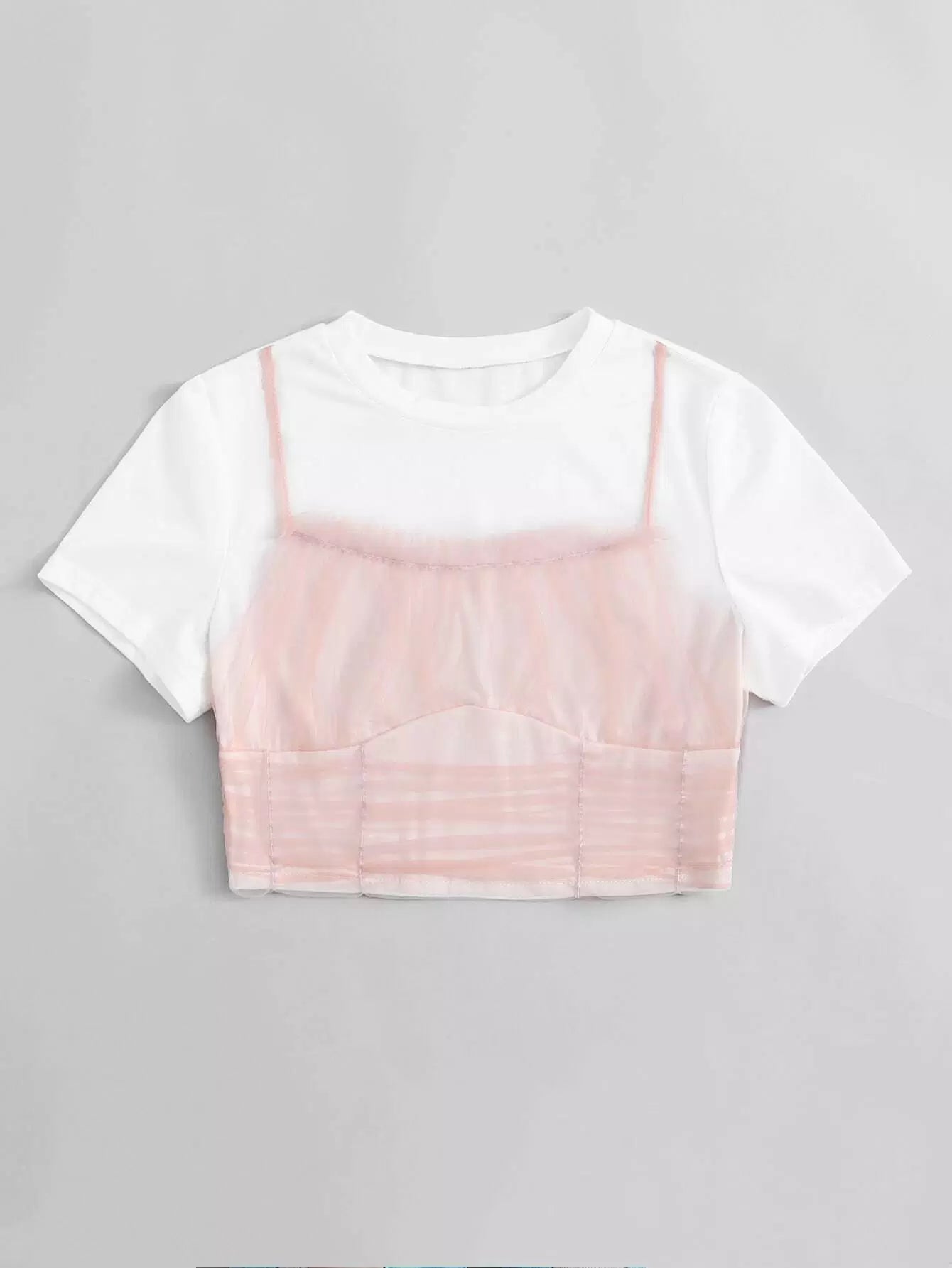 Frill Trim Ruched Mesh Overlay Crop Tee