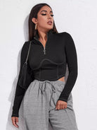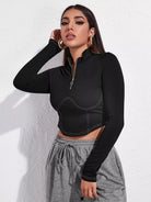 Women - Half Zip Stitch Trim Crop Tee