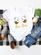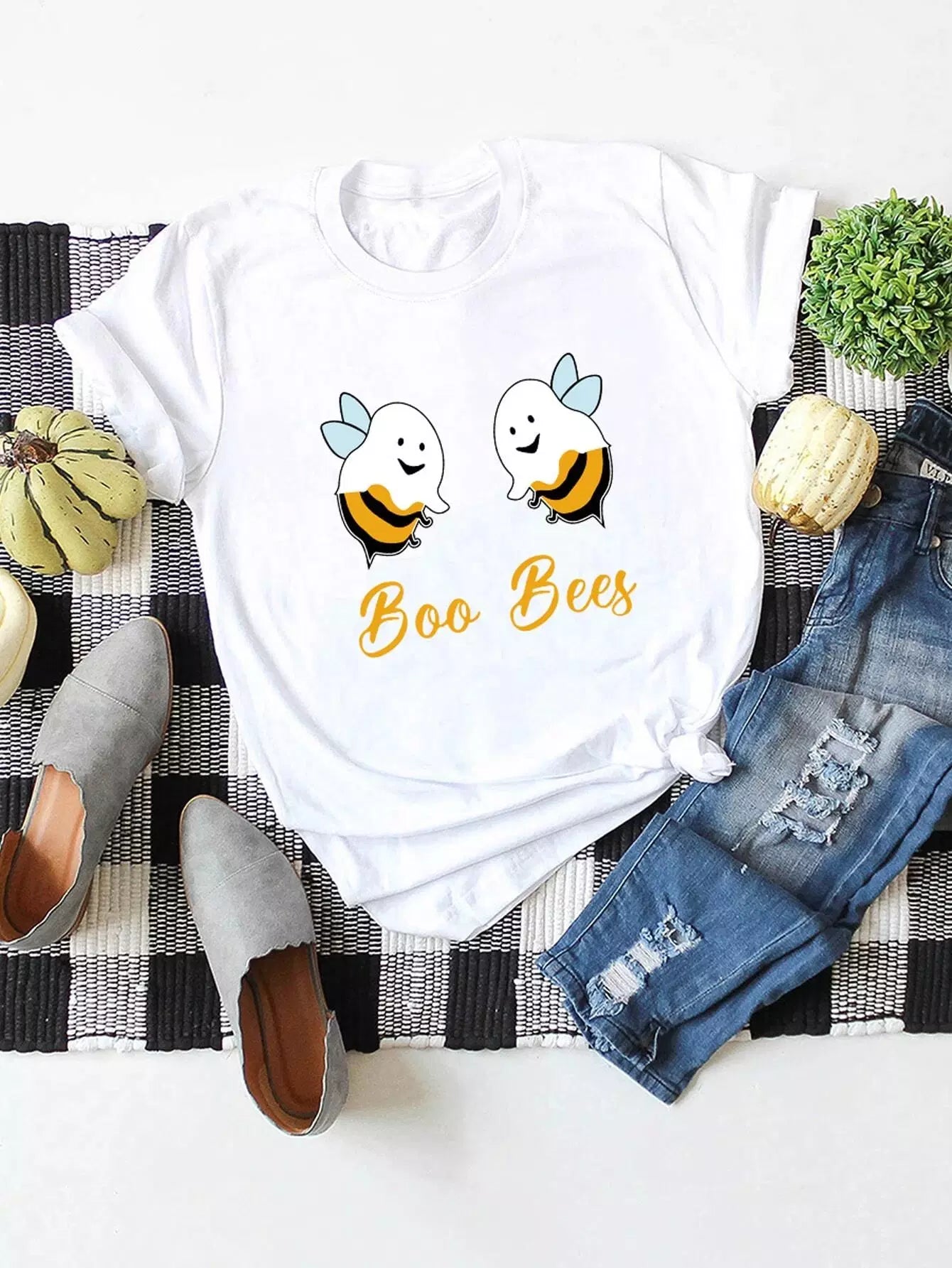 Halloween Bee And Letter Graphic Crew Neck Tee