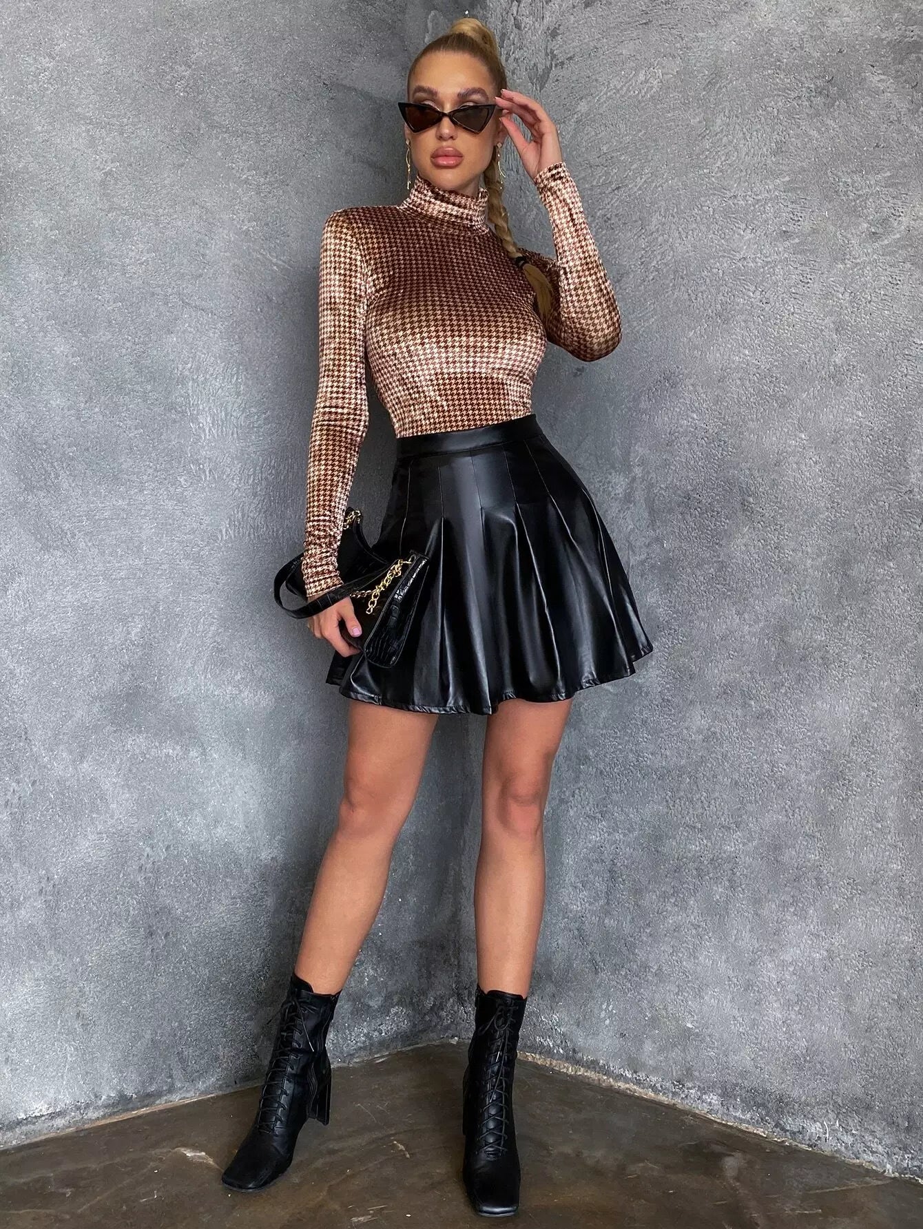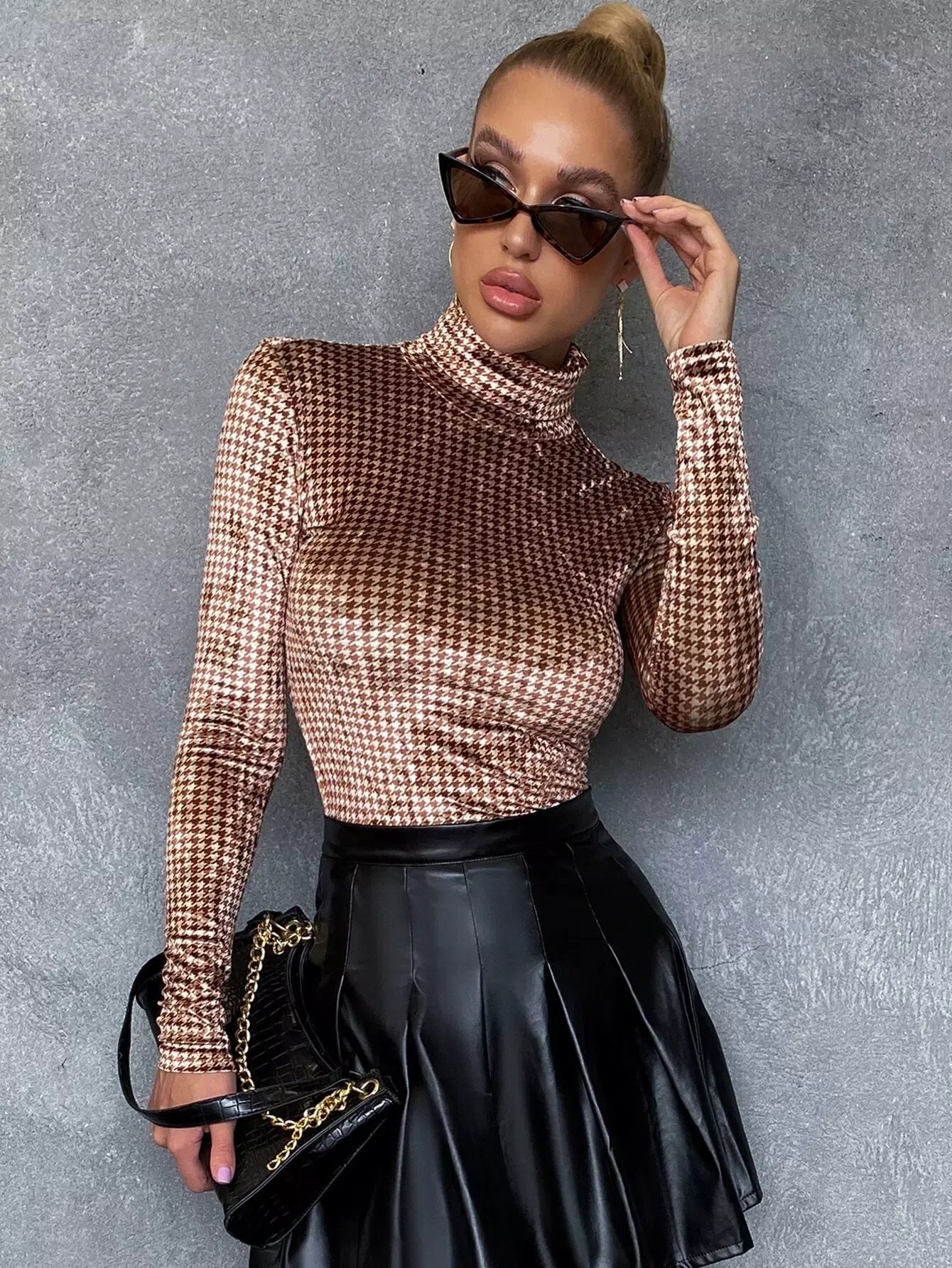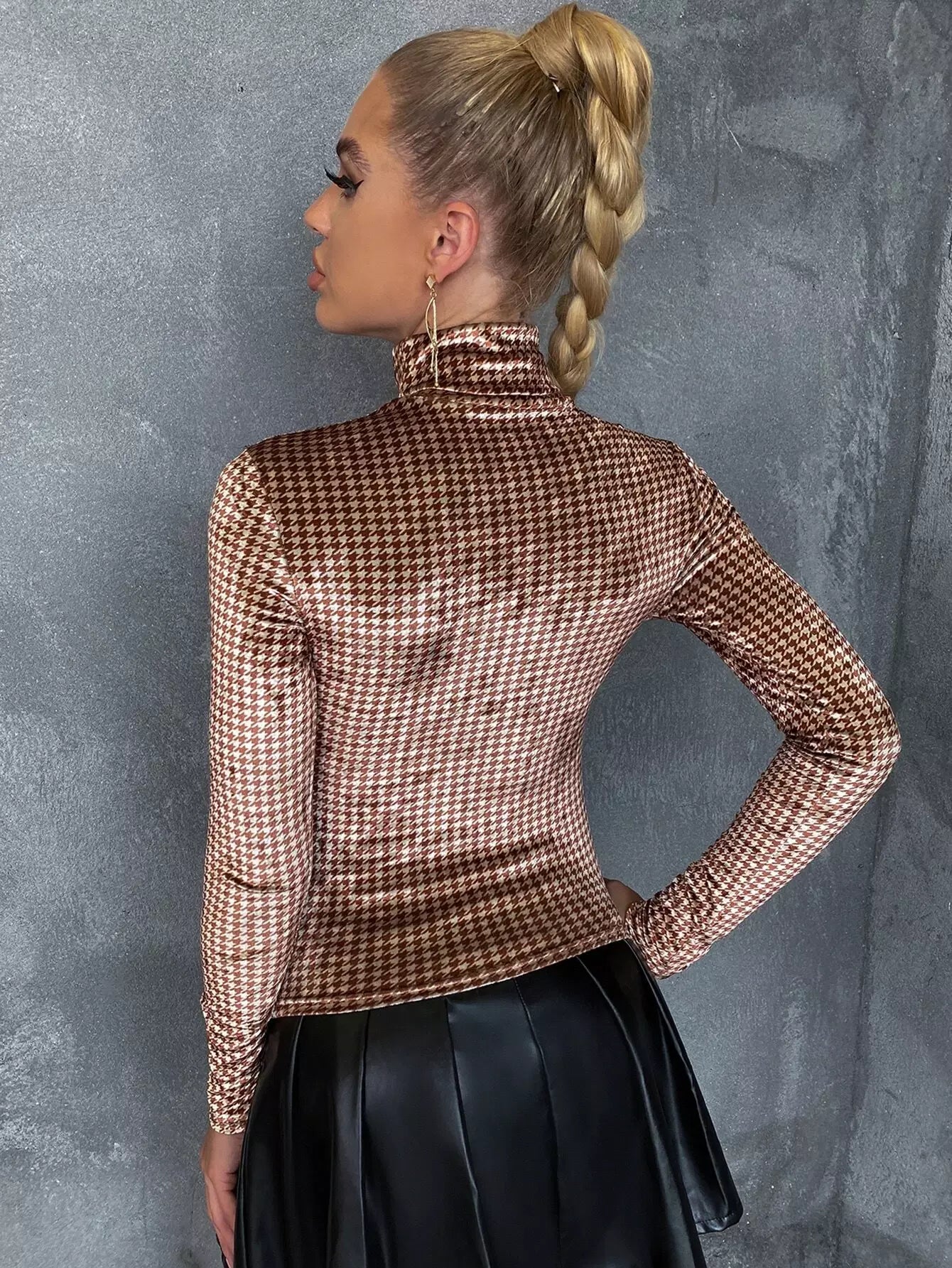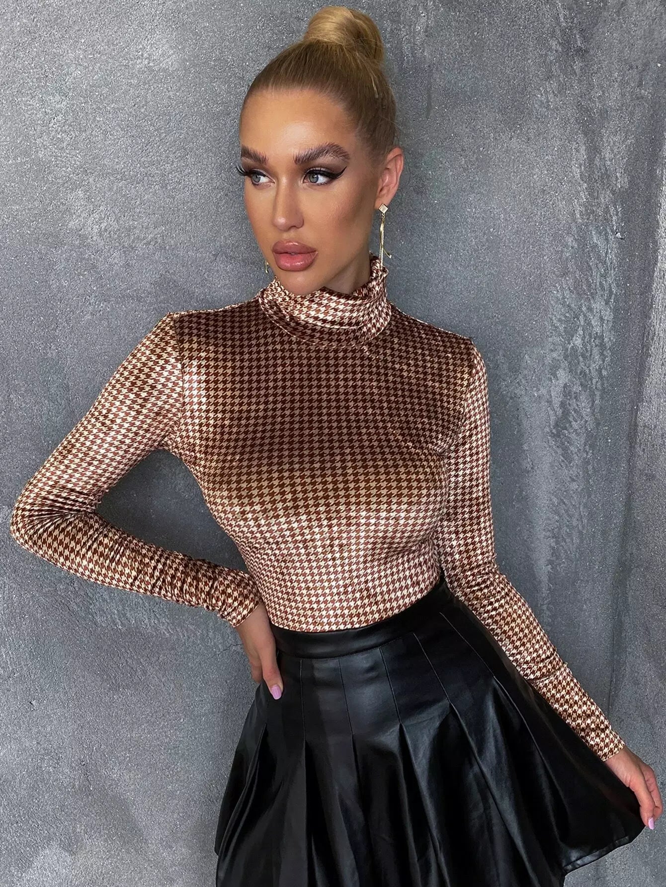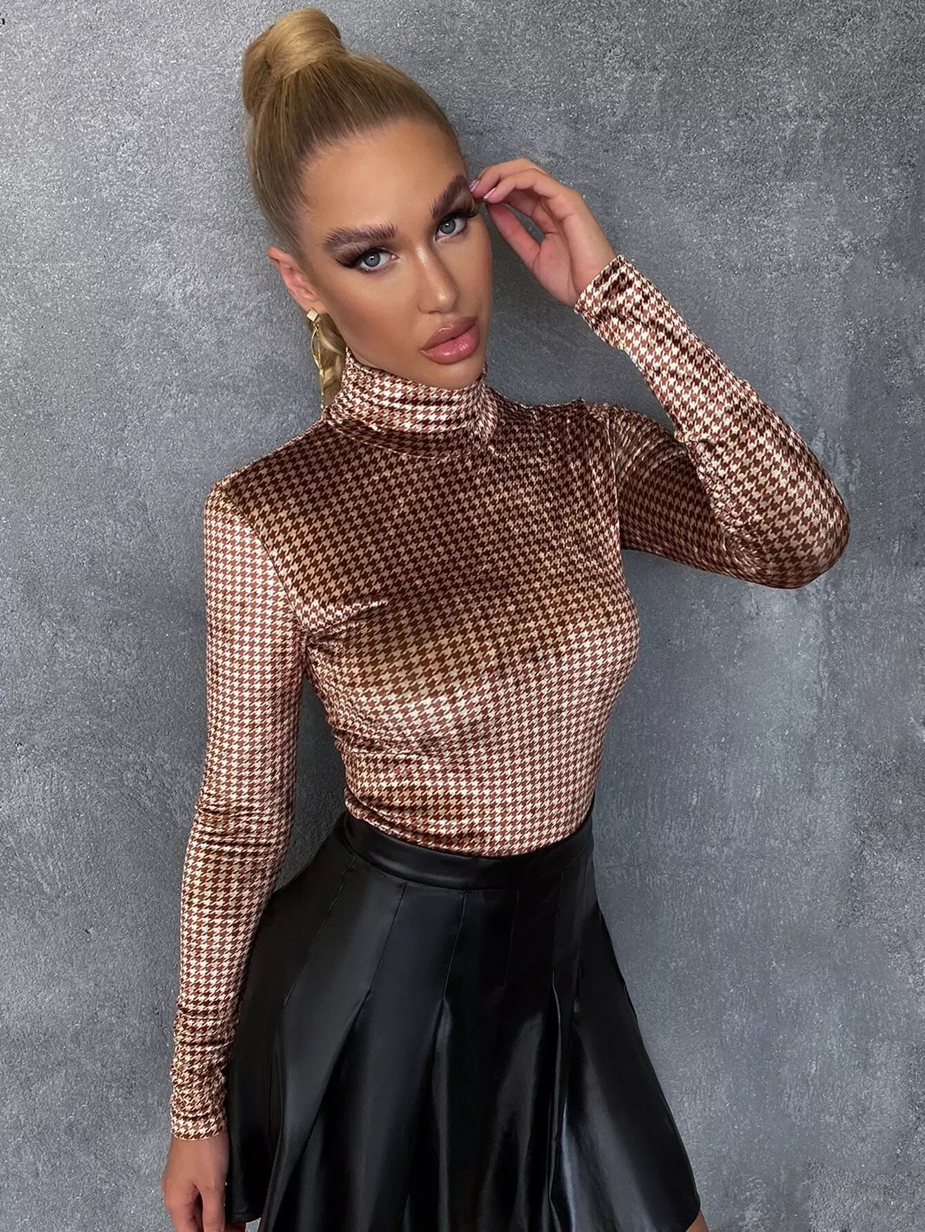 High Neck Houndstooth Slim Tee