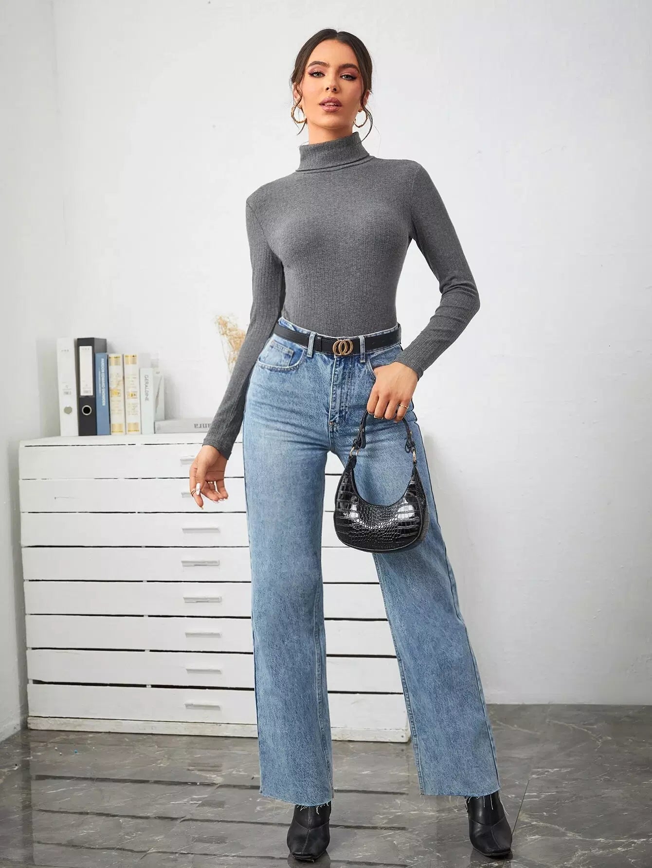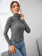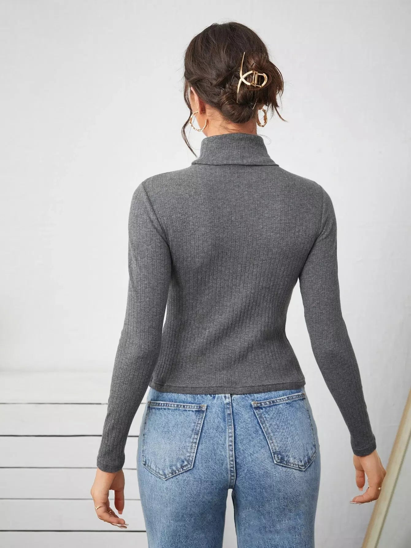 High Neck Rib-knit Tee