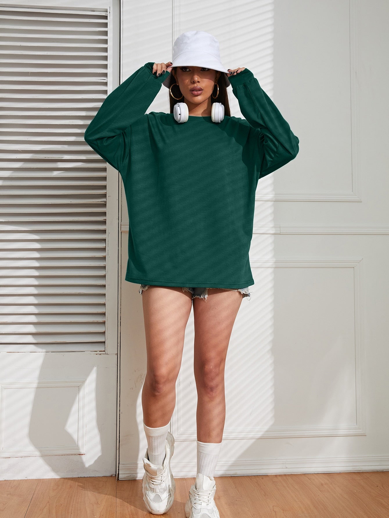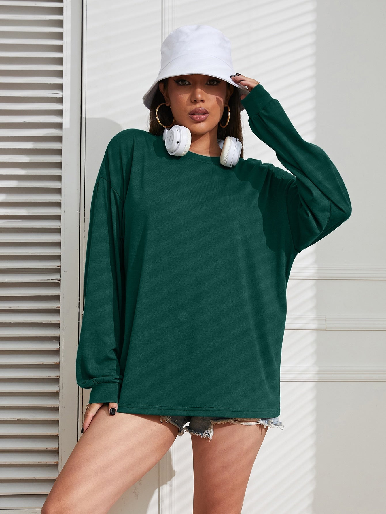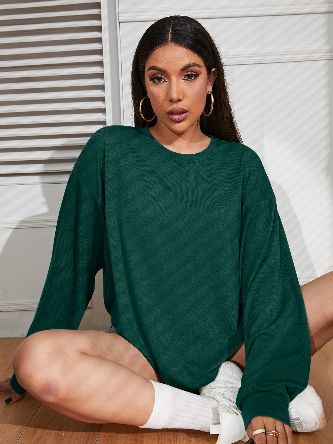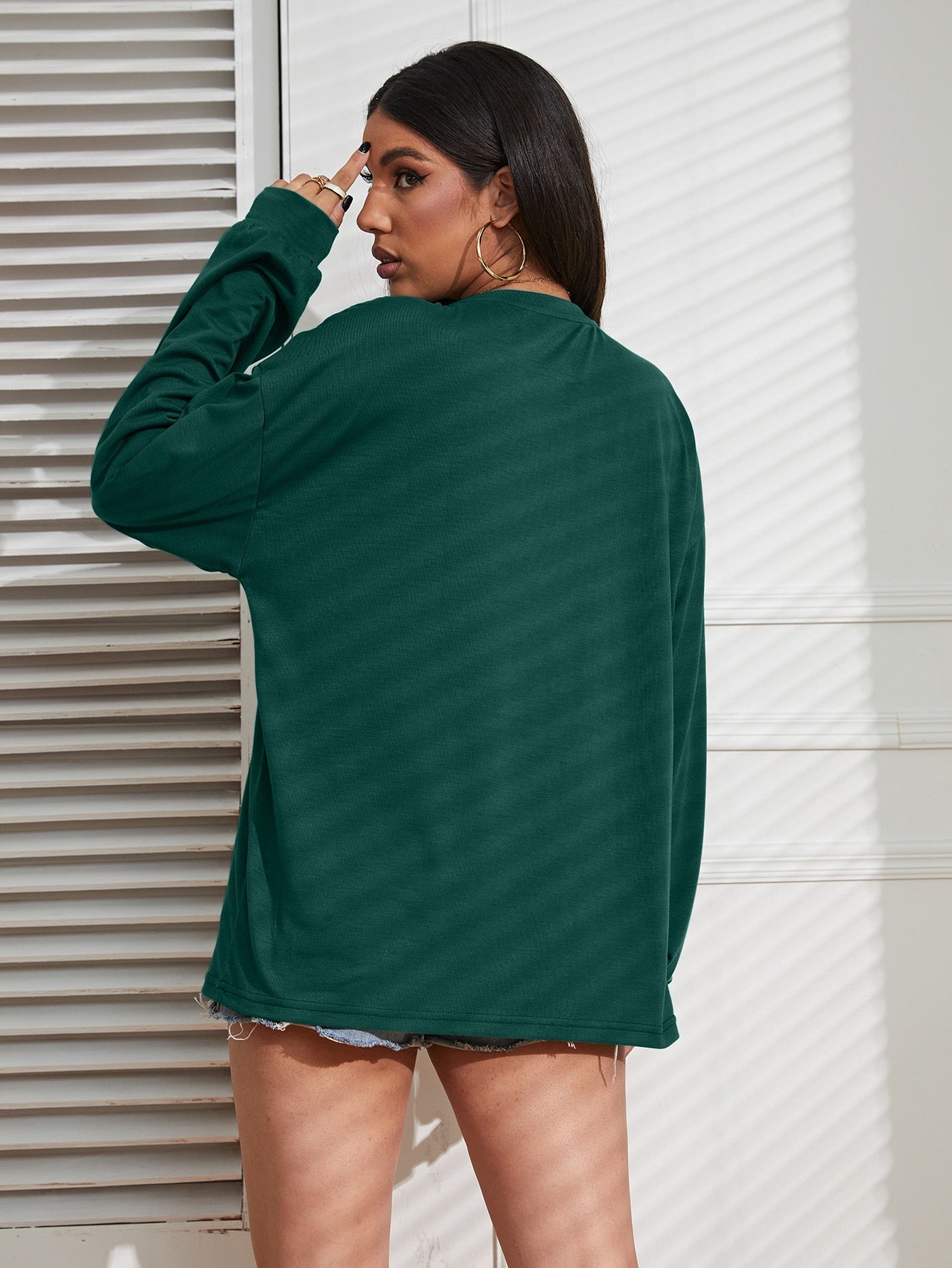 INAWLY Solid Drop Shoulder Tee Fall Cloth For Women