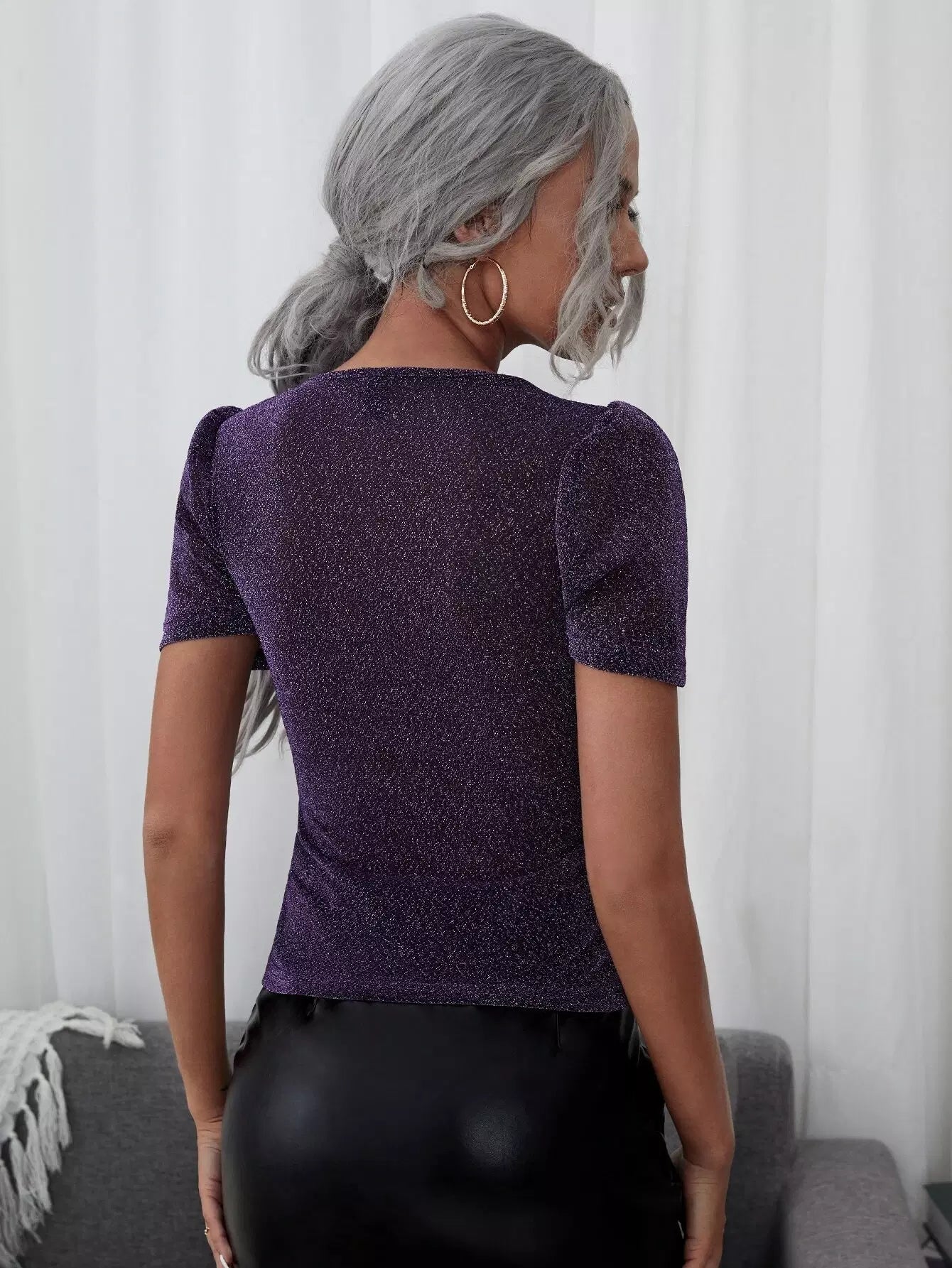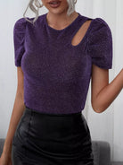 Lamb Shank Sleeve Hollow Out Glitter Tee