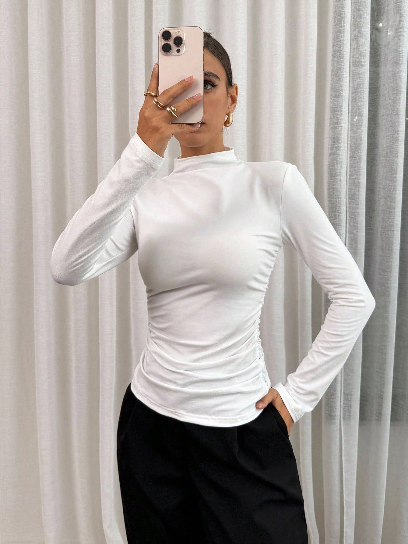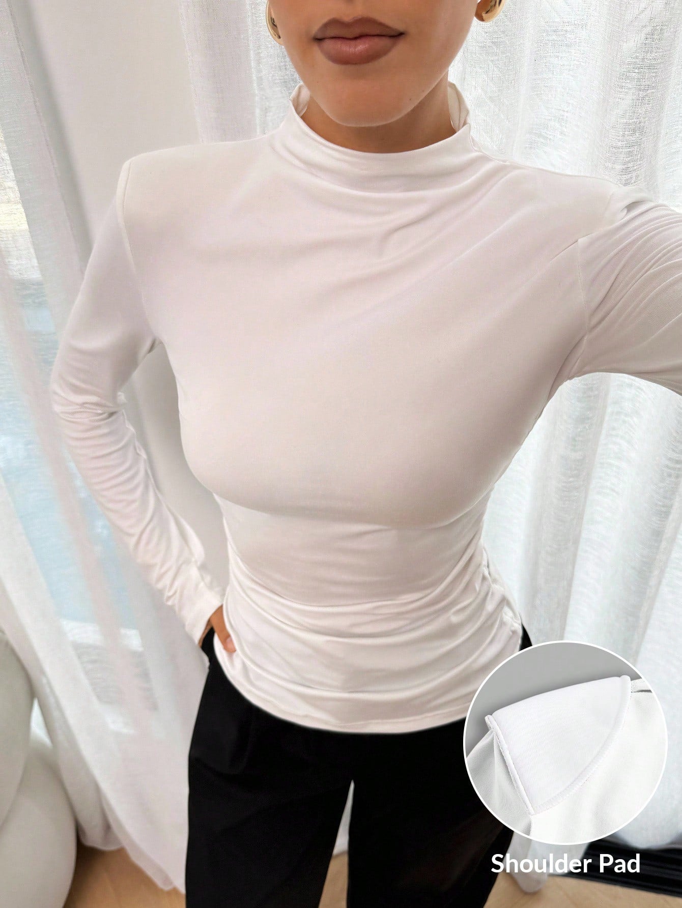 Lavishia High Neck Padded Shoulder Long Sleeve T-Shirt