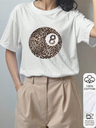 Leopard Billiard 8 Print, Summer Women's 100% Cotton Short Sleeves, White Short Sleeves, Graphic T-Shirts,
