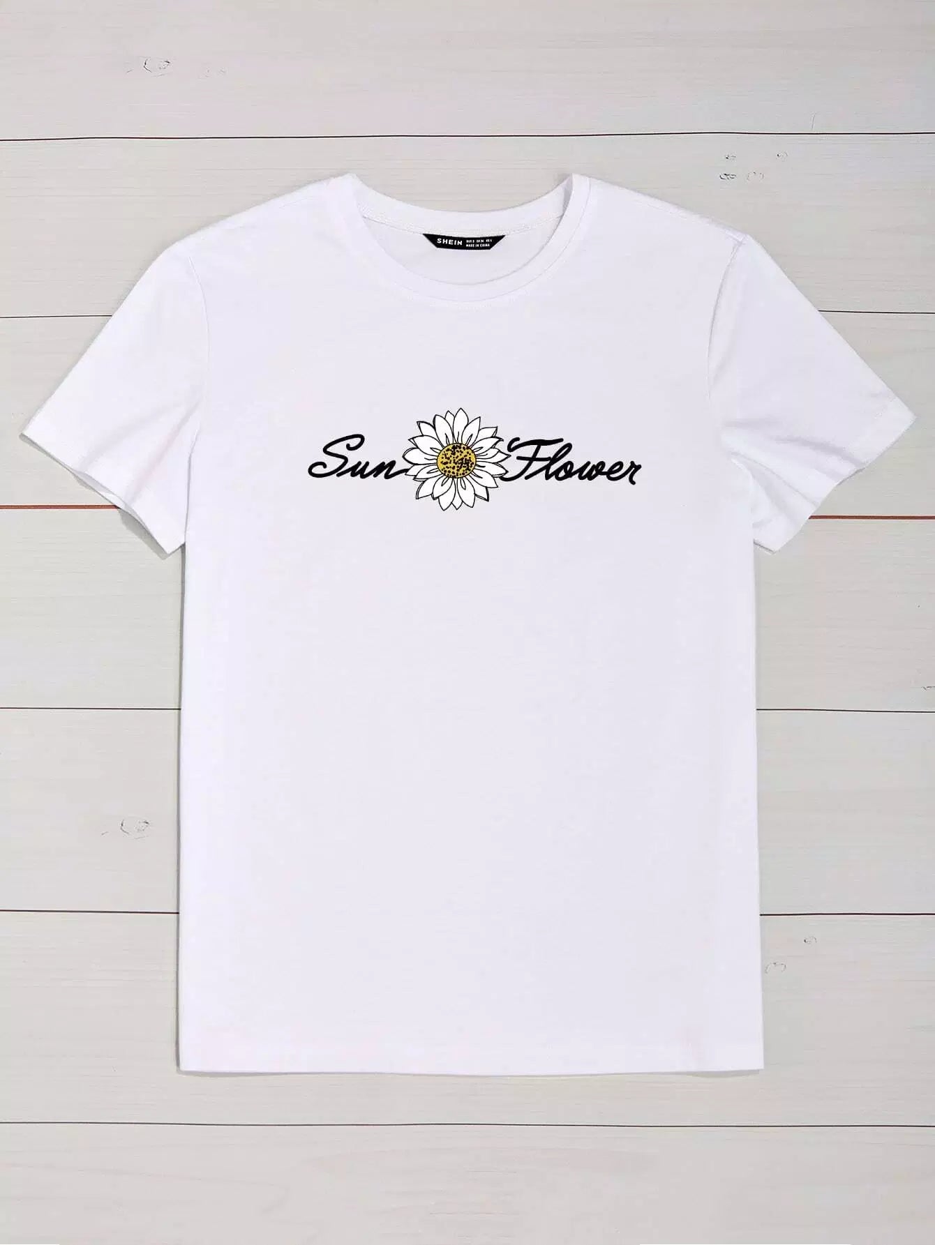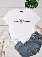 Letter And Floral Print Tee