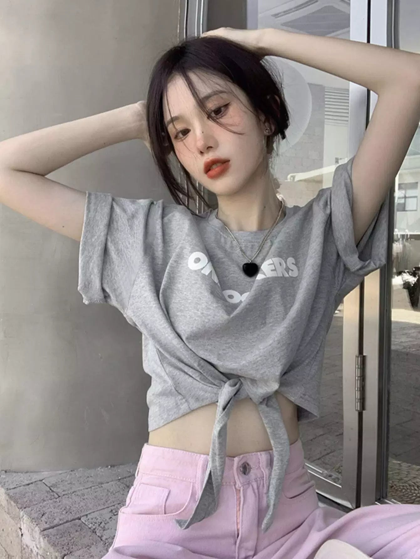 Letter Graphic Drop Shoulder Tie Hem Crop Tee