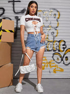 Letter Graphic Eyelet Lace Up Knot Crop Tee